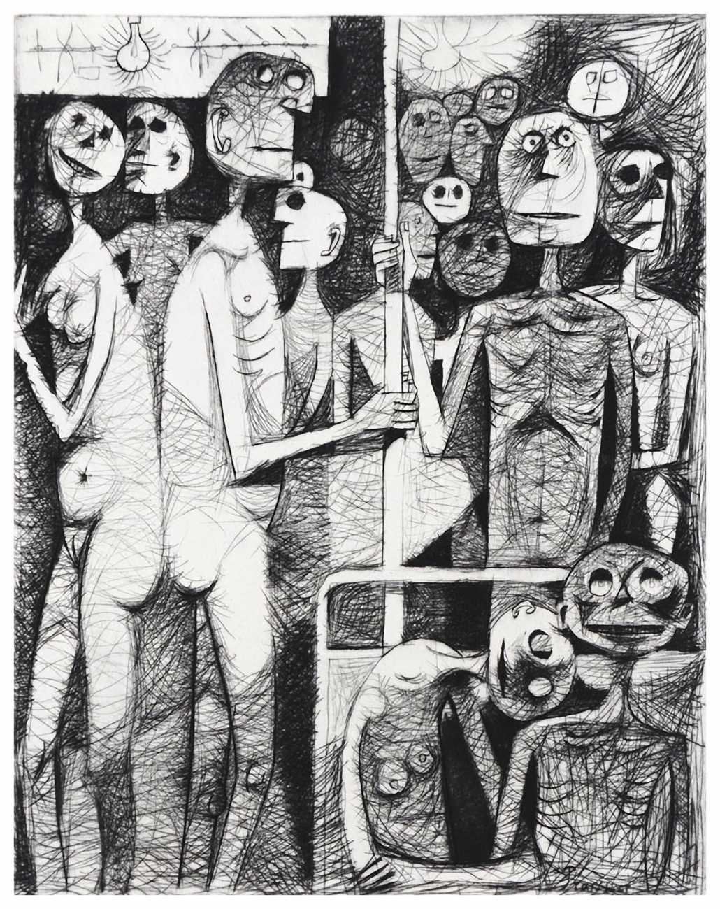 Prassinos attended the Sorbonne in Paris from 1932, and trained briefly in the studio of the French painter Clement Serveau (1886–1972). Through his father’s literary connections, Prassinos became acquainted with Surrealism, meeting Paul Eluard, André Breton, Salvador Dalí, Man Ray. Max Ernst and Marcel Duchamp, and in 1934 decided to become an full-time artist. From 1932 to 1936 he worked in a Surrealist style, introducing procedures of automatism and formal ambiguities that he retained in his later work. His first exhibition took place in 1938 at the Galerie Billiet-Pierre Vorms in Paris. That same year he married Yolande Borelly, and their daughter Catherine was born in 1946.