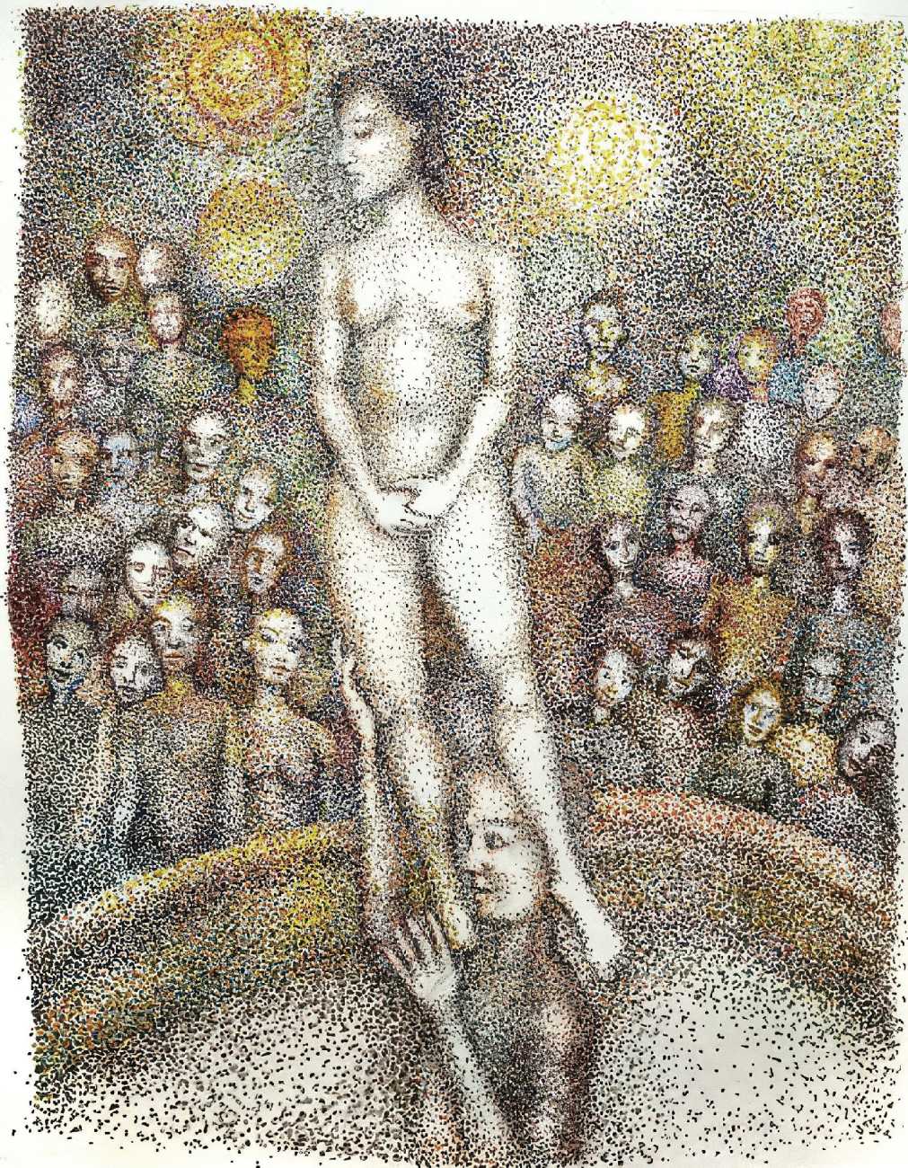 Mark Price’s art explores the importance and significance of both nakedness and queerness. ‘I want to make a naked art and a two-spirit art that explores the psychosexual side of artistic expression. Nakedness is both a symbol of honest expression and a very real psychological force that stands against shame, and proclaims itself for everybody’s mutual benefit despite conventional resistance against it. I also want to make art that goes to the other side of our gender divide, finding a new identity in synthesis. Homosexuality is the sexual expression of this, androgyny its artistic expression.’