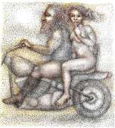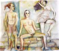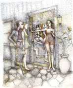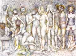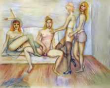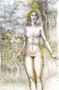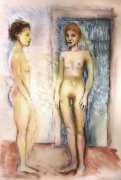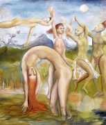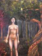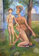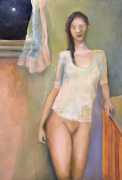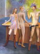 Surrealism is very important to Price, and his imagery has been influenced by many surrealists and borderline surrealist artists such as Paul Delvaux, Odilon Redon, Leonor Fini, Jean Mammen, Gerda Wagener, Henry Scott Tuke and Sascha Schneider. The eagle-eyed will notice that some of the canvases are signed by Mo Potter; the precise relationship between the similarly-initially artists is a work in progress.
