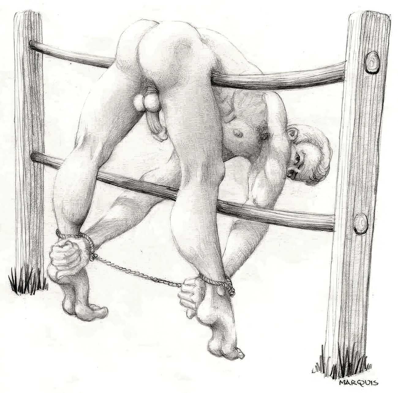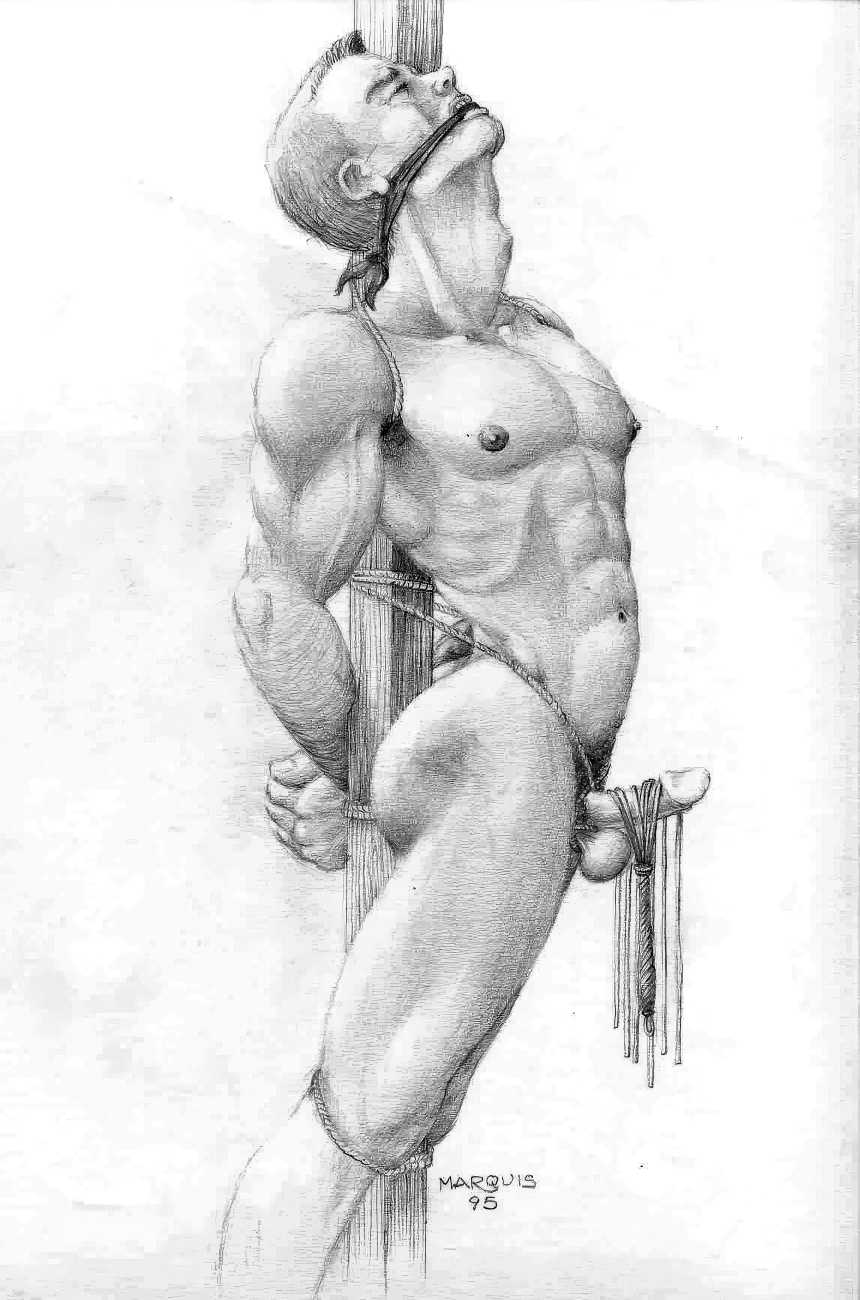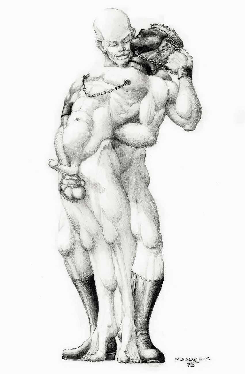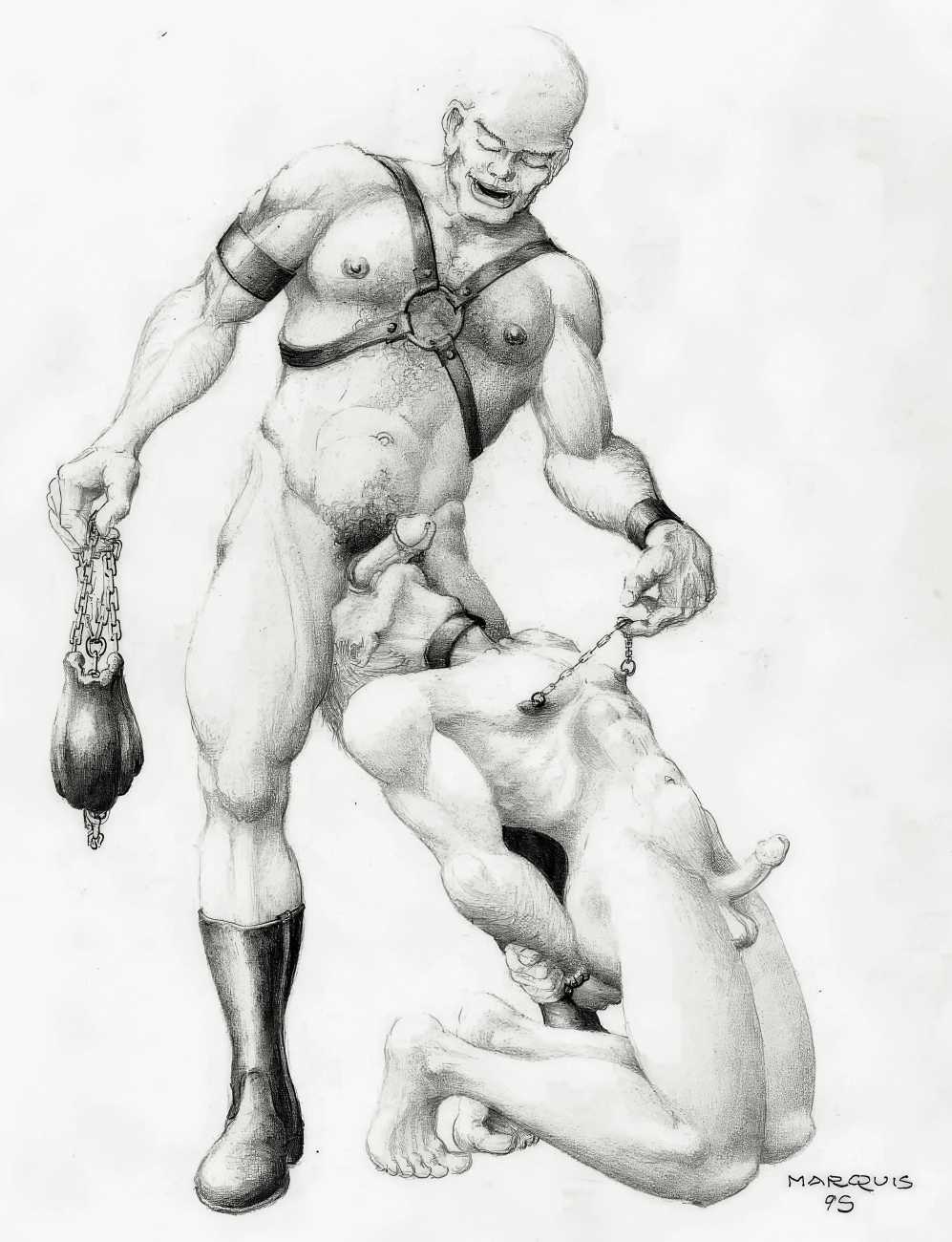 In November 2012 a Tumblr account was created by an artist who signed himself Marquis, and over the next five years around forty finely-detailed pencil drawings appeared there, mostly of naked men in a variety of BDSM settings. Those that are dated were created in the 1990s, with a high point in 1995.