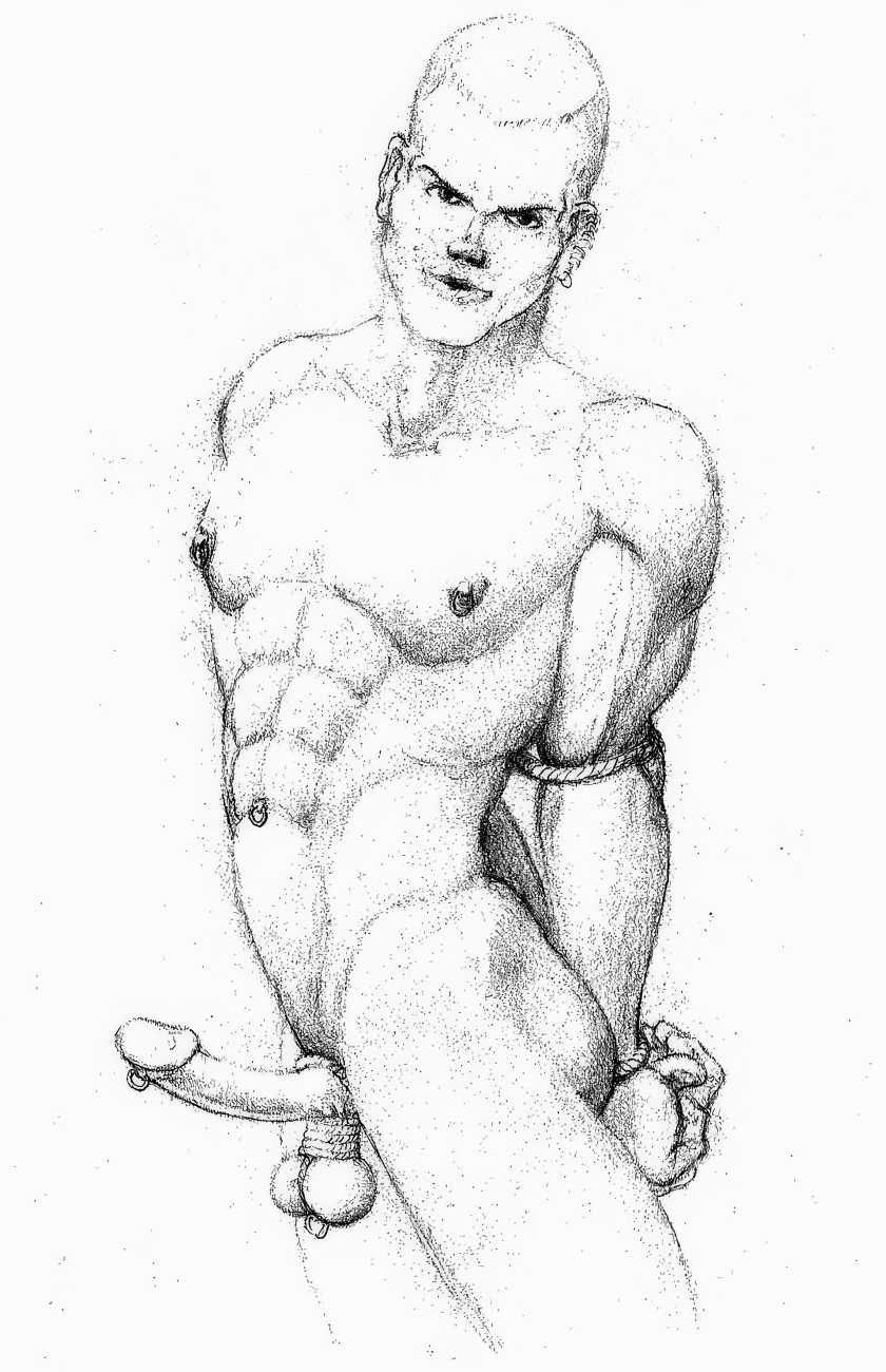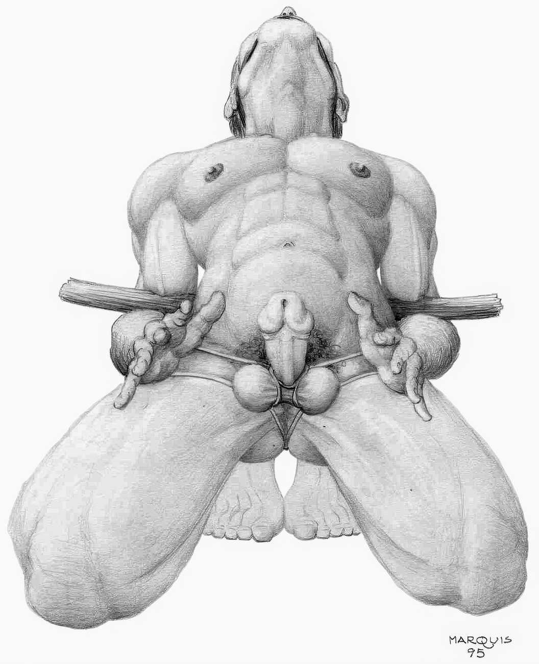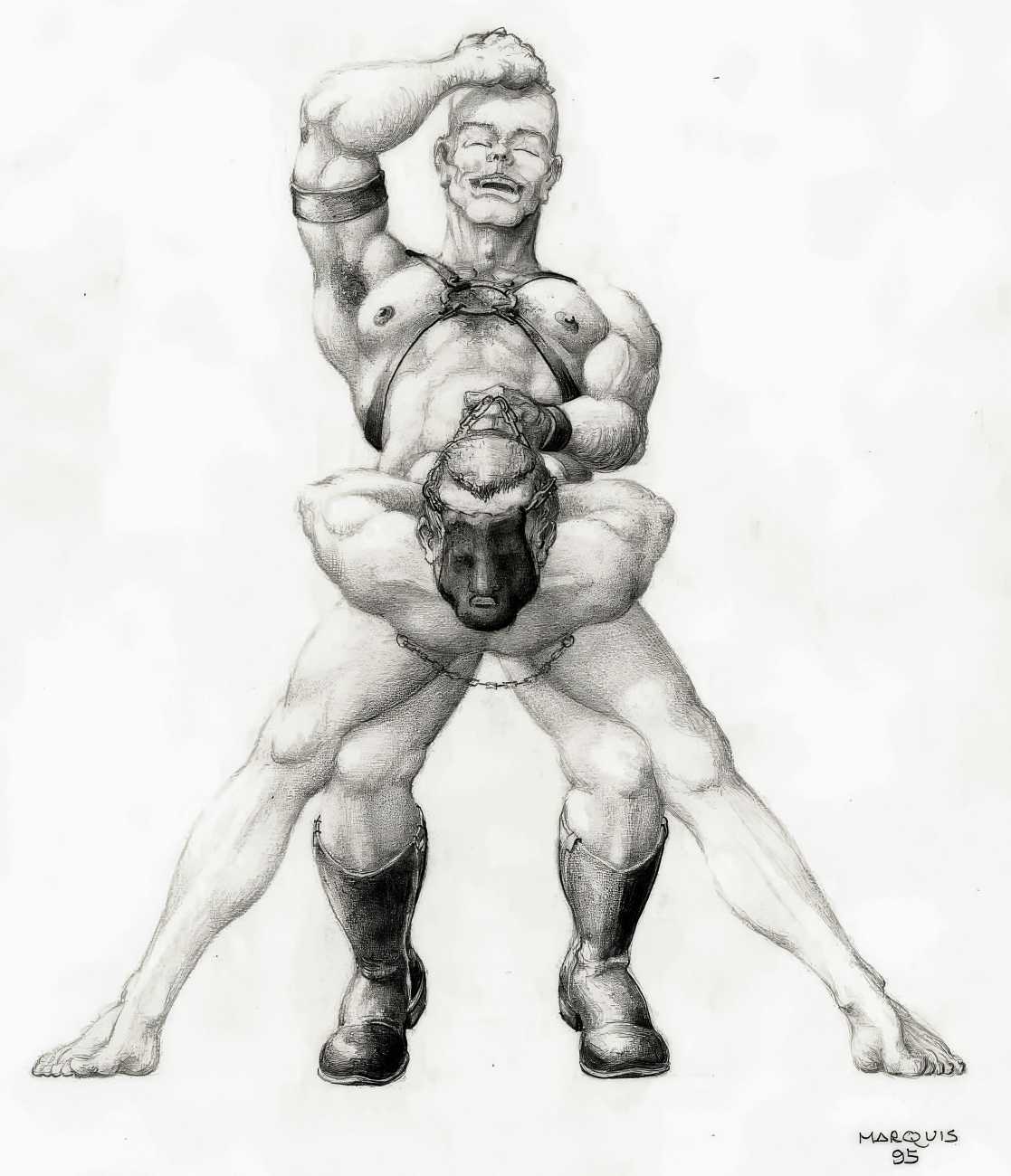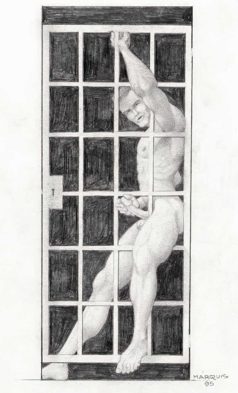 In November 2012 a Tumblr account was created by an artist who signed himself Marquis, and over the next five years around forty finely-detailed pencil drawings appeared there, mostly of naked men in a variety of BDSM settings. Those that are dated were created in the 1990s, with a high point in 1995.