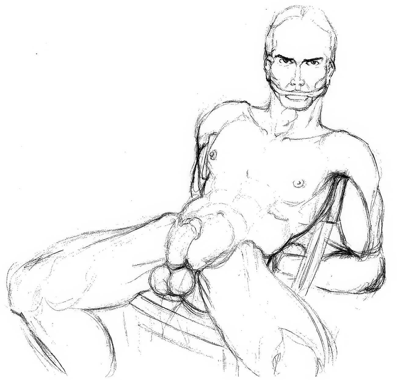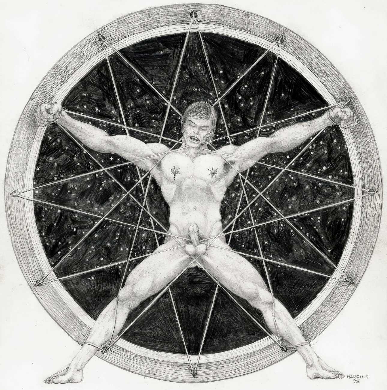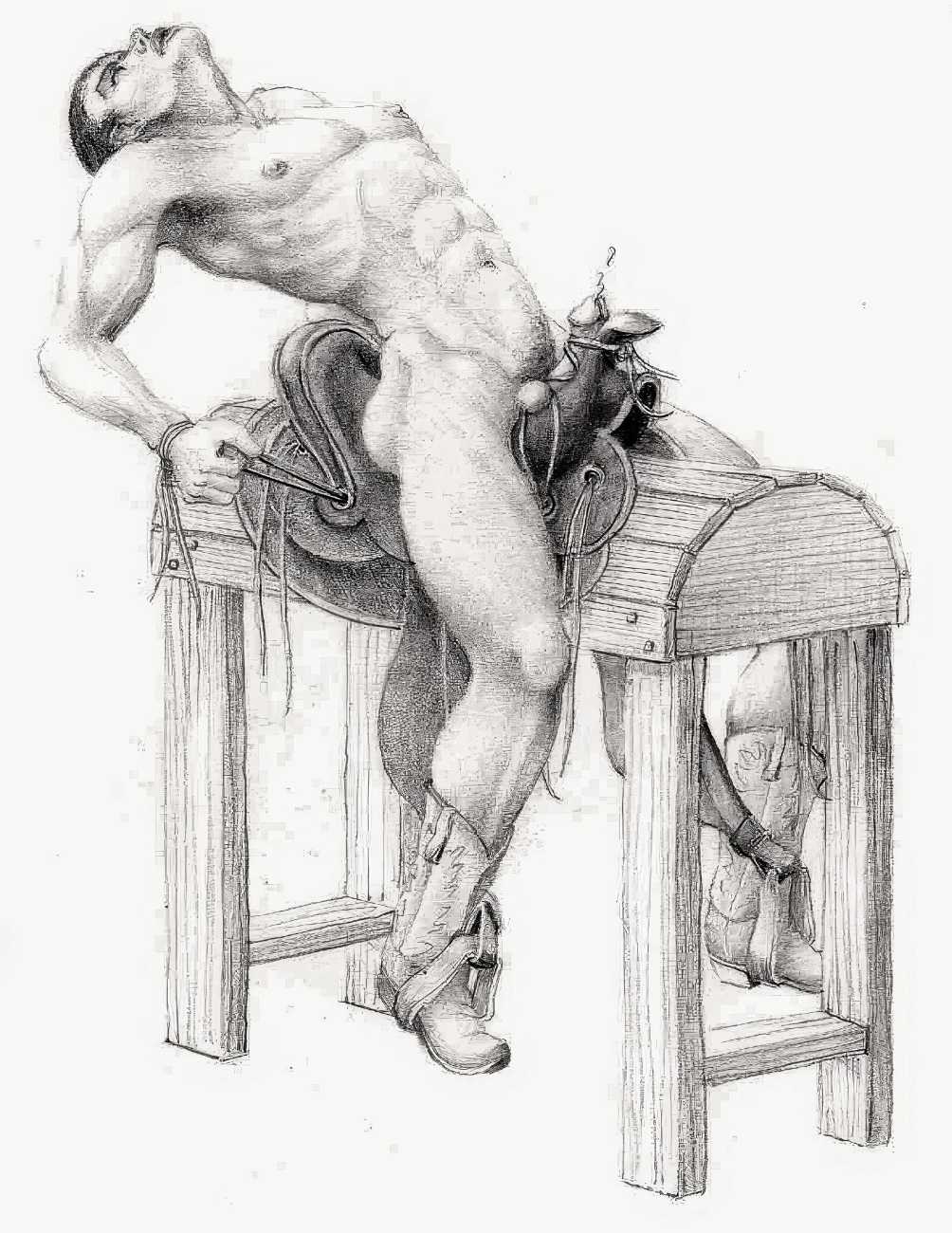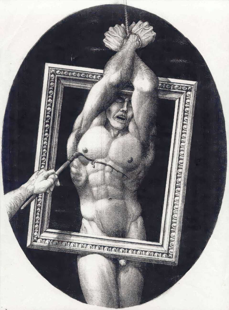 In November 2012 a Tumblr account was created by an artist who signed himself Marquis, and over the next five years around forty finely-detailed pencil drawings appeared there, mostly of naked men in a variety of BDSM settings. Those that are dated were created in the 1990s, with a high point in 1995.