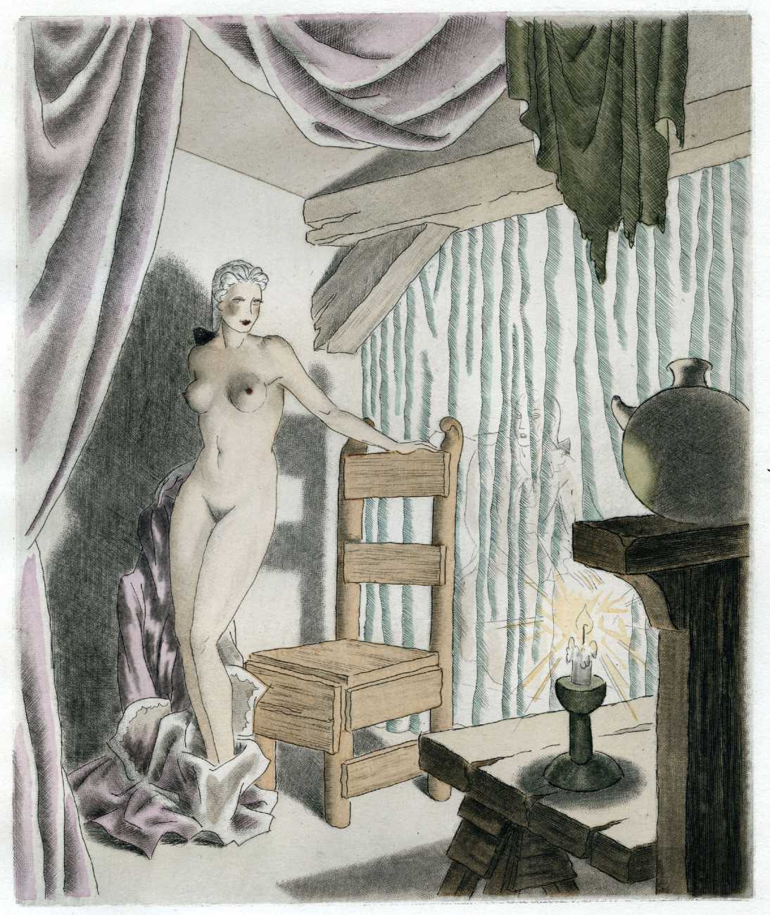 In his late forties he turned to book illustration, and between 1936 and 1946 produced artwork for more than twenty titles, including classics like Charles Baudelaire’s Les fleurs du mal and Jean de La Fontaine’s Contes et nouvelles.