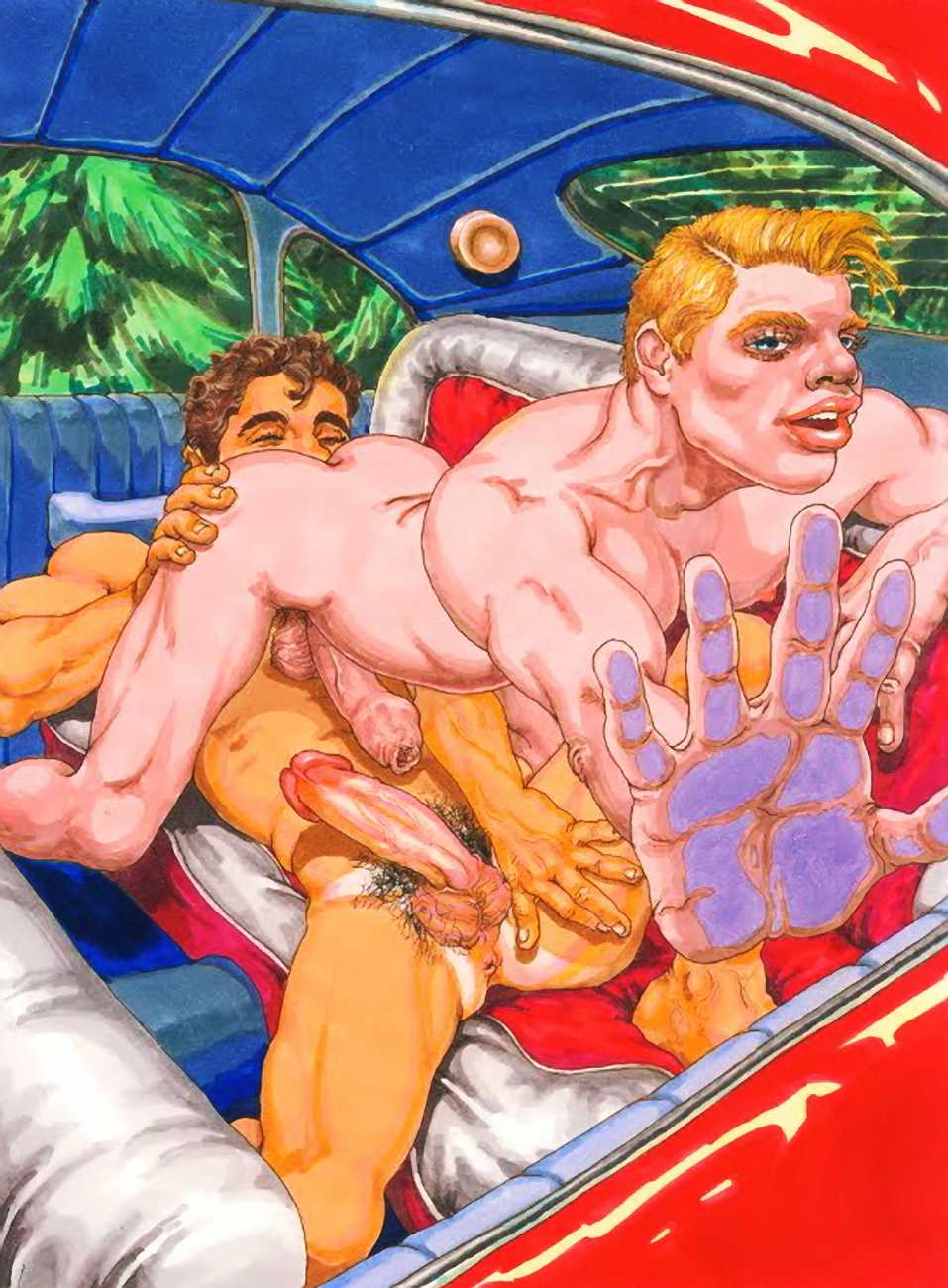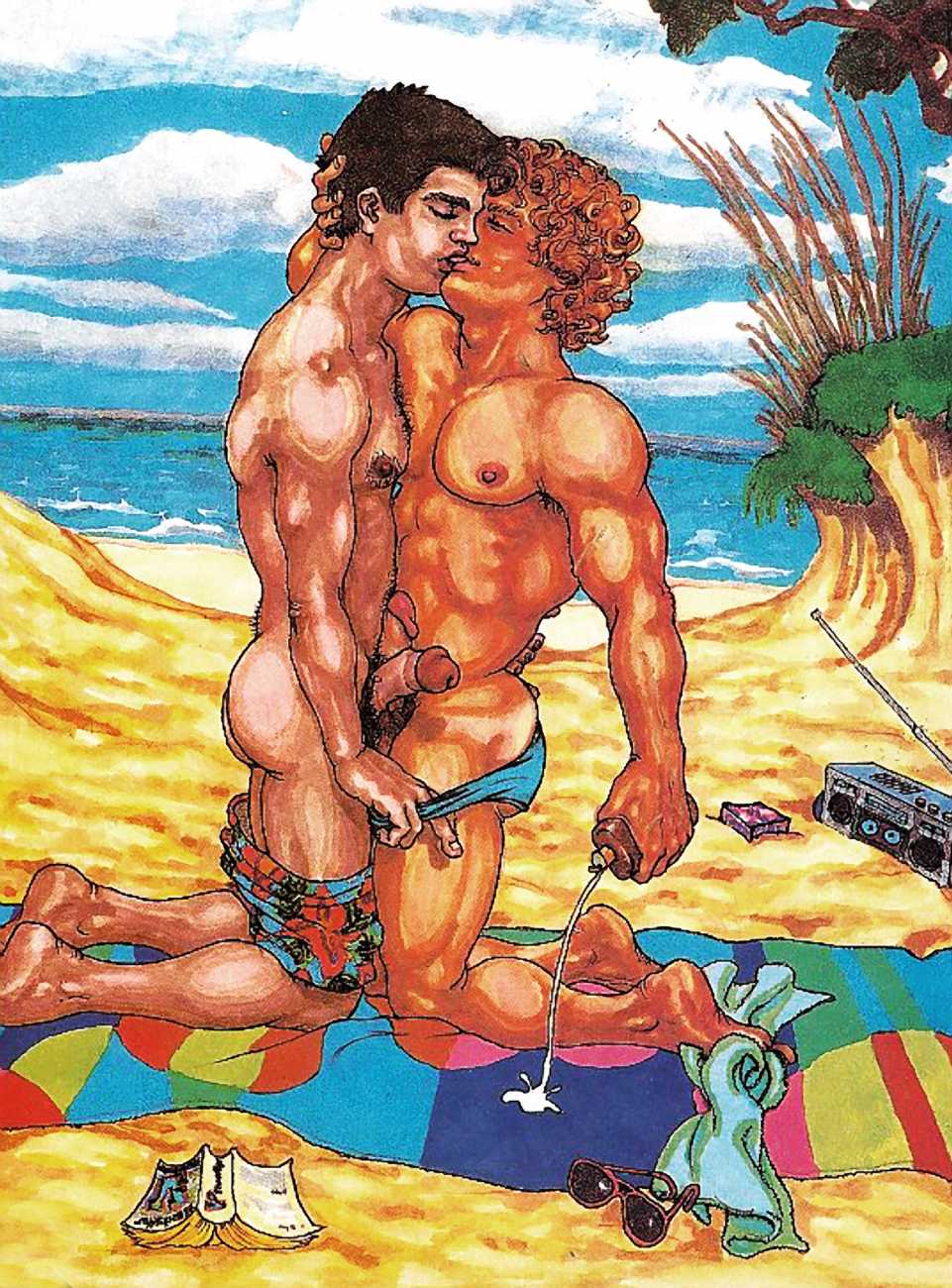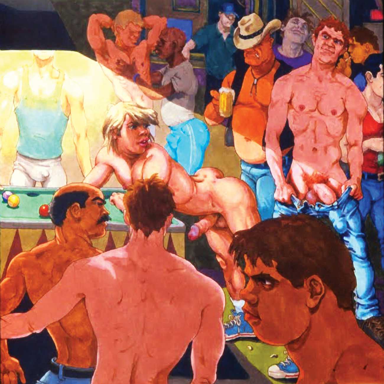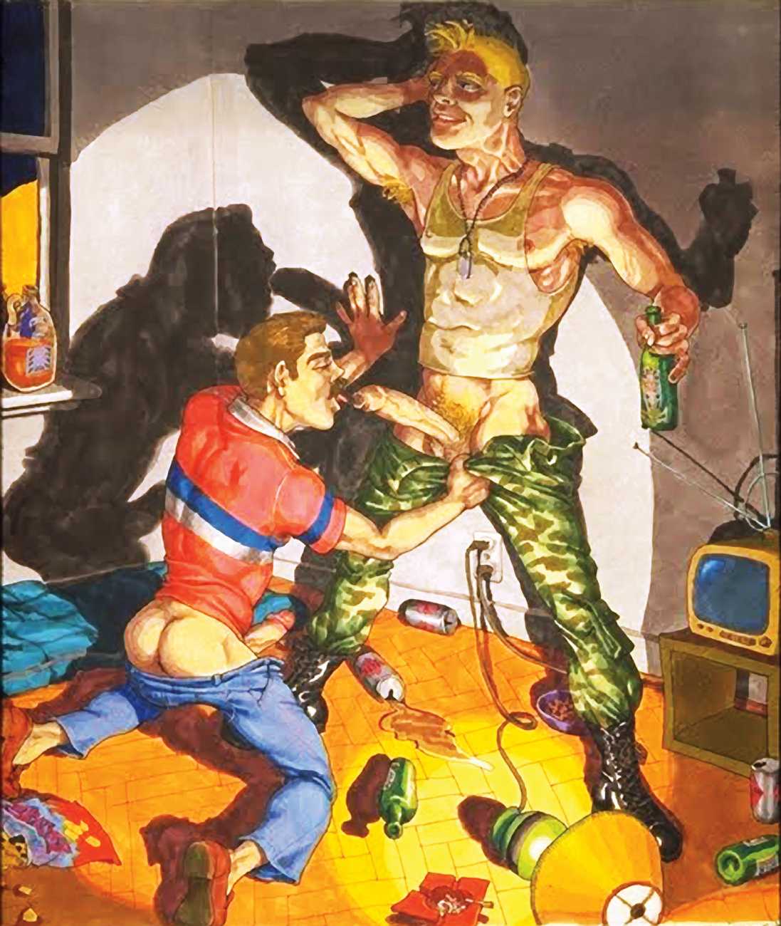 Michael Kirwan was one of the most productive, original and well-known artists of the American gay scene, his brightly-coloured and well-observed paintings capturing every aspect of the fantasy lives of men loving men. Though identifying as gay himself, he regularly drew scenes which included women, especially if they had plenty of flesh.