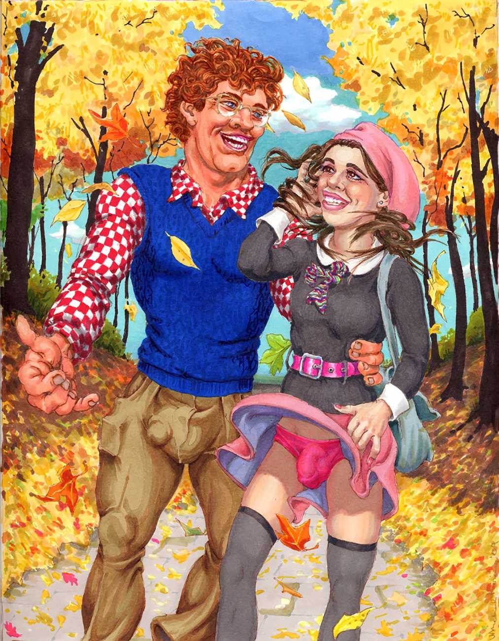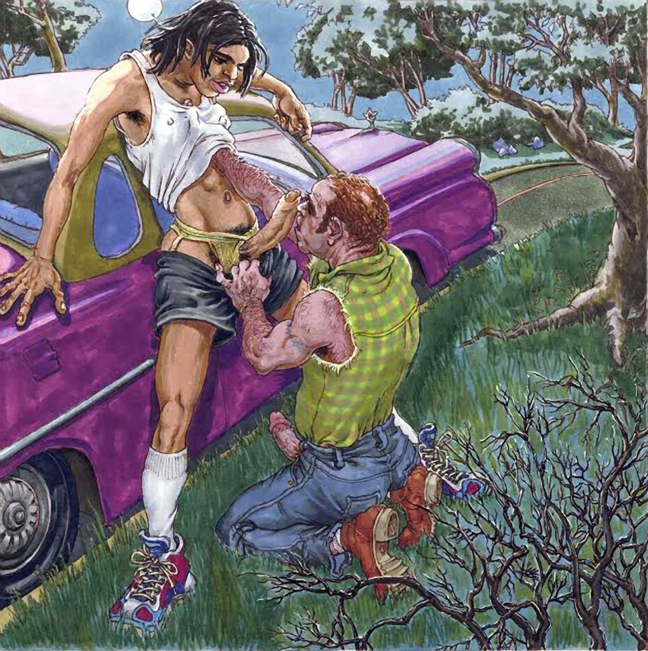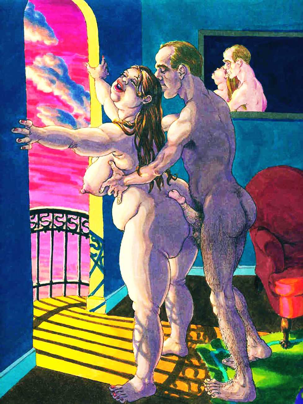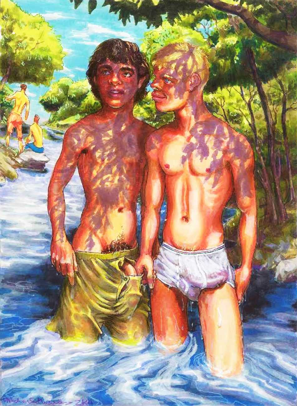 Michael Kirwan was one of the most productive, original and well-known artists of the American gay scene, his brightly-coloured and well-observed paintings capturing every aspect of the fantasy lives of men loving men. Though identifying as gay himself, he regularly drew scenes which included women, especially if they had plenty of flesh.