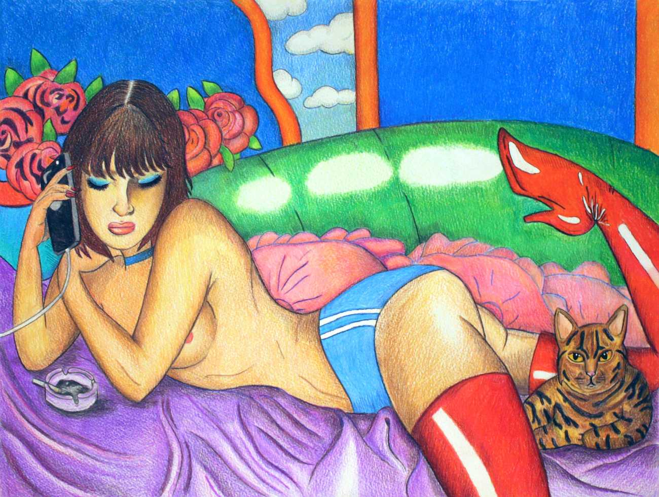 Canadian artist Nikki Peck, known to her many Instagram followers as @Bonercandy69, is an illustrator who uses her erotic art to rewrite her own narrative. She grew up in Vancouver, and studied studio arts and art history at Concordia University in Montreal, graduating in 2014. She followed this up with an MFA in Visual Art at the Emily Carr University of Art and Design. Her erotica was born out of her own difficult encounters, a series of toxic relationships which left her feeling gaslighted and slut-shamed. She wanted to feel confident, strong and sexually charged, and her illustrations became a cathartic outlet.