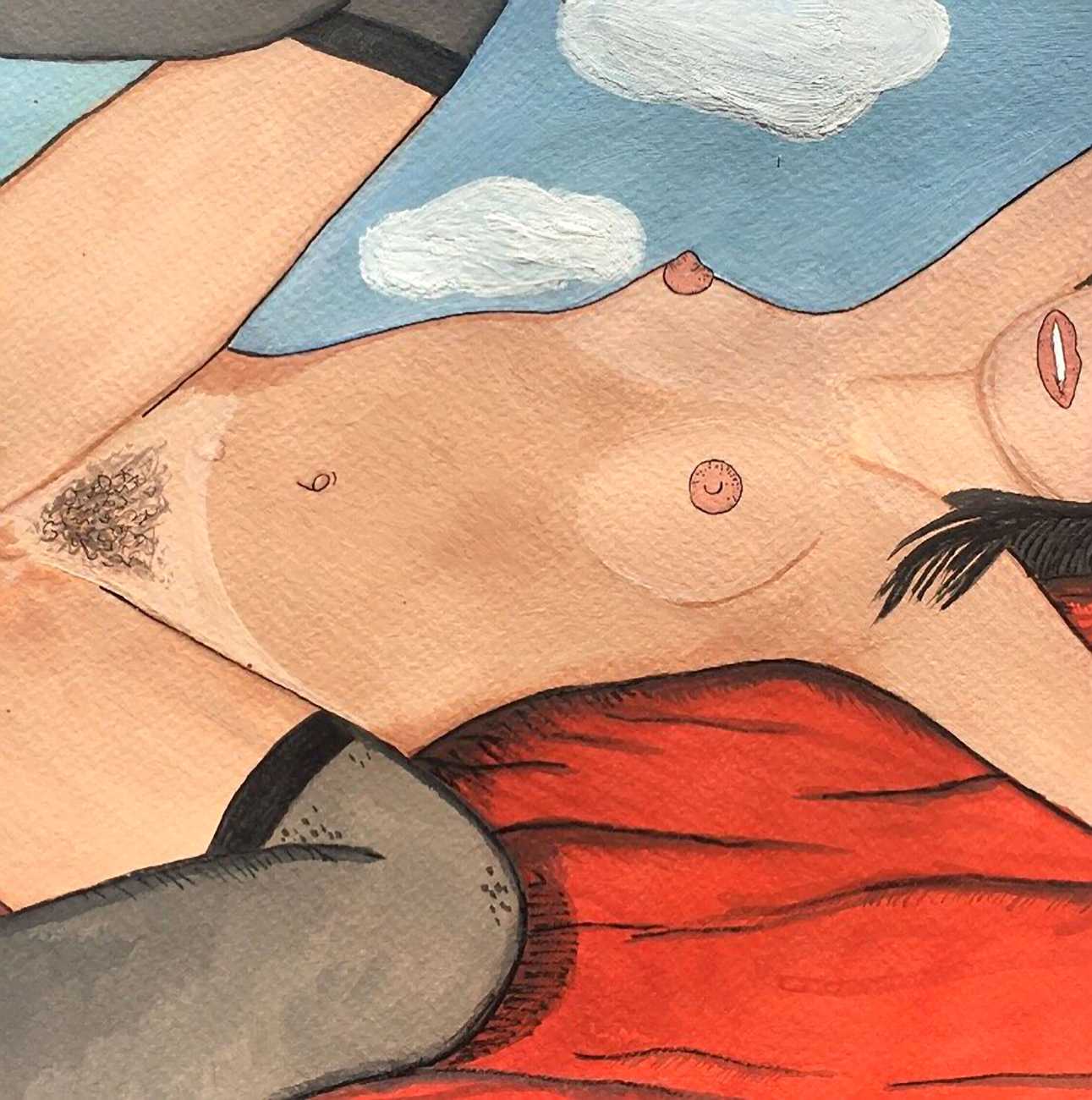 They have since evolved into intimate scenarios of women that explore issues of rejection and shame in a very tongue-in-cheek way. ‘We are objectified for male visual pleasure, that's just how it's been since day one,’ she explains. ‘Our sexuality is used against us and sold back to us in very hyper-sexual, derogatory and violent ways.’ Filled with humour, her work aims to flip that, establishing women’s place in pleasure and sexual exploration which is as messy, hairy, and totally imperfect as it is in real life.
