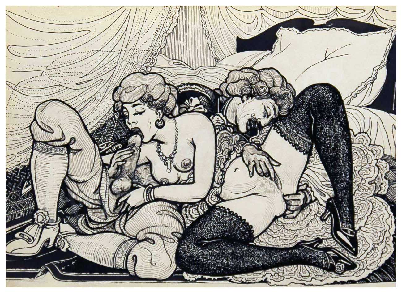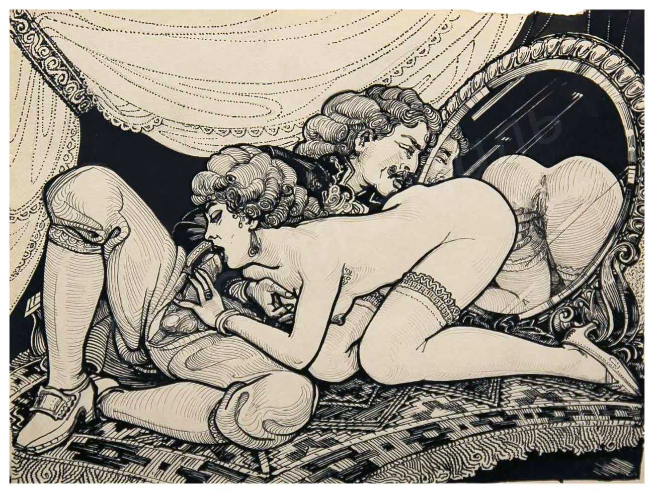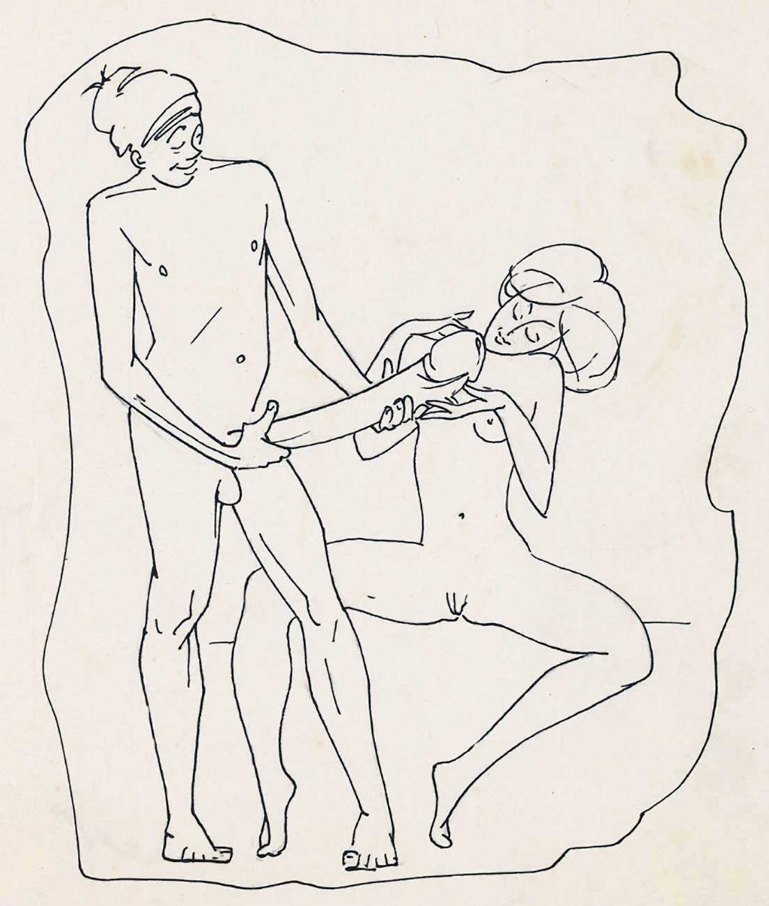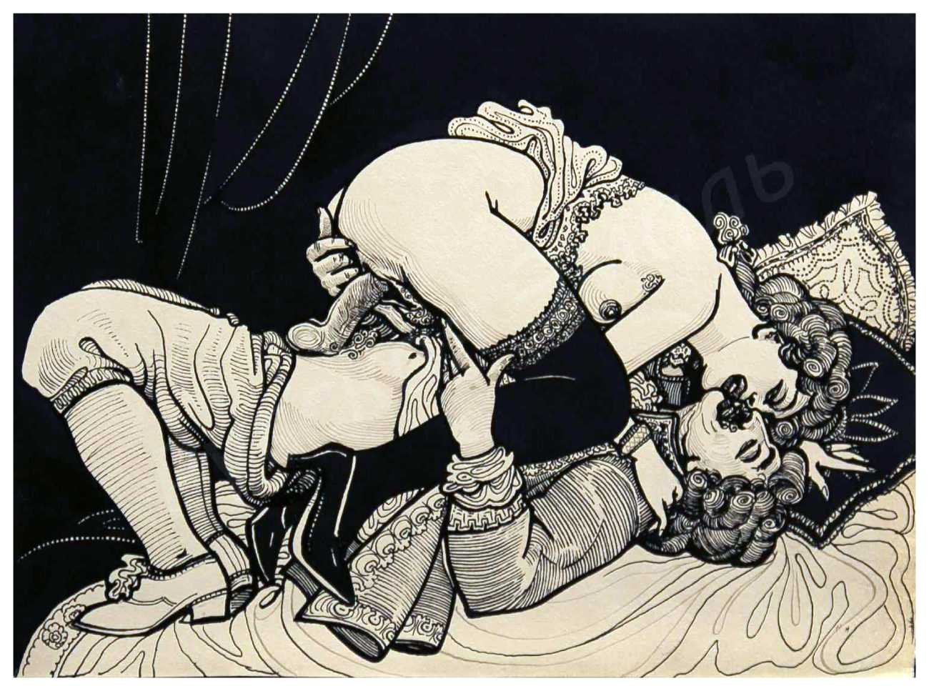 During the 1960s and 70s Sapach produced a large number of cartoon-like drawings commenting on life in Soviet Russia, together with several limited edition portfolios of erotic art, demonstrating that he was able to produce works in a wide variety of styles. None of his erotic work is dated.