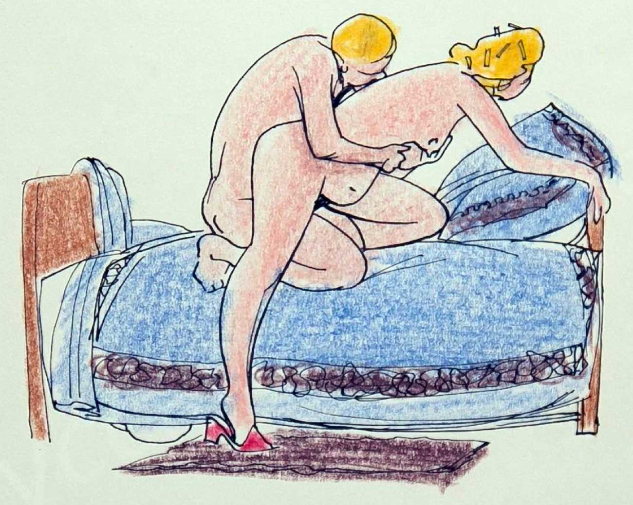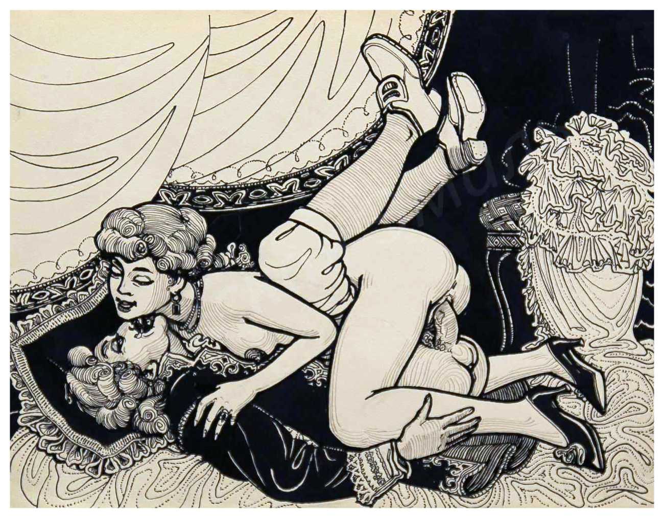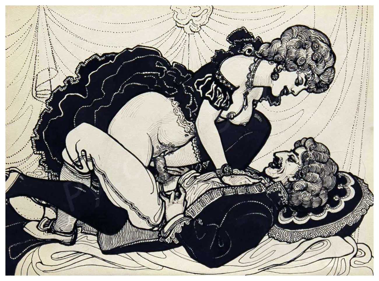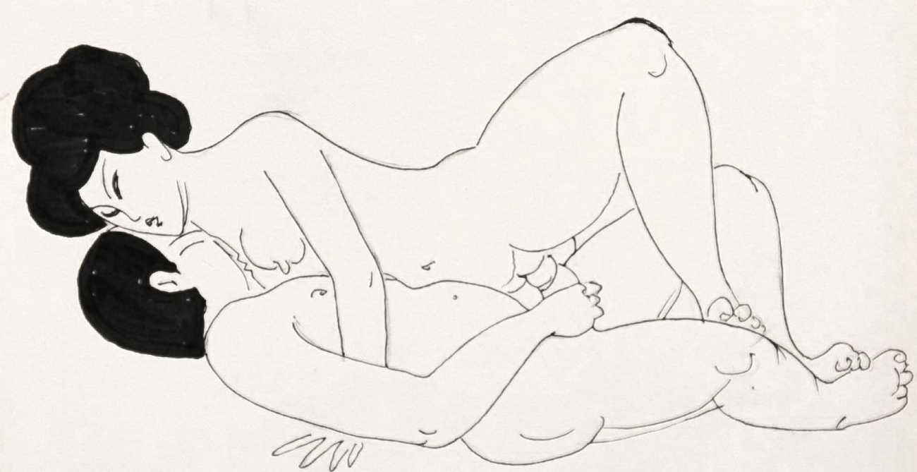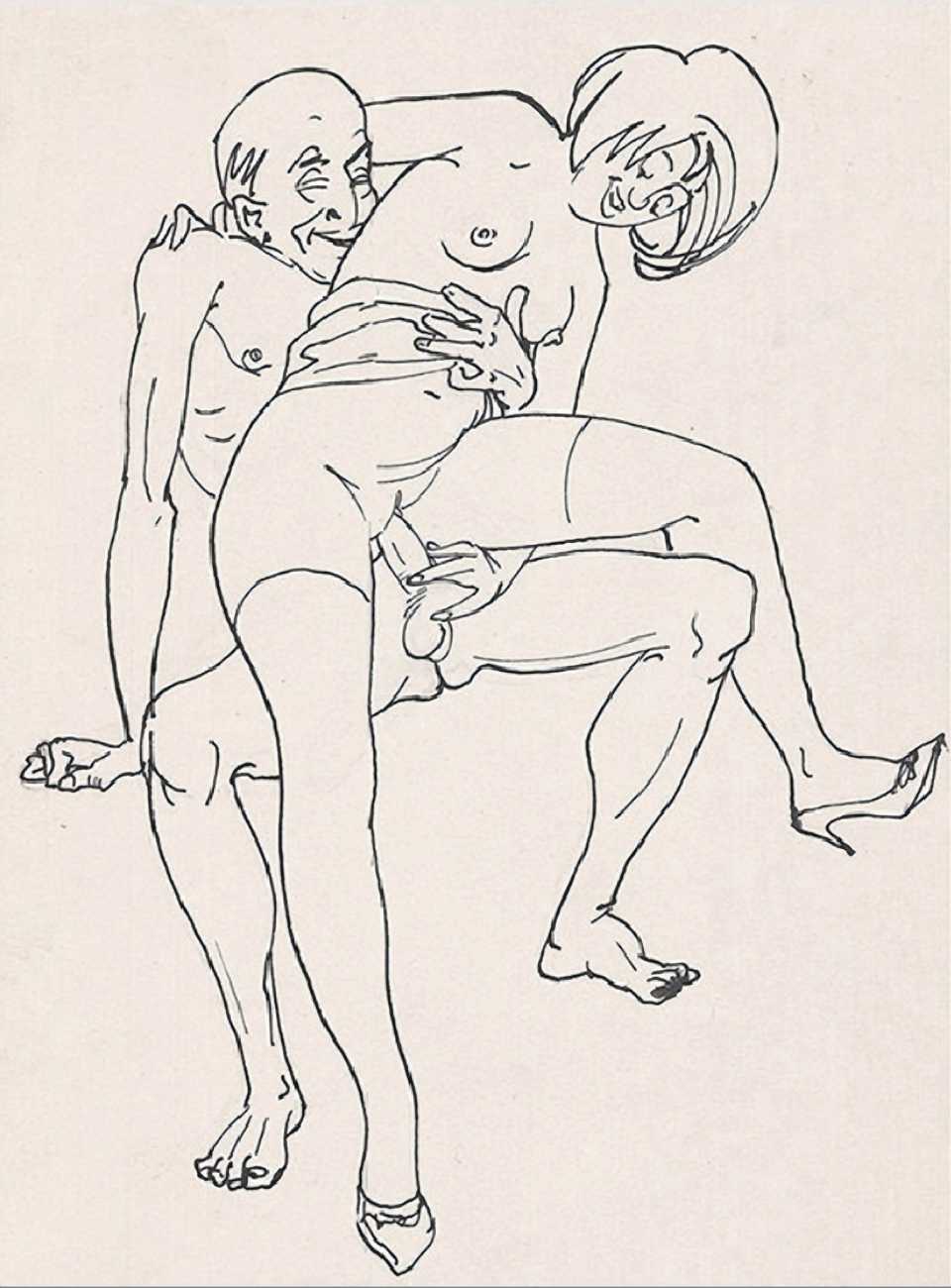 During the 1960s and 70s Sapach produced a large number of cartoon-like drawings commenting on life in Soviet Russia, together with several limited edition portfolios of erotic art, demonstrating that he was able to produce works in a wide variety of styles. None of his erotic work is dated.