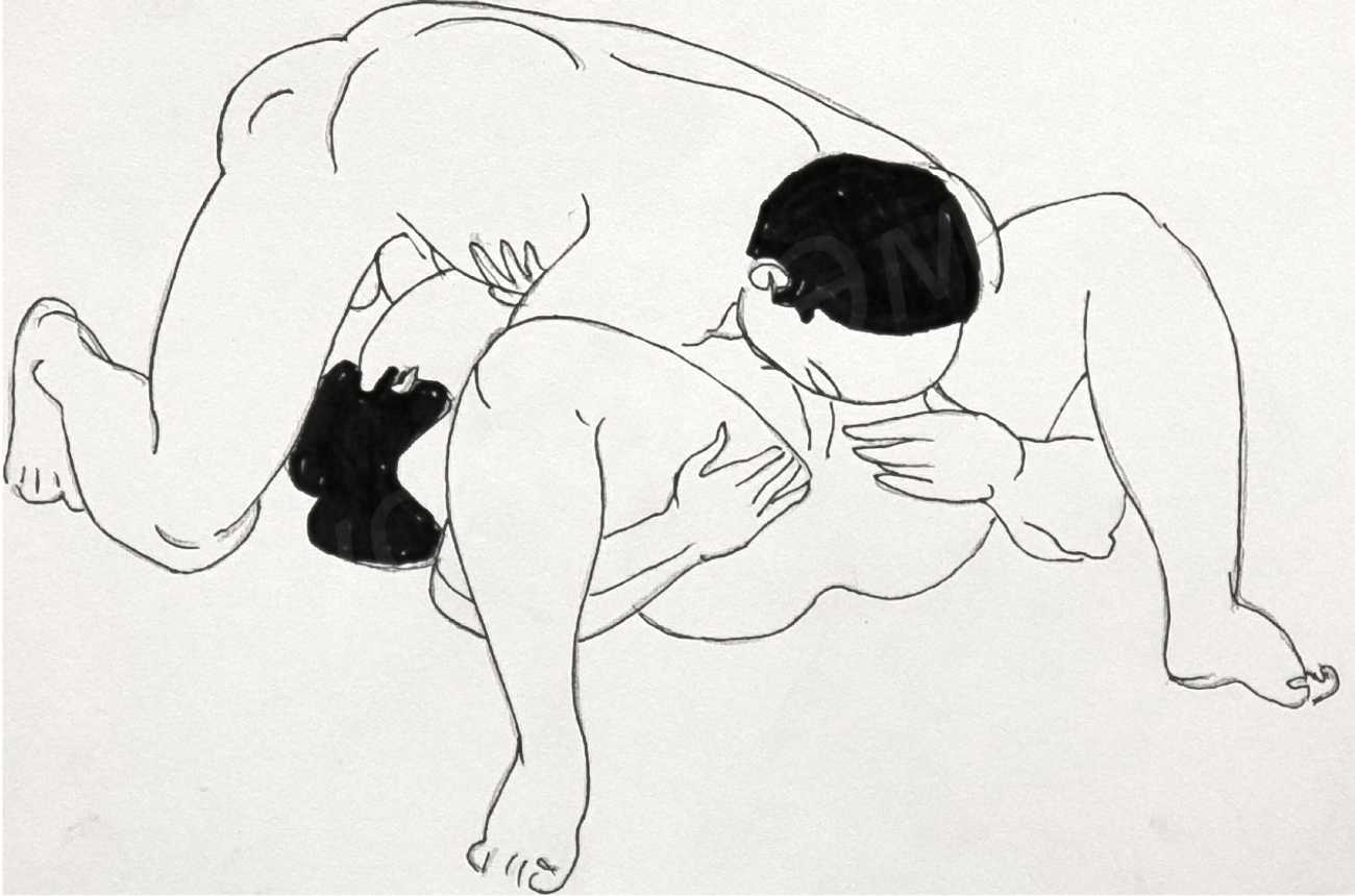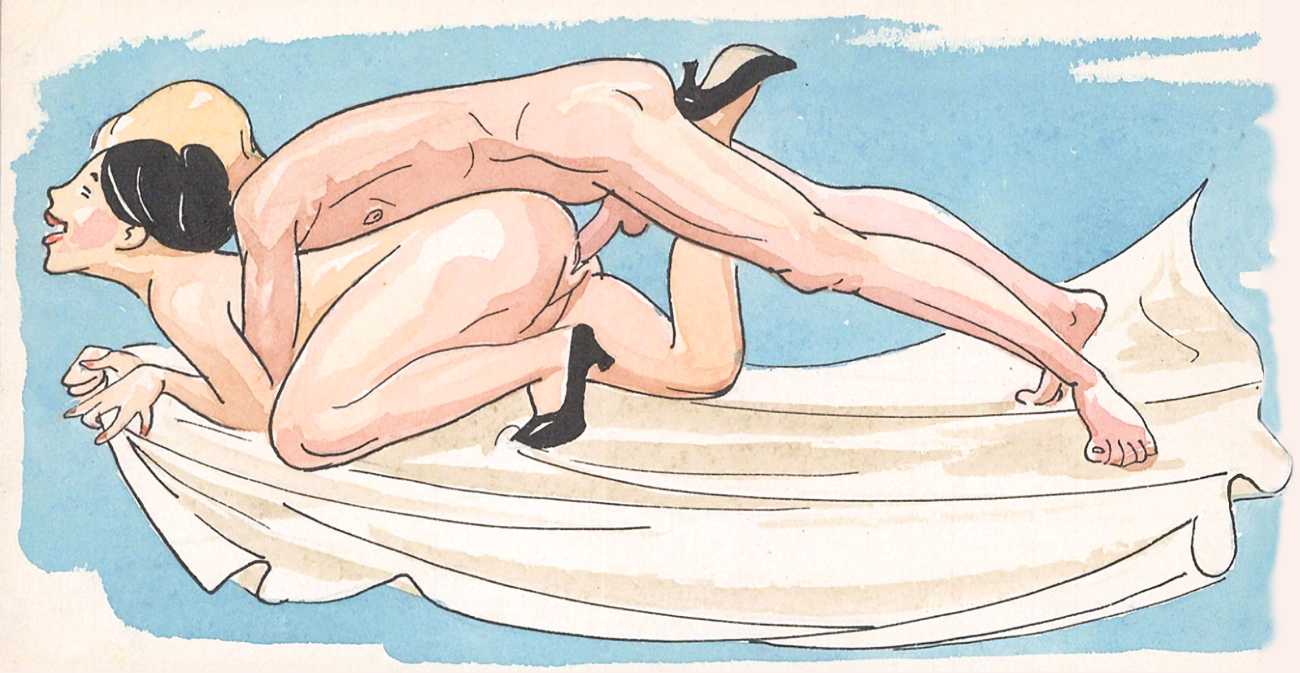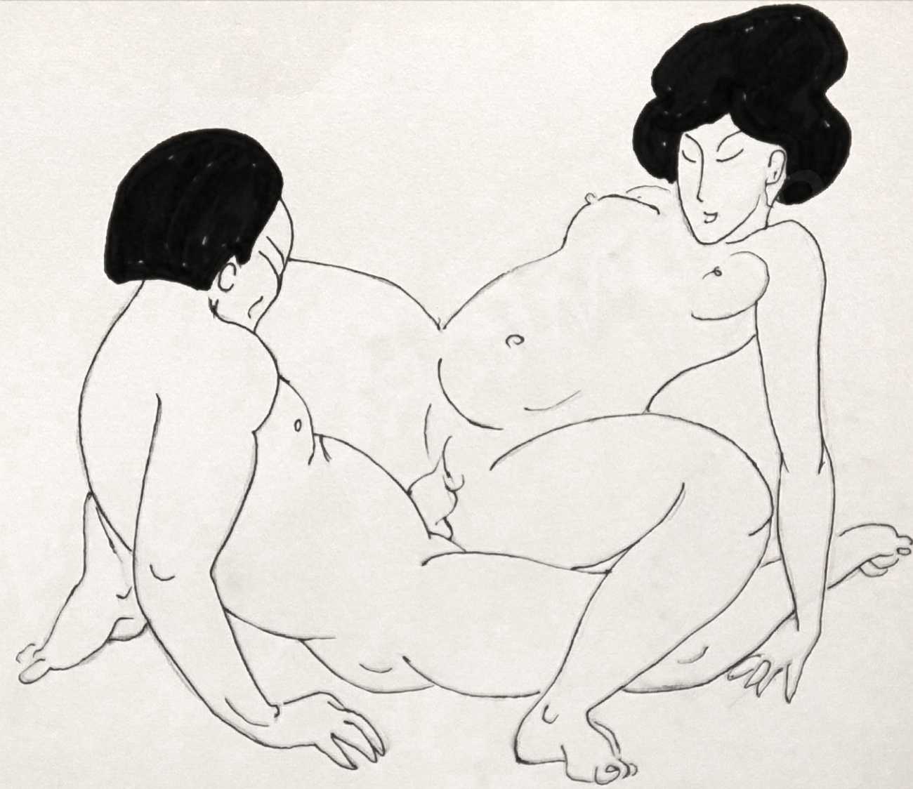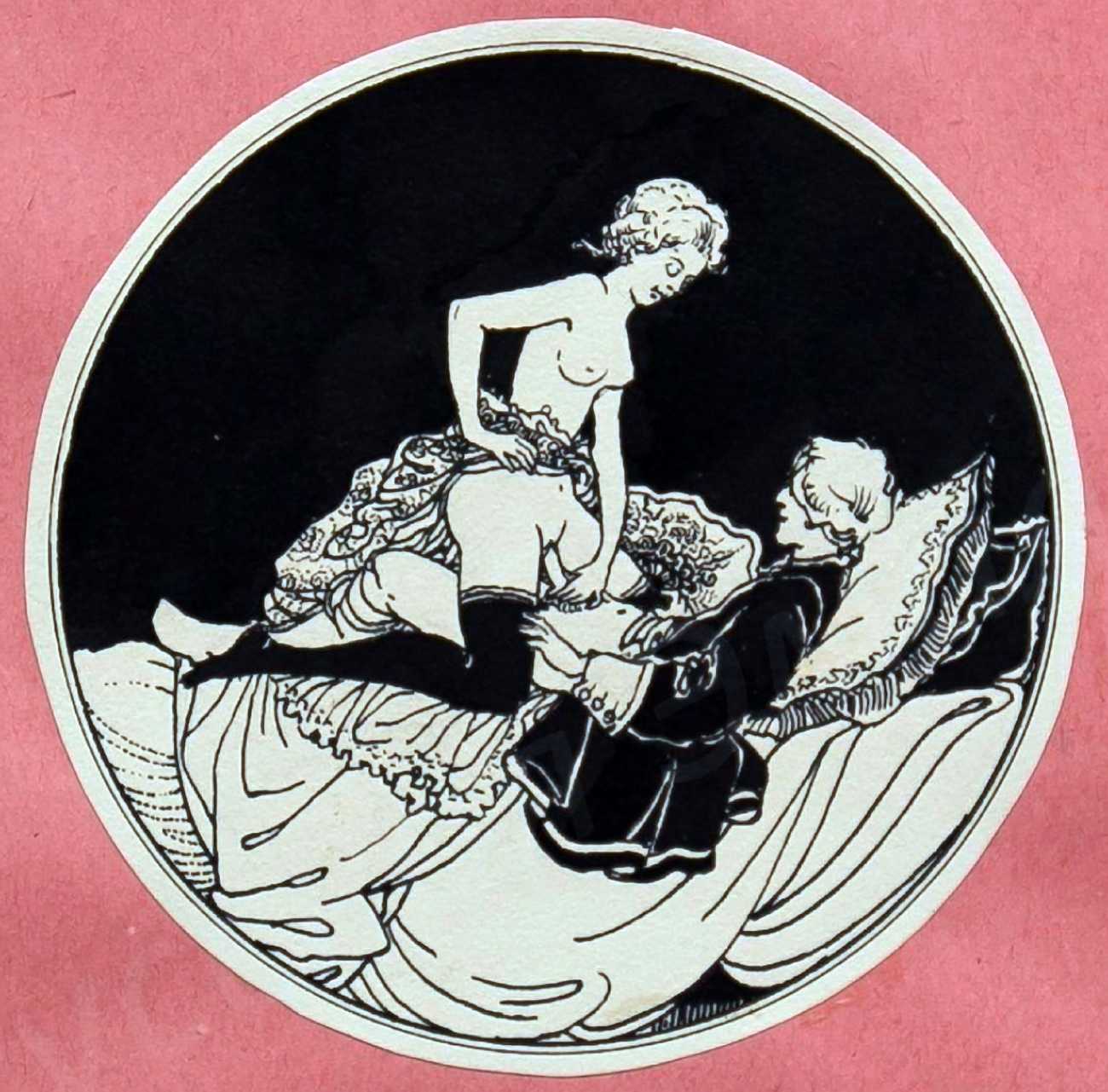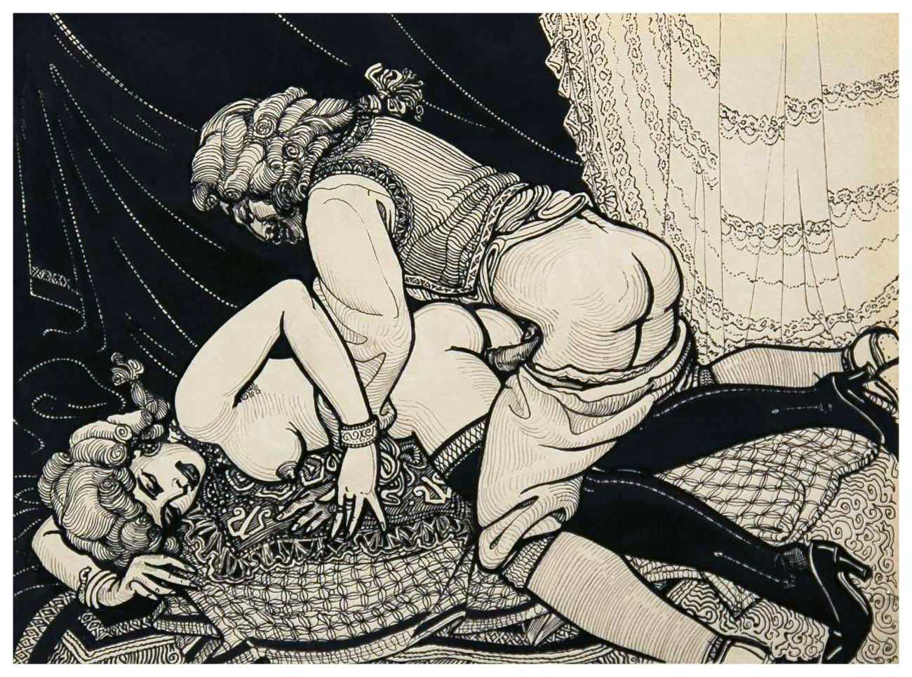 During the 1960s and 70s Sapach produced a large number of cartoon-like drawings commenting on life in Soviet Russia, together with several limited edition portfolios of erotic art, demonstrating that he was able to produce works in a wide variety of styles. None of his erotic work is dated.