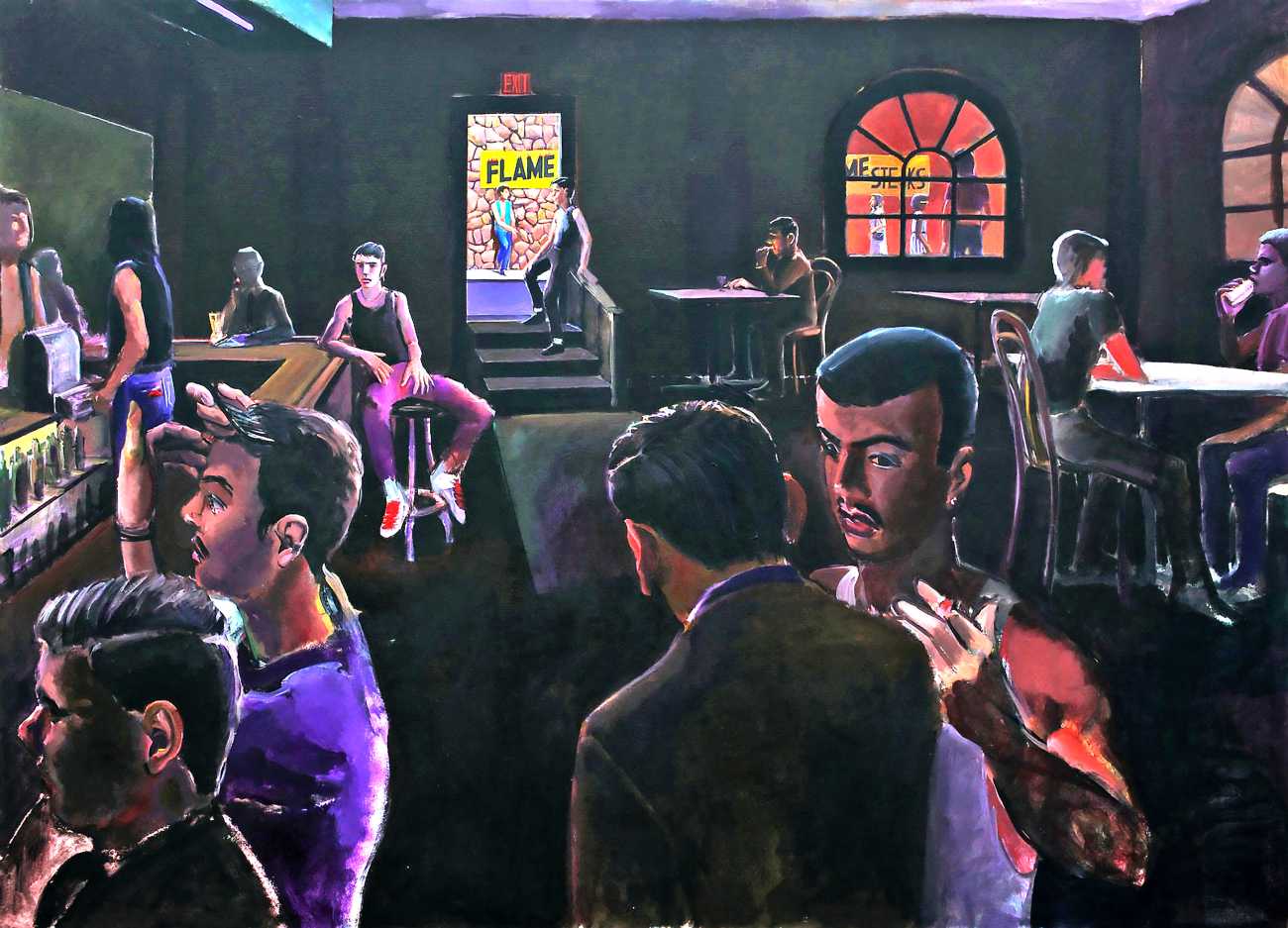 In the early 1980s he began to paint large canvases based on his personal obsession with erotic loneliness, but his subject matter closed off the commercial art market, and the bourgeois gay establishment disapproved of his depictions of the politically incorrect ‘bad’ gay life, the demimonde of cruising, hustling and loneliness. In despair that his work would never be accepted by the art establishment, Angus resigned himself to obscurity and poverty. He found a room in a New York welfare hotel where he could paint, but he refused to risk more humiliation by attempting to exhibit his work.