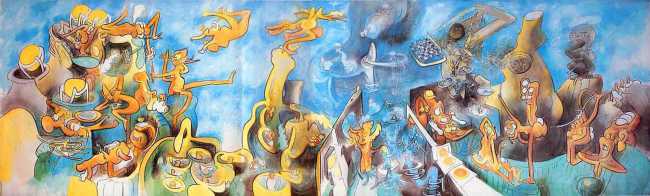Roberto Sebastián Antonio Matta Echaurren, better known as Roberto Matta, was one of Chile’s best-known painters, and a prominent figure in abstract and surrealist expressionist art of the twentieth century. Born in Santiago, he first studied architecture at the Pontificia Universidad Católica, but was unfulfilled as an architect and left for Paris in 1933 to explore the world of modern art. His travels in Europe and the United States led to important meetings with artists including Arshile Gorky, René Magritte, Salvador Dalí, André Breton, and Le Corbusier.