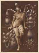She was hired by Jean-Paul Goude for her first illustration for Esquire, and had a thirty-year career illustrating for magazines, music and book covers, being best known for the cover designs for the Provence books of Peter Mayle. She had a brief stint as a fashion illustrator for Bergdorf Goodman, Salvatore Ferragamo, Barney’s, and Vogue magazine, and a growing love of the printed image informs her current work – altering the configuration and content of eighteenth-century copper plate engraving prints using overdrawing and collage.