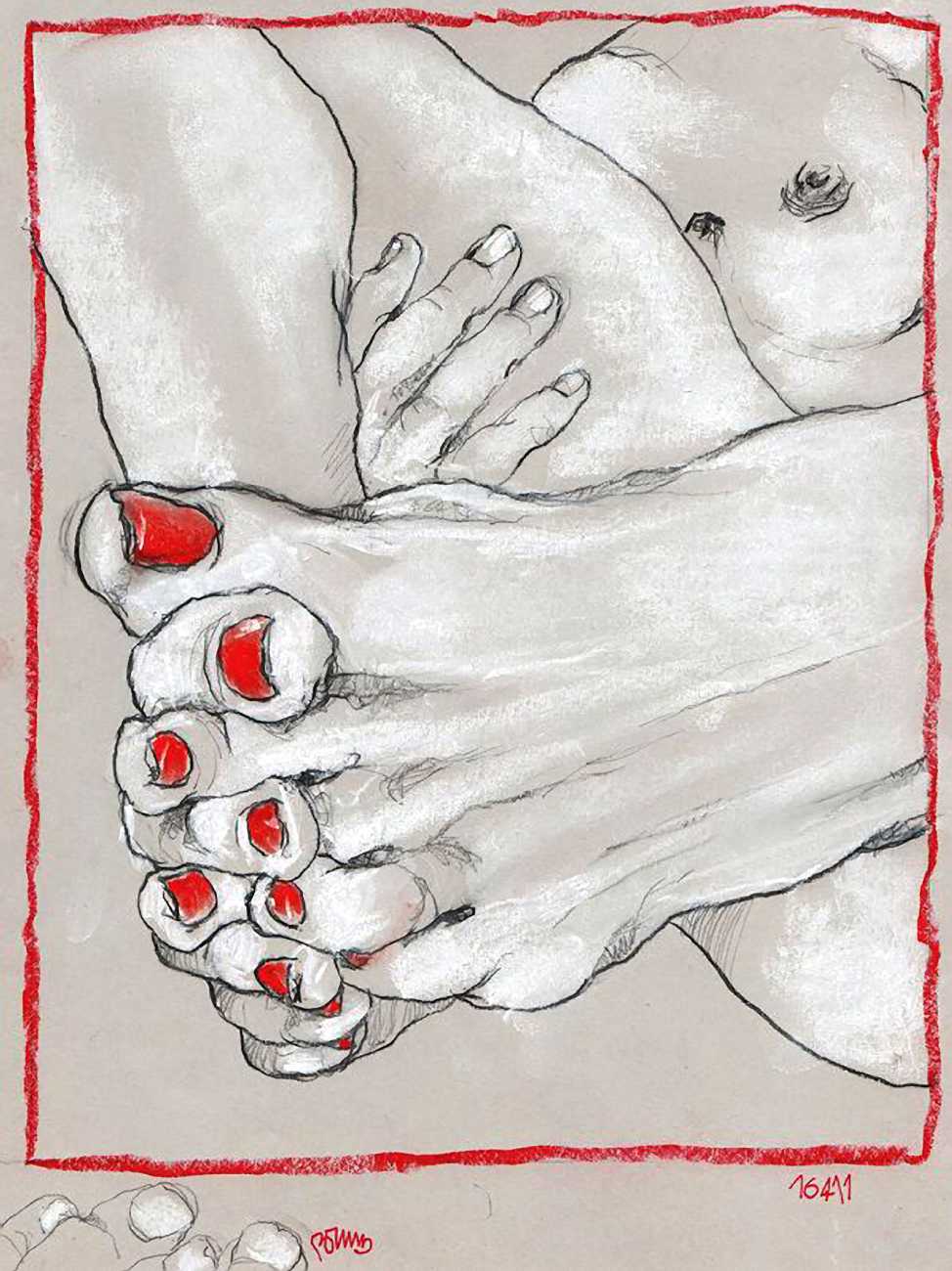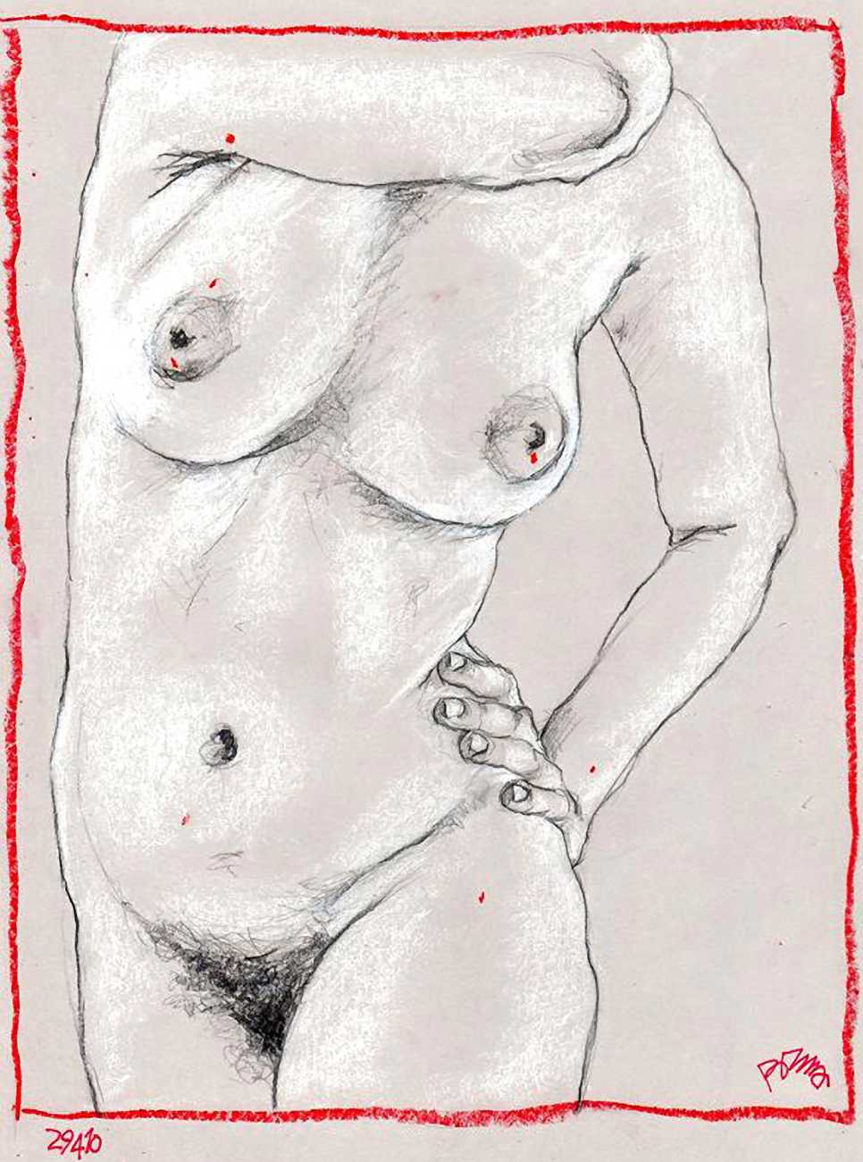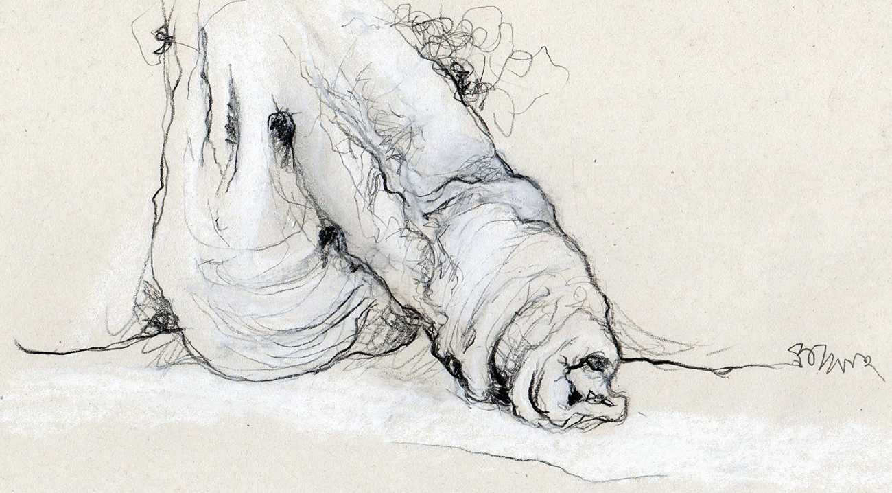 ‘Honest art arises from the accumulation of one’s own visual experiences, conscience, and knowledge of one’s own and others’ bodies. In conjunction with the intellect, it offers the expressive means of being both what one is and what one chooses to share.’ Thus writes the Italian artist Salvatore Bruno of his voluminous portfolio of drawings of the naked human body, especially the bits and interactions that most artists – and most life drawing students – choose not to dwell on.