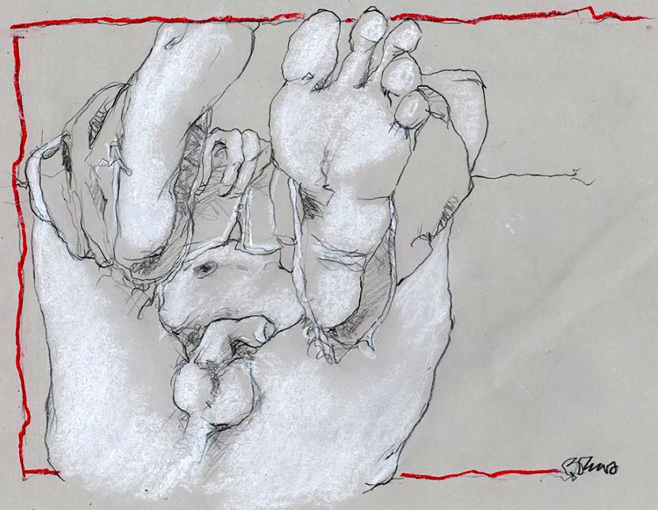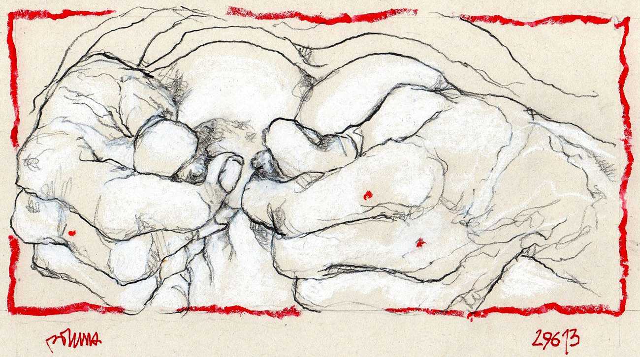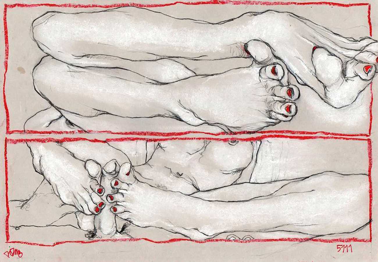‘Honest art arises from the accumulation of one’s own visual experiences, conscience, and knowledge of one’s own and others’ bodies. In conjunction with the intellect, it offers the expressive means of being both what one is and what one chooses to share.’ Thus writes the Italian artist Salvatore Bruno of his voluminous portfolio of drawings of the naked human body, especially the bits and interactions that most artists – and most life drawing students – choose not to dwell on.