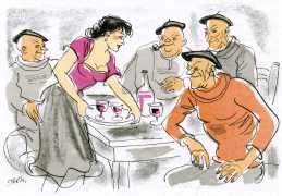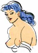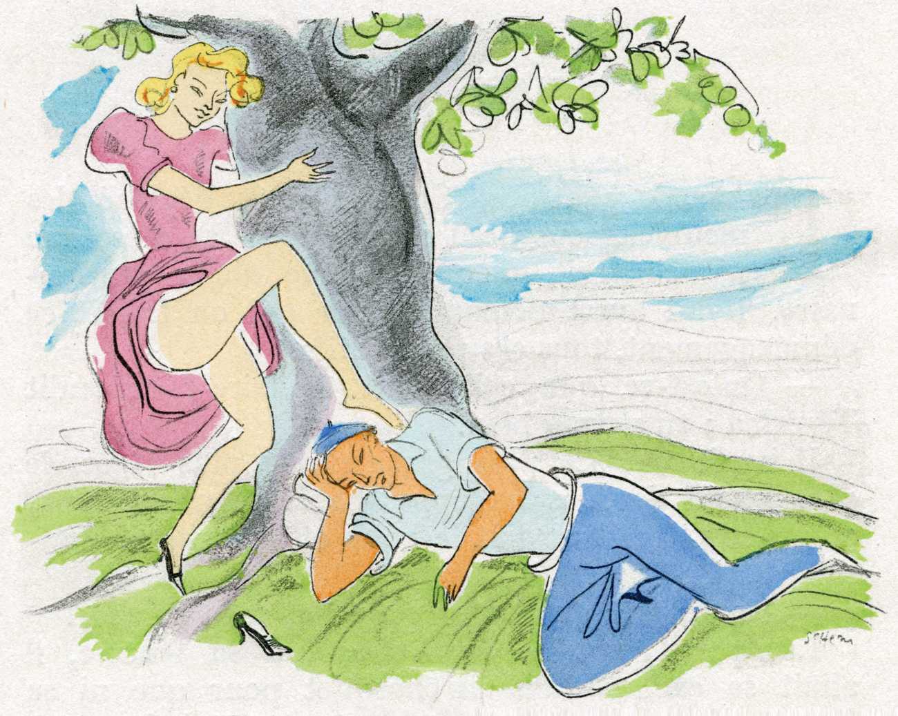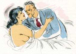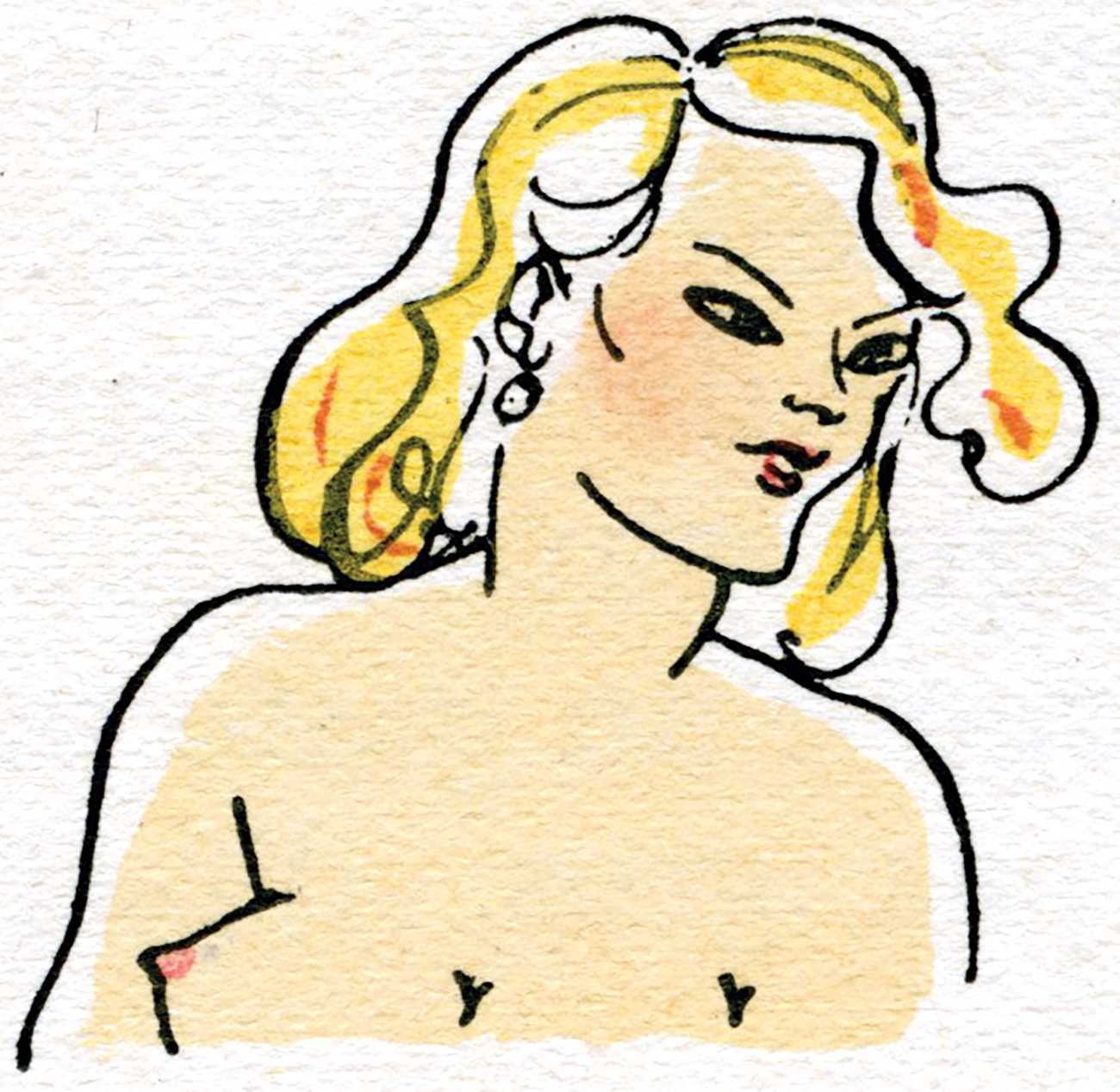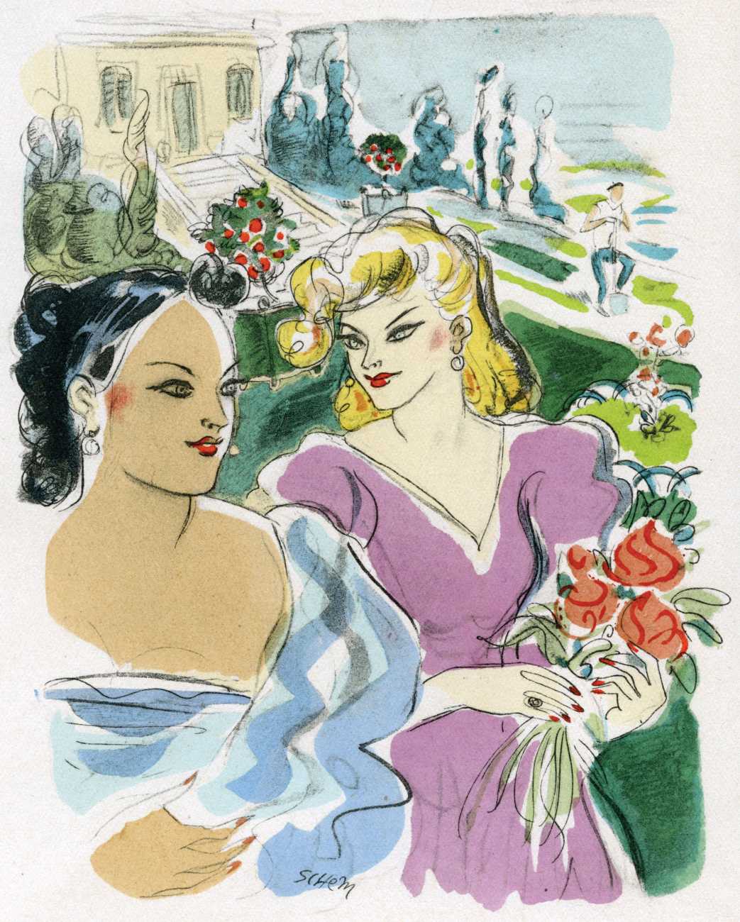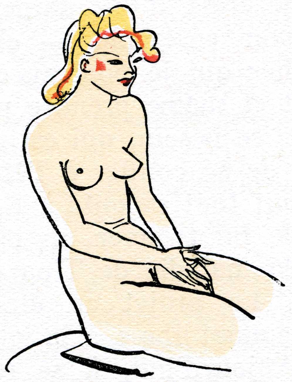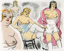 Among the mildly erotic titles illustrated by Schem are D.H. Lawrence’s Lady Chatterley (the French title for Lady Chatterley’s Lover), Le grant testament de Françoys Villon, Theophile Gautier’s Fortunio, and Paul Verlaine’s poetry. Apart from an edition of Pierre Louÿs’ Manuel de civilité, which may or may not be his work, we have only included here his illustrations for the 1936 L’histoire de Jérôme, the 1946 Le désir, the 1948 Petites cousines, Louÿs’ Roi Pausole, and Brantôme’s Les dames galantes, as his illustrations, while accomplished, tend to be very similar in style and rather characterless.