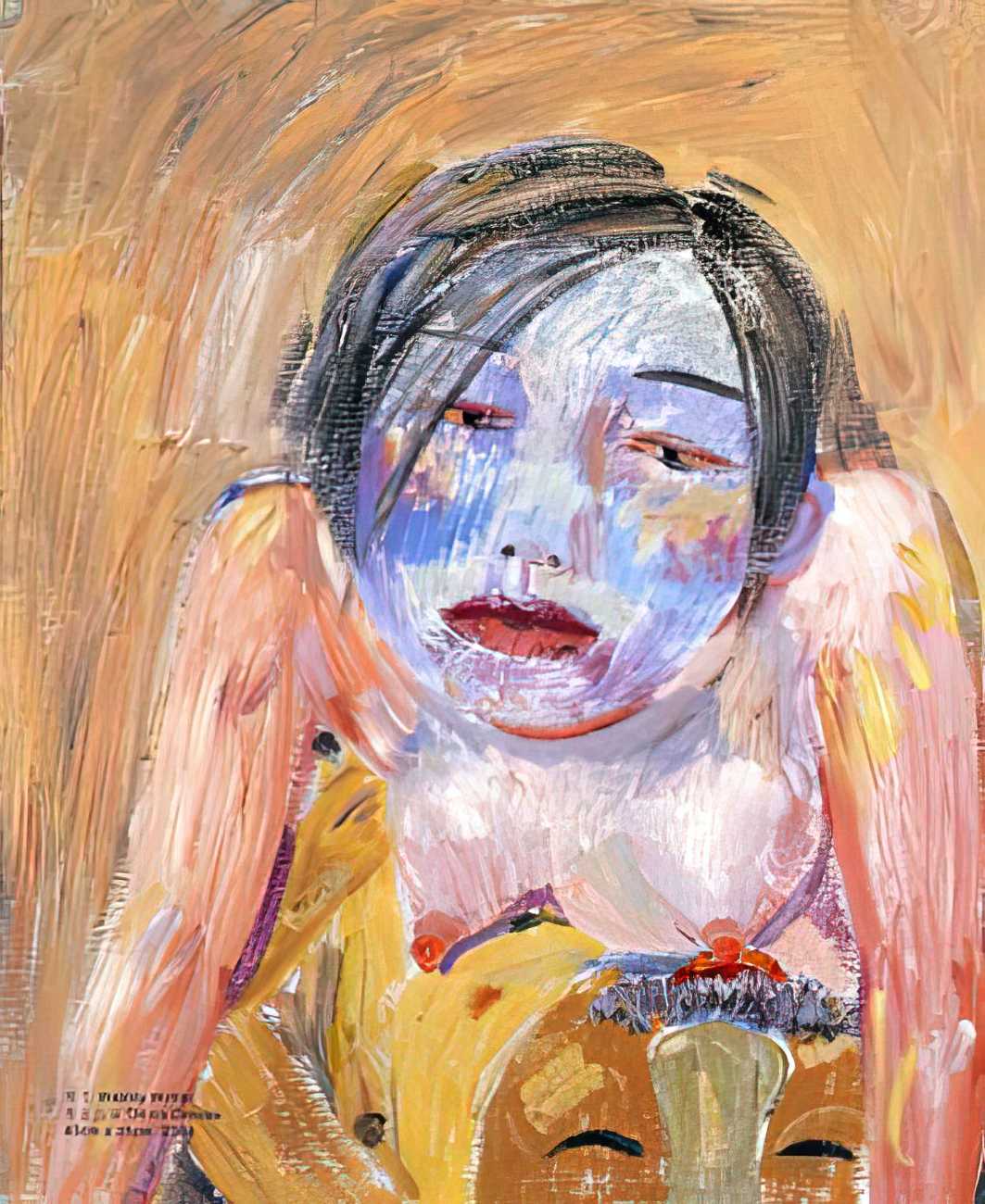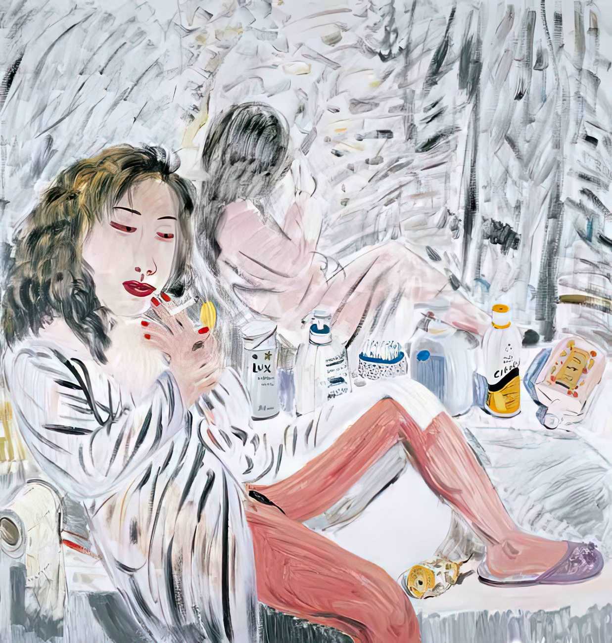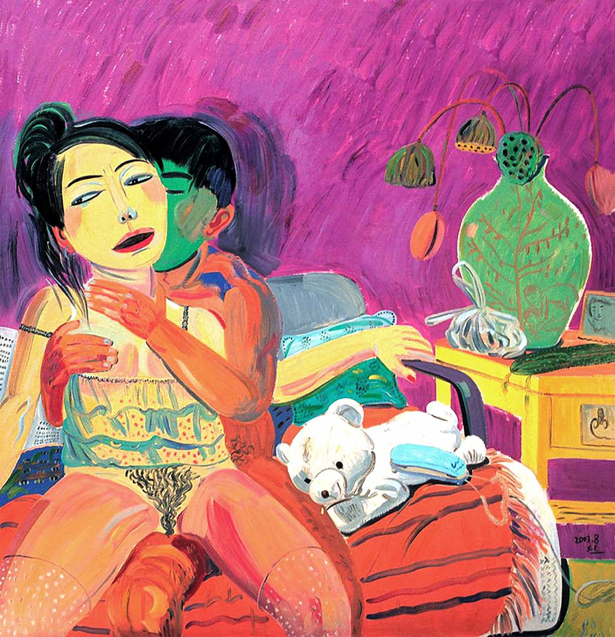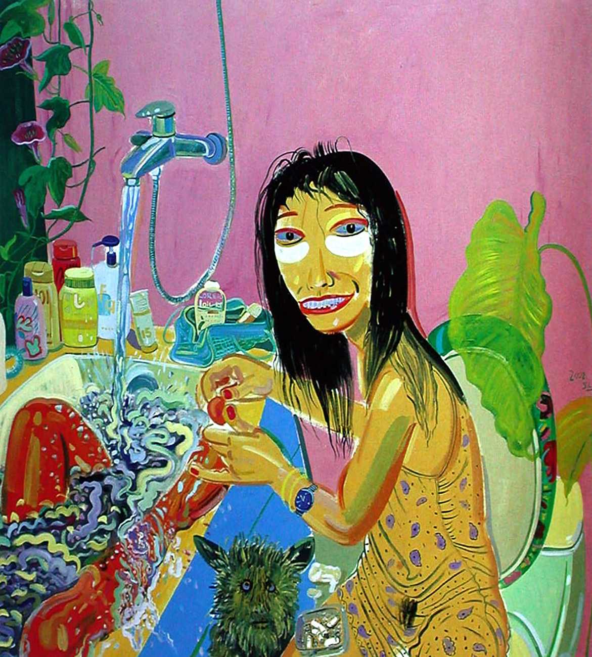 Shen Ling graduated from high school to Central Academy of Fine Arts in Beijing in 1985, and in 1989 received her bachelor’s degree from the Oil Painting Department of Central Academy of Fine Arts, where she now works. Her first solo exhibition was in 1988 at the National Art Museum of China in Beijing, and recent exhibitions include ‘Intensity of Solidity’ at the Tang Contemporary Art, Hong Kong, in 2019, and ‘Empty Flowers’ at Tang Contemporary Art in Beijing in 2022. She sometimes exhibits with her partner, Wang Yuping, who is a more traditional artist.