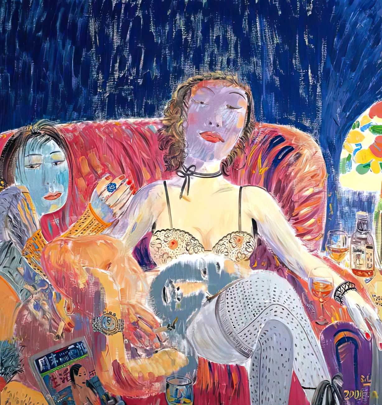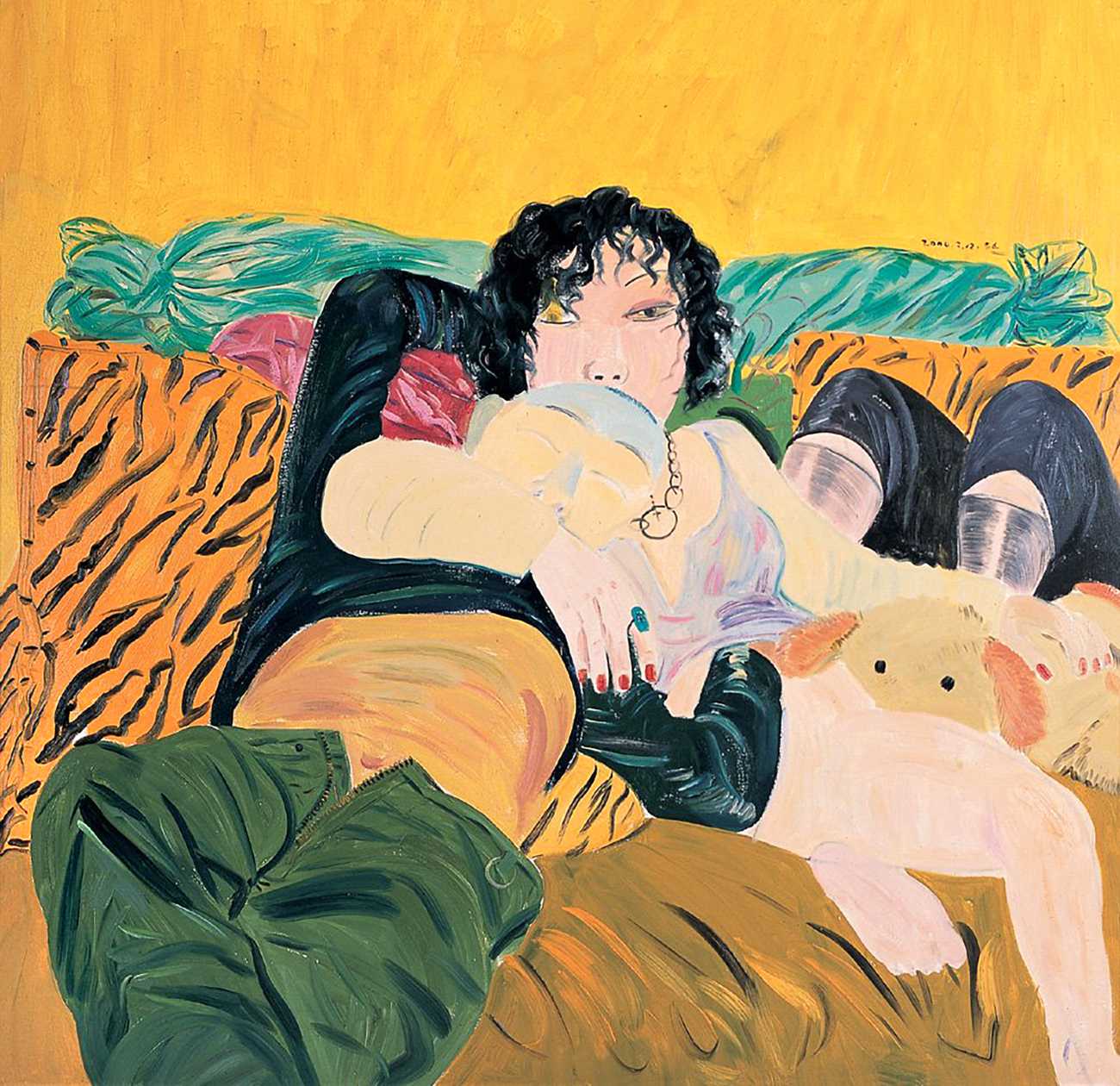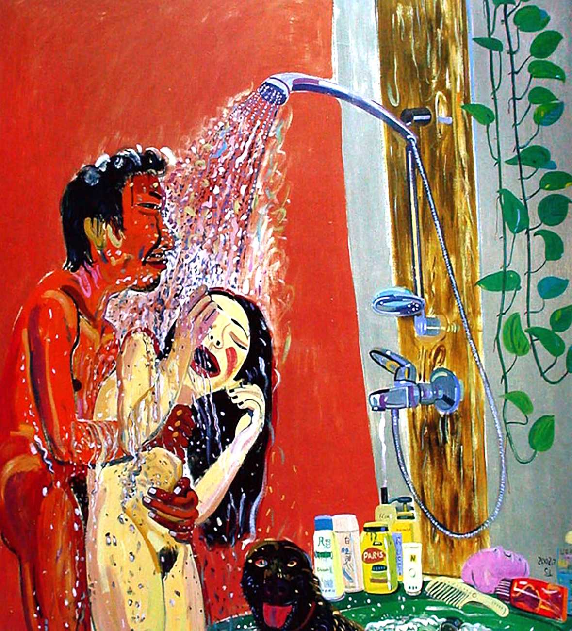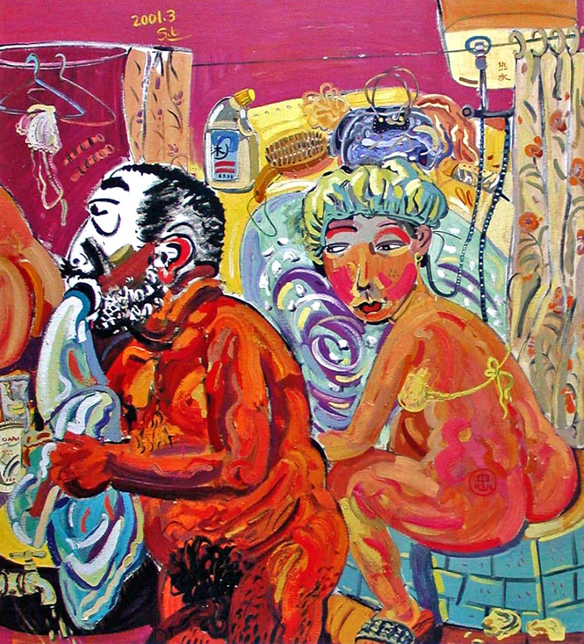 Shen Ling graduated from high school to Central Academy of Fine Arts in Beijing in 1985, and in 1989 received her bachelor’s degree from the Oil Painting Department of Central Academy of Fine Arts, where she now works. Her first solo exhibition was in 1988 at the National Art Museum of China in Beijing, and recent exhibitions include ‘Intensity of Solidity’ at the Tang Contemporary Art, Hong Kong, in 2019, and ‘Empty Flowers’ at Tang Contemporary Art in Beijing in 2022. She sometimes exhibits with her partner, Wang Yuping, who is a more traditional artist.