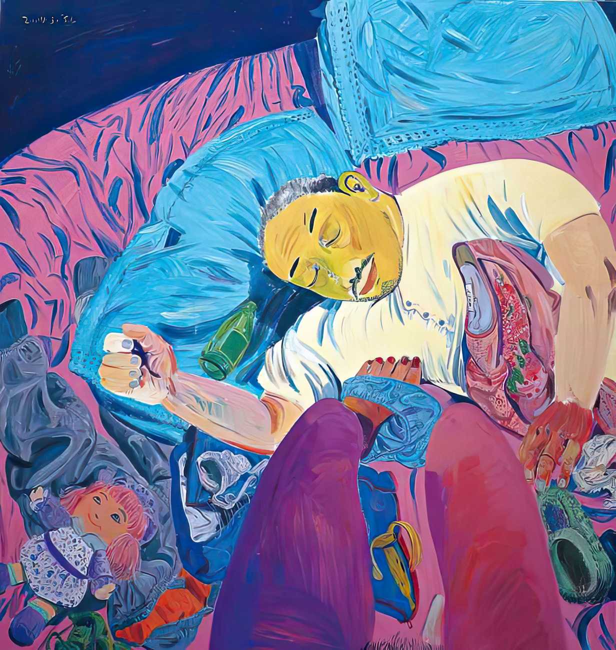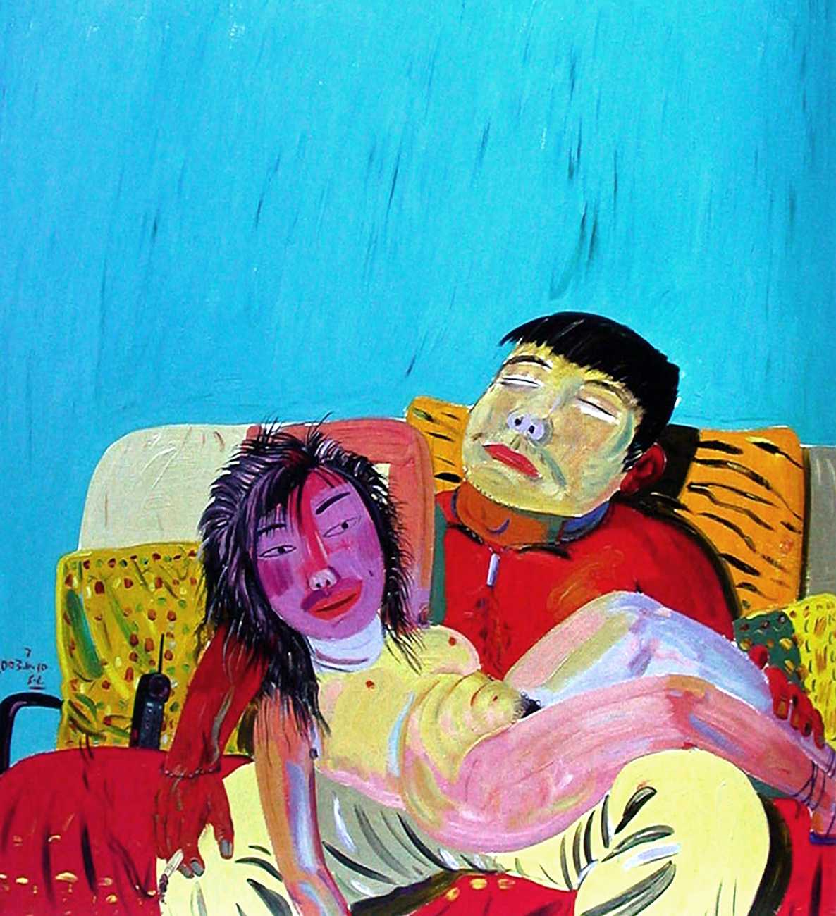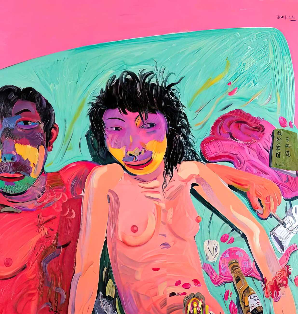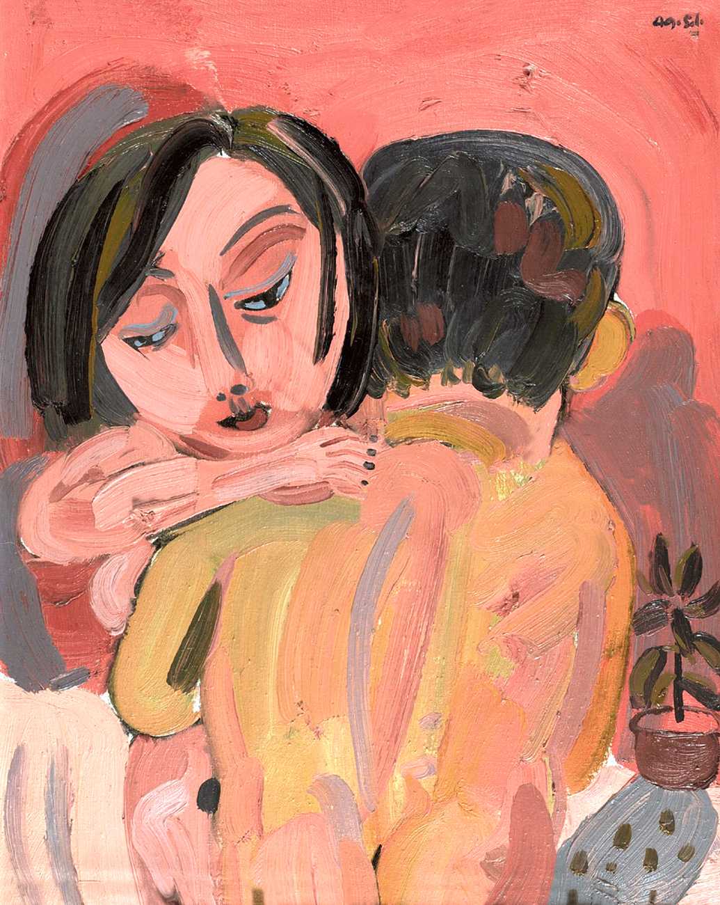 Shen Ling graduated from high school to Central Academy of Fine Arts in Beijing in 1985, and in 1989 received her bachelor’s degree from the Oil Painting Department of Central Academy of Fine Arts, where she now works. Her first solo exhibition was in 1988 at the National Art Museum of China in Beijing, and recent exhibitions include ‘Intensity of Solidity’ at the Tang Contemporary Art, Hong Kong, in 2019, and ‘Empty Flowers’ at Tang Contemporary Art in Beijing in 2022. She sometimes exhibits with her partner, Wang Yuping, who is a more traditional artist.