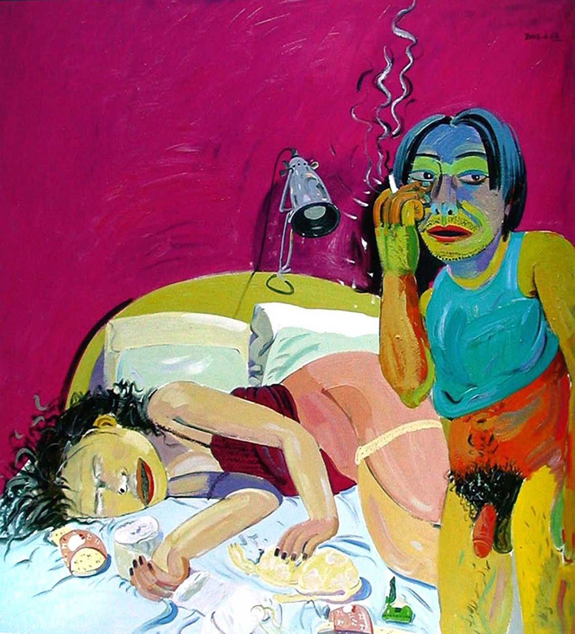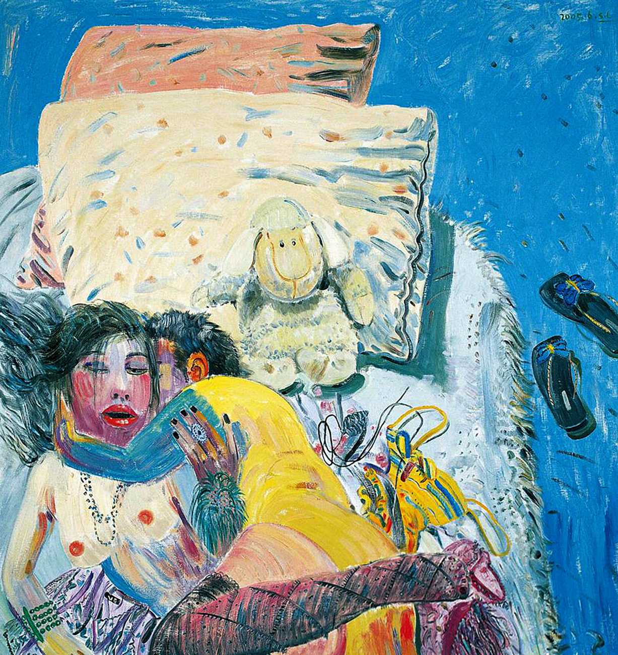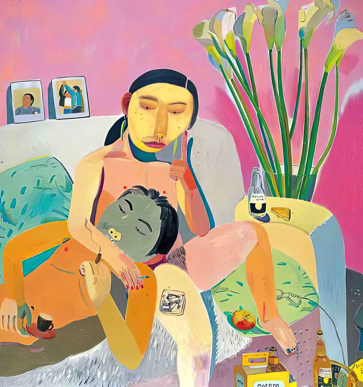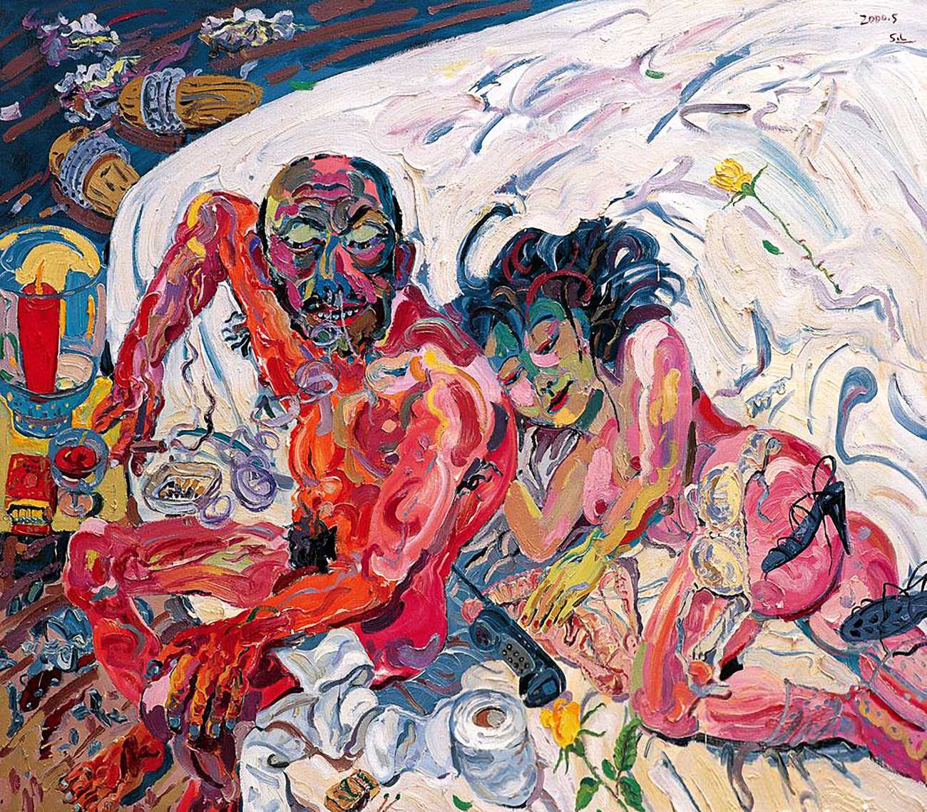 Shen Ling graduated from high school to Central Academy of Fine Arts in Beijing in 1985, and in 1989 received her bachelor’s degree from the Oil Painting Department of Central Academy of Fine Arts, where she now works. Her first solo exhibition was in 1988 at the National Art Museum of China in Beijing, and recent exhibitions include ‘Intensity of Solidity’ at the Tang Contemporary Art, Hong Kong, in 2019, and ‘Empty Flowers’ at Tang Contemporary Art in Beijing in 2022. She sometimes exhibits with her partner, Wang Yuping, who is a more traditional artist.