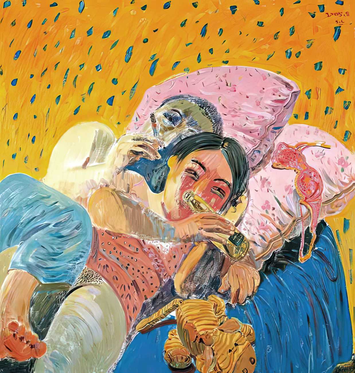 The Chinese artist Shen Ling (申玲) grew up in a small coastal town in Liaoning province in eastern China. As she explains, ‘Although we were poor at that time, our home was always full of laughter. My mother loved to sing. She would always sing when she was cooking, washing dishes, or doing laundry. My father was versatile and could play many musical instruments. It was he who taught me to paint – I started to create art very early, and have been painting ever since.’