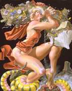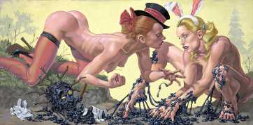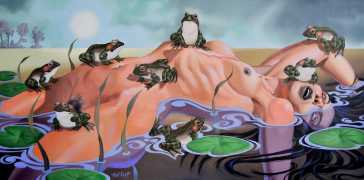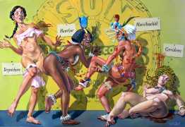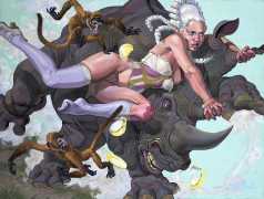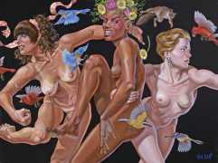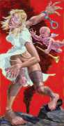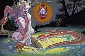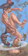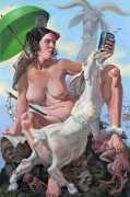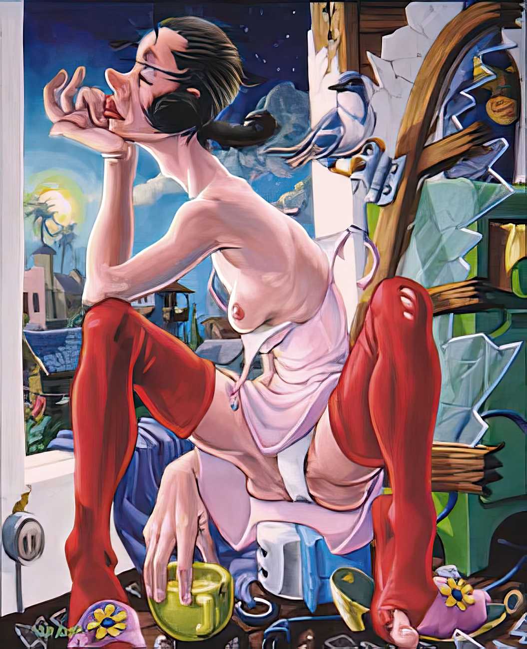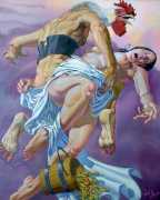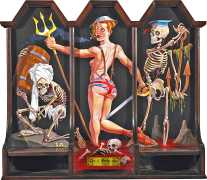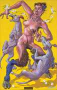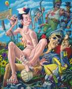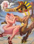 Gradually shifting his focus to fine art, he began to create heroic figurative works featuring religious, folk, pop culture, and mythical heroes. His Olive Oyl series, based on cartoon sailor Popeye’s headstrong girlfriend, captured much attention as he documented her imagined life as a waterfront floozy.