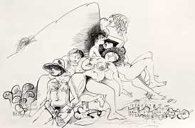 Throughout his prolific career Walter Battiss worked with a range of media – painting, printmaking, calligraphy, and writing – and exhibited widely both locally and internationally. He was awarded numerous honours, including the South African Akademie’s Medal of Honour for painting in 1965.
