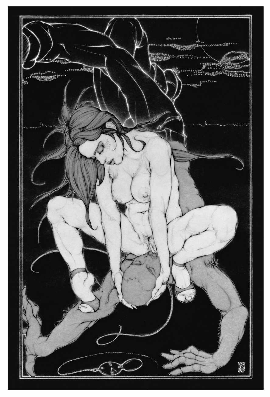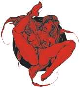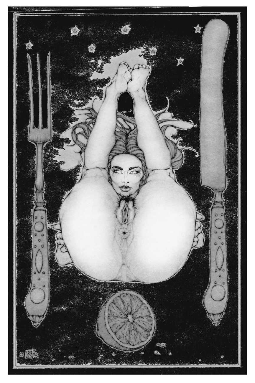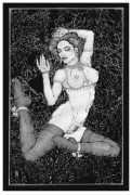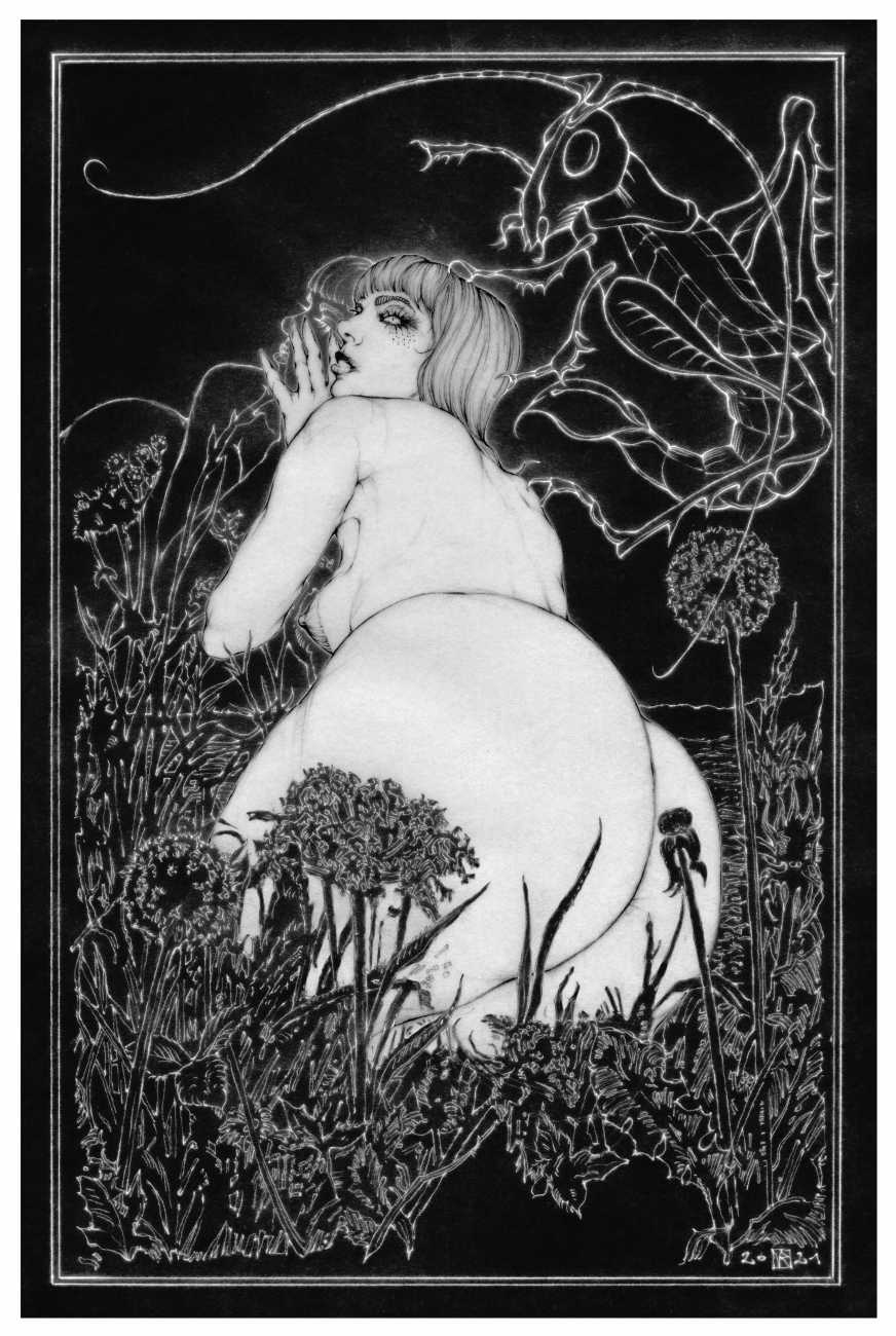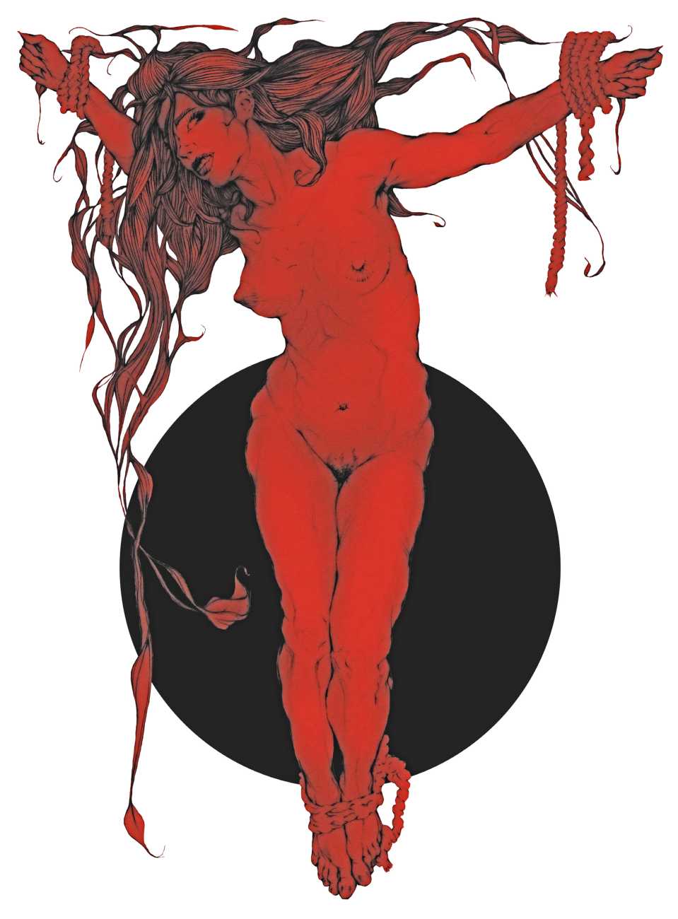 As well as the main text by Atanes, there are also text contributions by Madison Young, Xóchil Schülz, Annemarie Ryders, Hector Domaine and Carmine d’Acquaro. The van Rijn illustrations alternate between monochrome and vivid scarlet and black, another bold new experiment in erotic illustration.