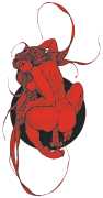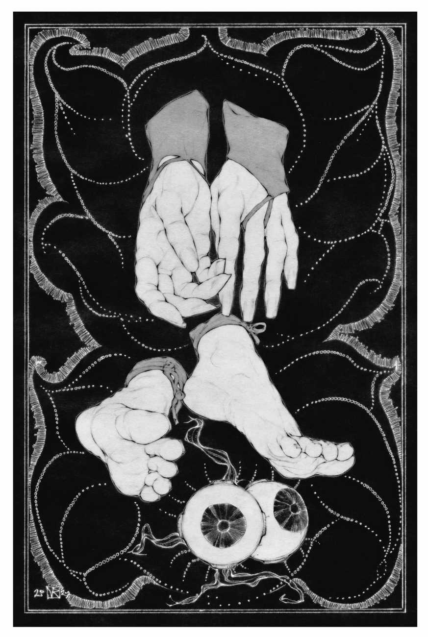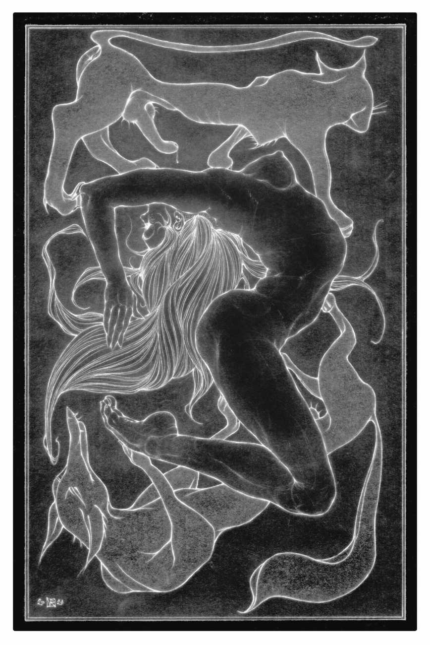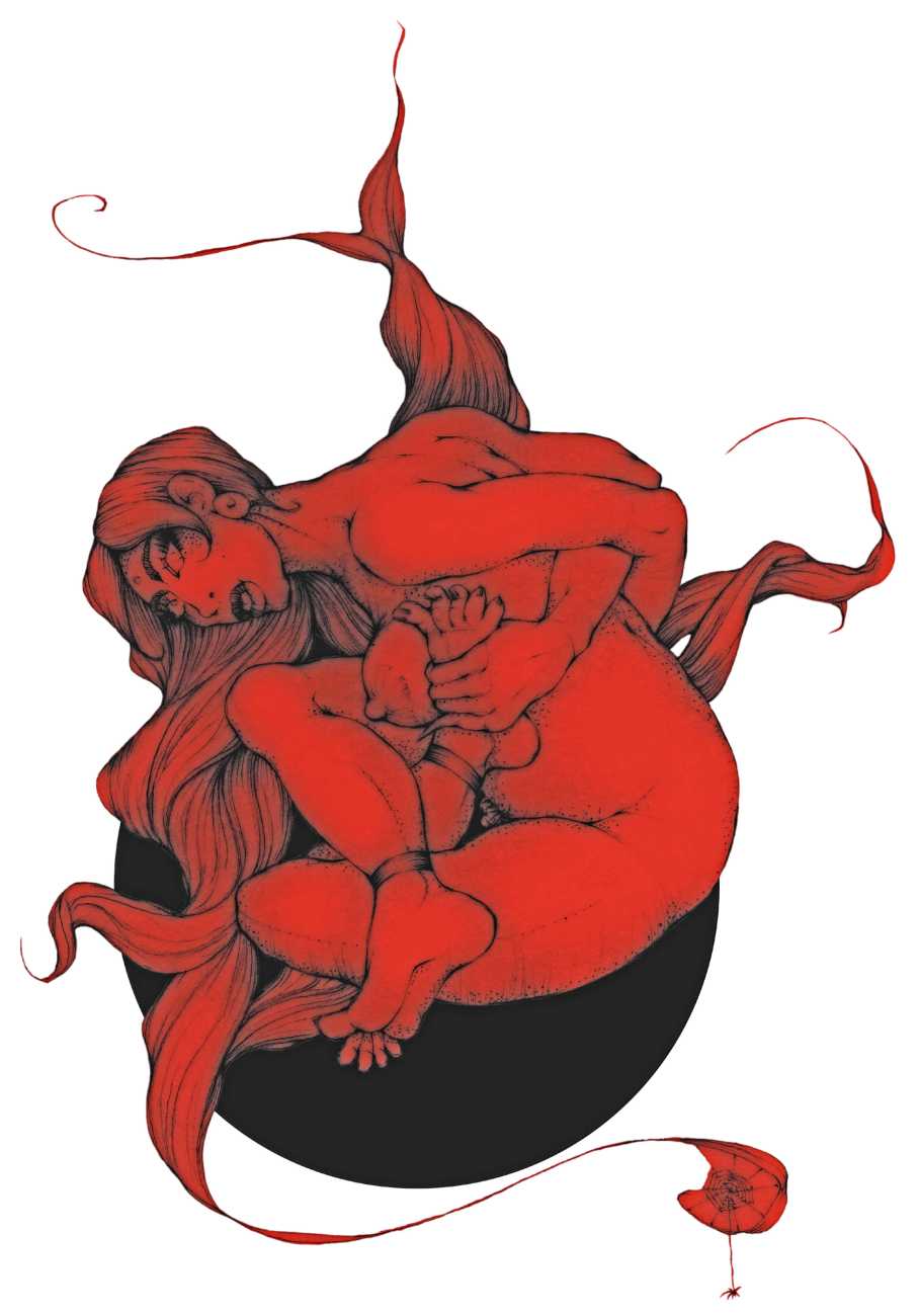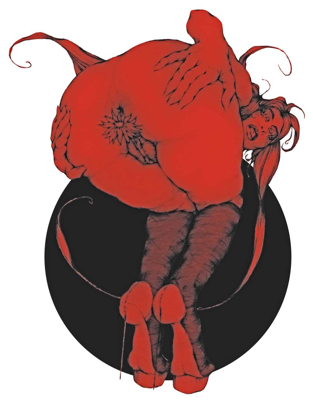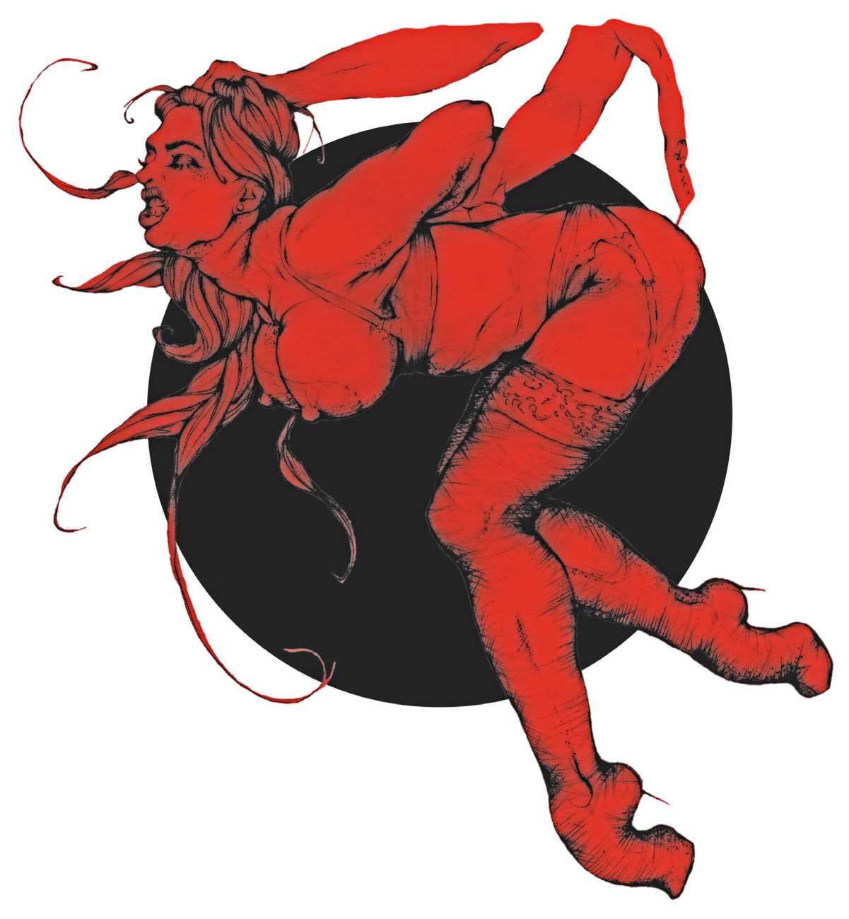As well as the main text by Atanes, there are also text contributions by Madison Young, Xóchil Schülz, Annemarie Ryders, Hector Domaine and Carmine d’Acquaro. The van Rijn illustrations alternate between monochrome and vivid scarlet and black, another bold new experiment in erotic illustration.