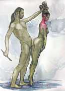Though it has a common theme of sexual encounter, Anca Georgescu skilfully employs a variety of artistic techniques in her work, including printmaking and even stained glass. She is also an accomplished sculptor.