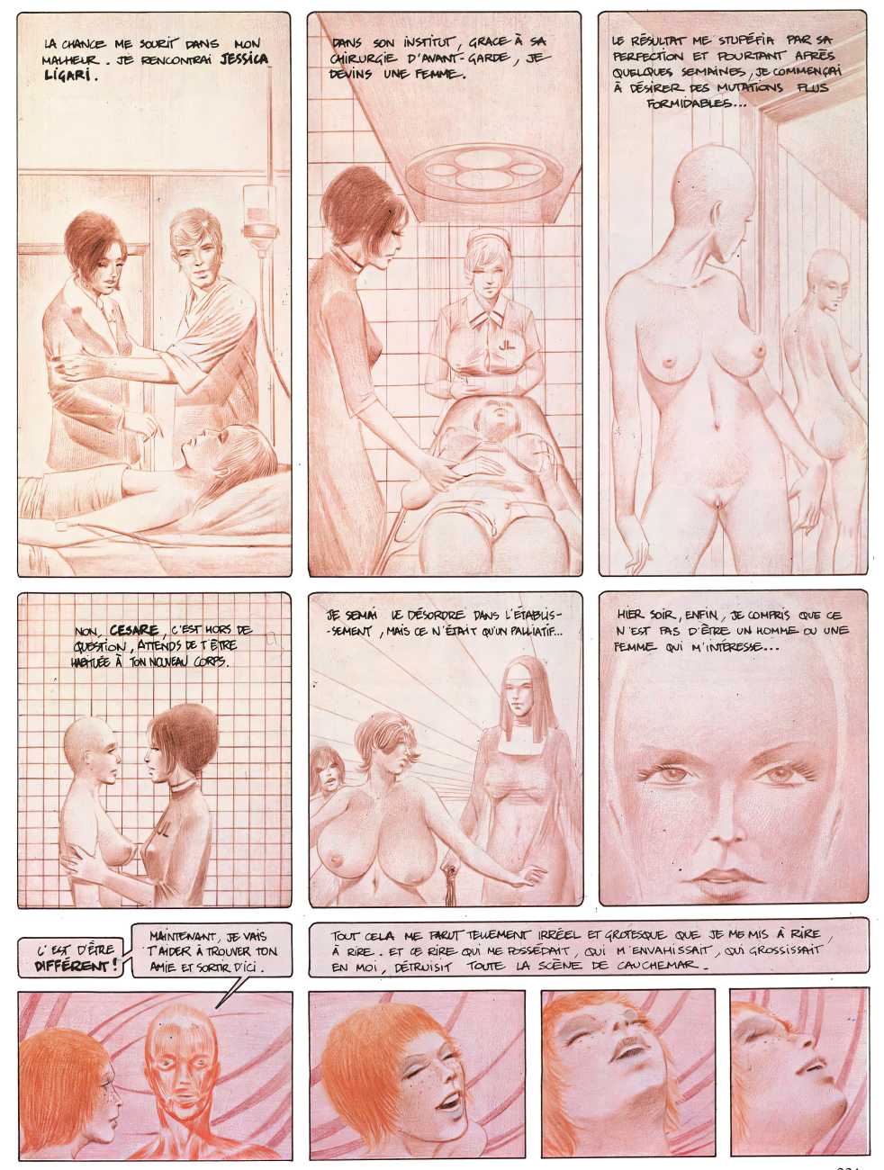 Les chefs-d'oeuvre de la bande dessinée érotique (The Masterpieces of Erotic Comics) praises Jessica Ligari’s ‘astonishing graphic technique using coloured pencils, rhythmic and sequential cutting, creating a universe of a disturbing cold beauty, a burning and growing eroticism. Within these mosaics of images hides a strange lovesickness, bordering on sadism but with sufficient delirium not to become a bloodthirsty love, engagingly fantastic rather than grotesquely perverse.’
