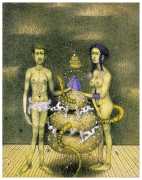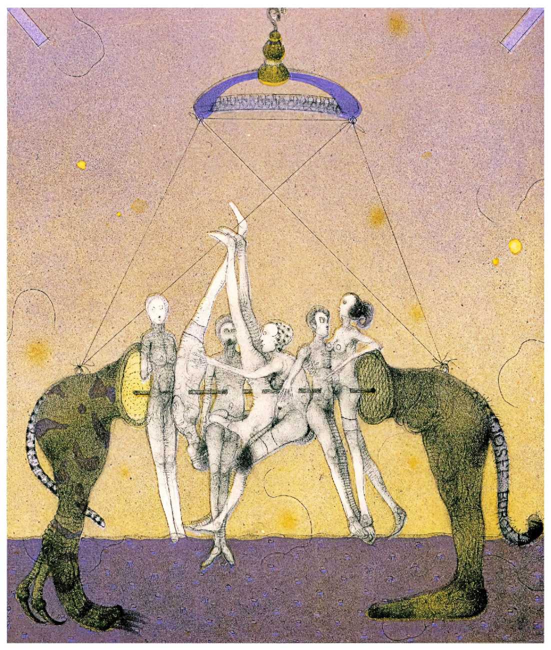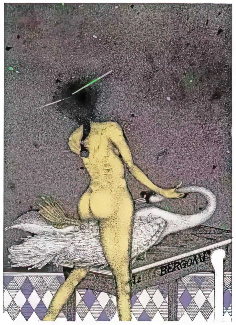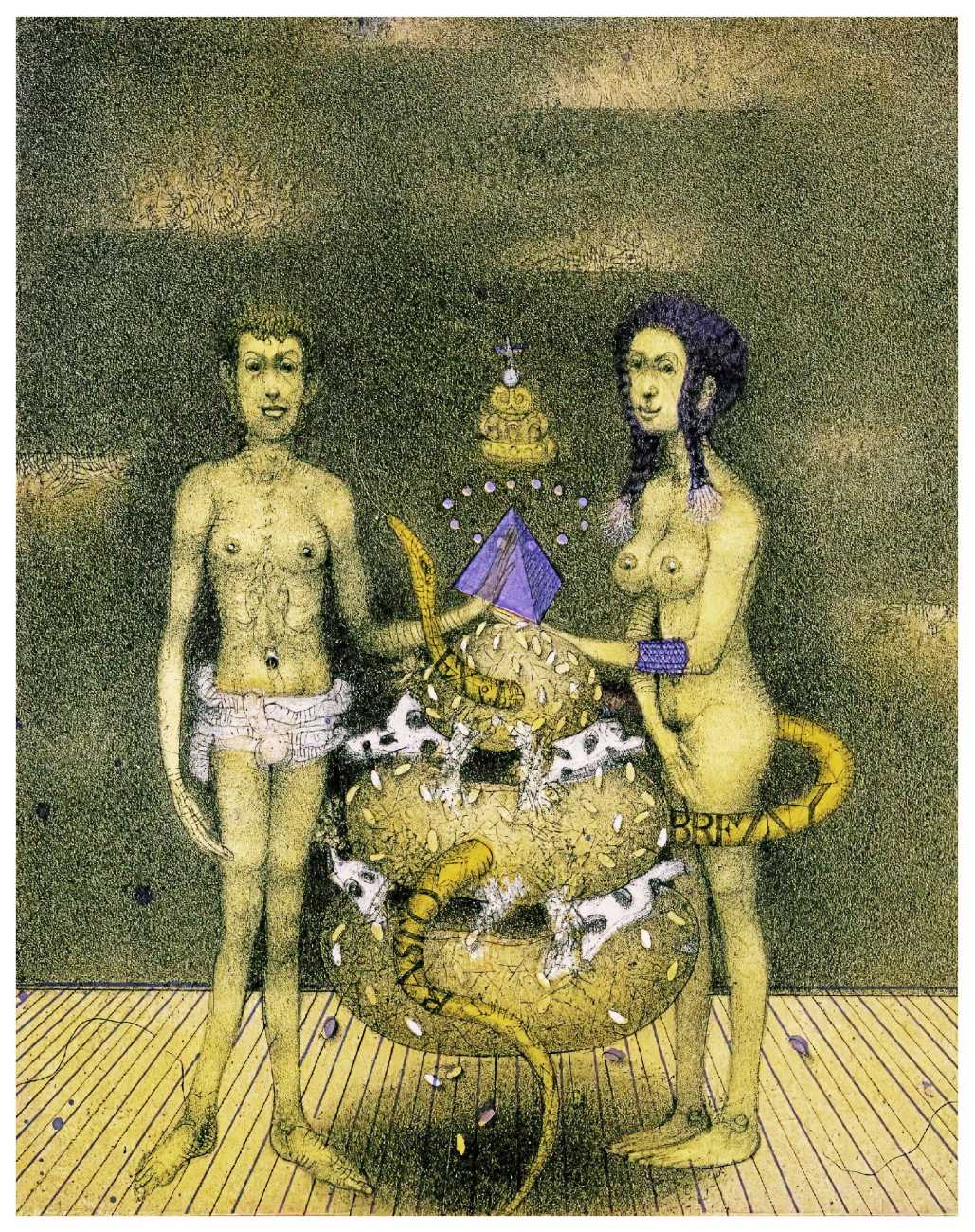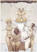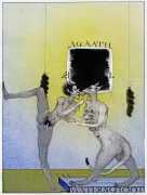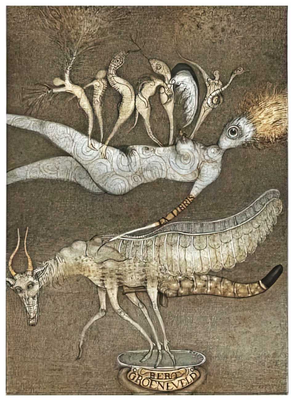 Like many eastern European artists, one of Vladimír Gažovič’s specialities is the ex libris or bookplate, which in Gažovič’s talented hands becomes a colourful jewel of miniature detail and imagination. Each of these small masterpieces displays a carefully thought out repertoire of characters and interactions, clearly interpreting the client’s brief and particular interests. Most include some witty and pertinent erotic element.