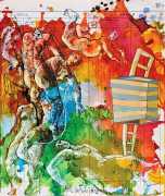 As we shall see from his responses to interview questions below, Thomas Gatzemeier has always been something of a rebel, a tester of boundaries, and this is nowhere more true than his lifelong experimentation with mixing styles, subjects, and media. As with his paintings and drawings, we show here a generous selection of his mixed media artworks, showing how he uses found base material including music scores, leaves from nineteenth century encyclopedias, and old ledger books, and embellishes them with ink and colour to produce throught-provoking combinations of figures and history.