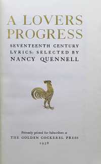 In 1938 the Golden Cockerel Press, a private press in rural England which made handmade limited editions of classic works which were hand-set and the books printed on handmade paper, produced a volume of poetry titled A Lover’s Progress. Unlike many Golden Cockerel titles, which were known for the quality of their illustrations, this collection of erotic seventeenth century lyrics by John Donne, Robert Herrick, John Dryden and others, was not illustrated, which was a pity because the poems, chosen by Nancy Quennell, are some of the most graphic verses in the English language.