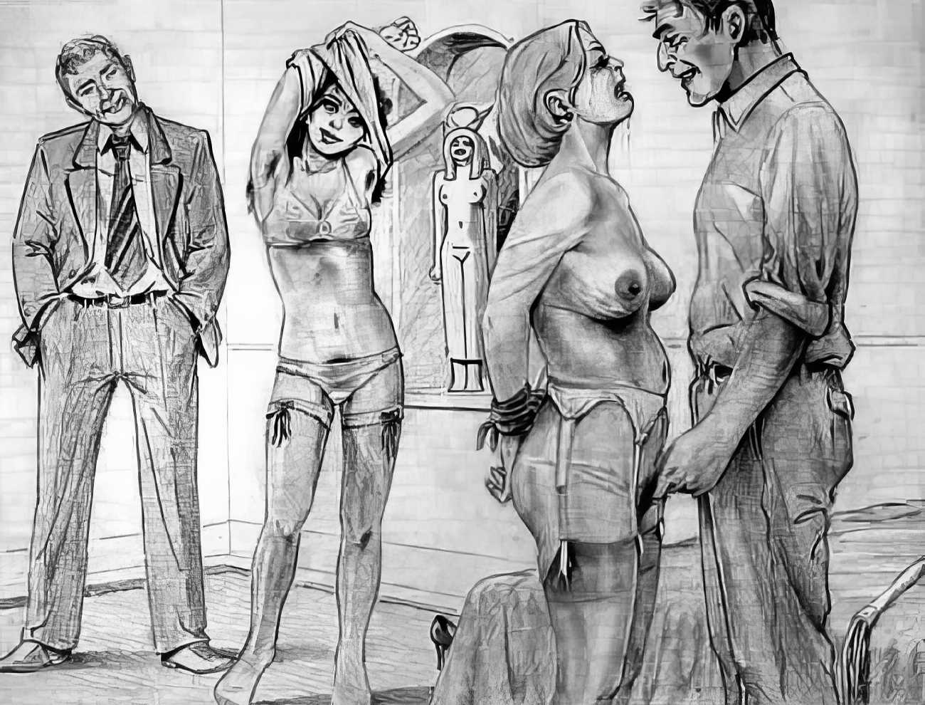 This is possibly the most appropriate place to include what Christophe Bier much later wrote about Farrel’s early life and experiences, which helps to explain why the artist was uniquely qualified to explore the depths of sado-masochistic humiliation. Here is a paraphrased extract from The Farrel Artbook: