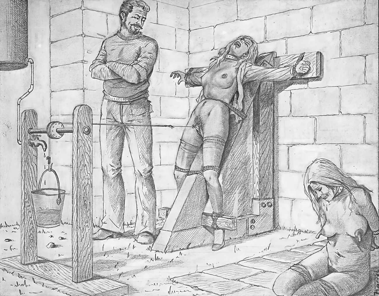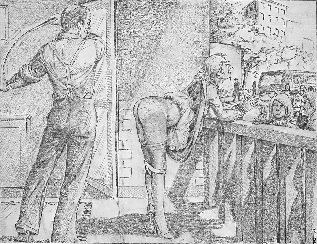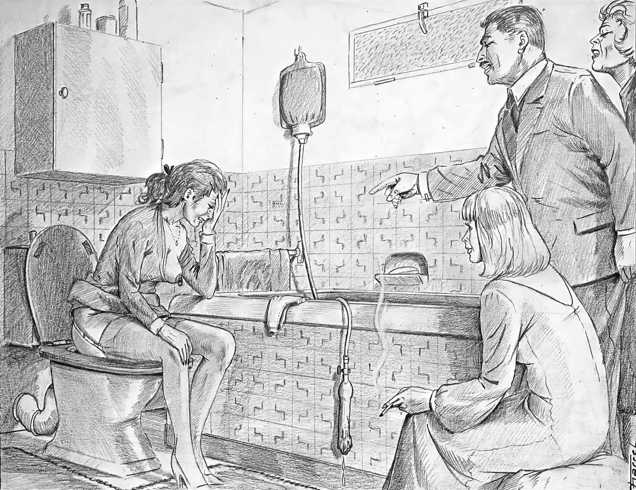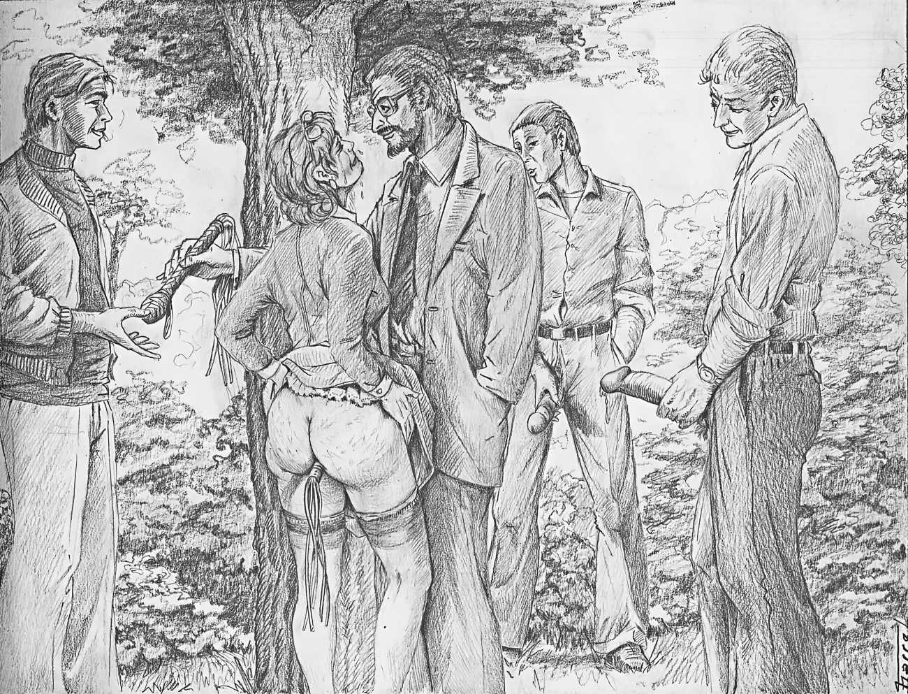 By the late 1970s Farrel had found his preferred style, detailed pencil drawings exploring extreme sado-masochism. But his is not the baroque setting of Sade’s castles, nunneries and dungeons, it is what Christophe Bier calls ‘The Formica Furniture’, the everyday settings of Farrel’s imaginings. In his conversation with Ayzad, Bier offers his understanding of the fascination of Farrel’s work: ‘The social criticism is inherently there, because Farrel is inspired only by what surrounds him. The characters look like the ordinary people he meets, his neighbours, his bosses. The settings are taken from direct experience. He doesn’t revel in fantasy or porno-chic. Farrel focuses on the world of the French middle classes. With his violent art he dismembers much of the niceness of the standard French social model. He likes to depict even the most violent erotic cruelty in a relatable way, in “normal” surroundings. We often see jubilant torturers but also placid voyeurs, all of them callous toward the pain they cause; they are the archetypal sadists. It all trivialises violence and makes it even more unbearable. In the texts accompanying some drawings we are struck by the joking tone of the dialogues. Sadism becomes almost banal.’