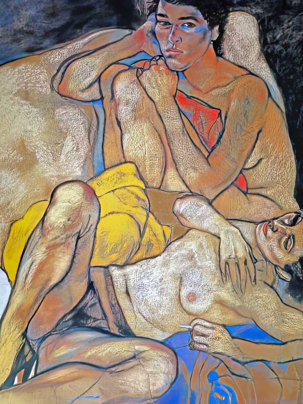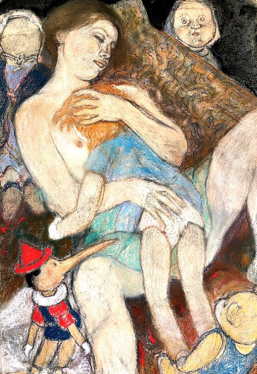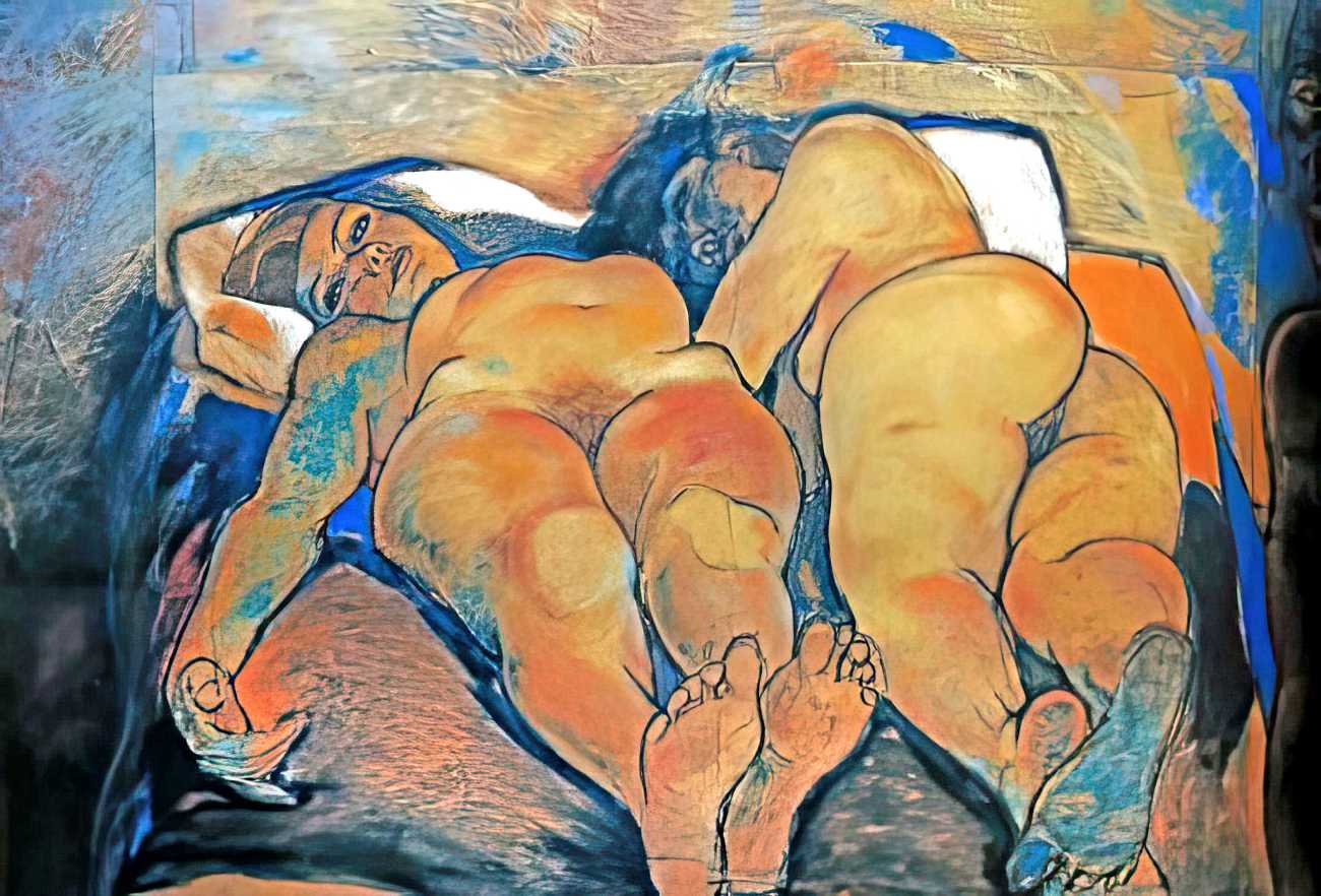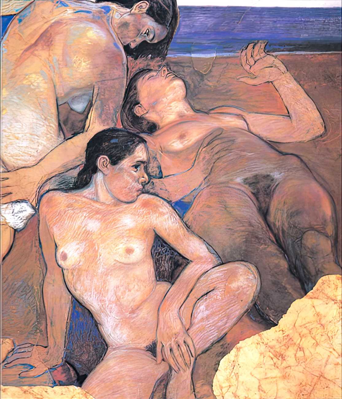 In 1991, when the Paris publisher Éditions Ramsay published a collection of Michael Bastow¹s pastels titled simply Michael Bastow: Pastels 1986–1991, this was the technique and subject matter that the artist was known for – technically accomplished, colourful, artistic studies of naked women in a style not a million kilometres from Dégas or Klimt. He sometimes included a self-portrait, to demonstrate that he had thought about the relationship between artist and subject, yet though skilled and eminently saleable Bastow was still playing things fairly conventionally and safe.