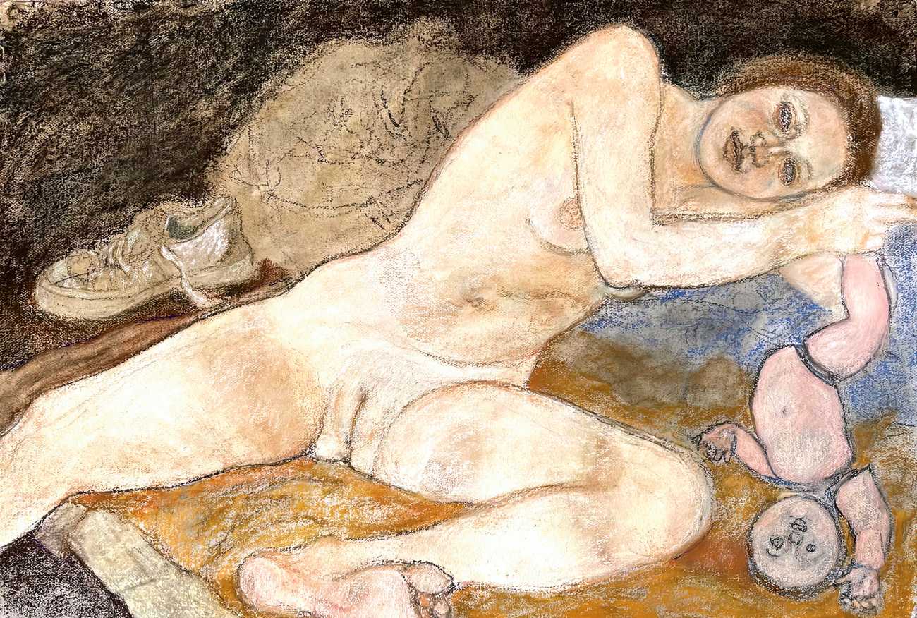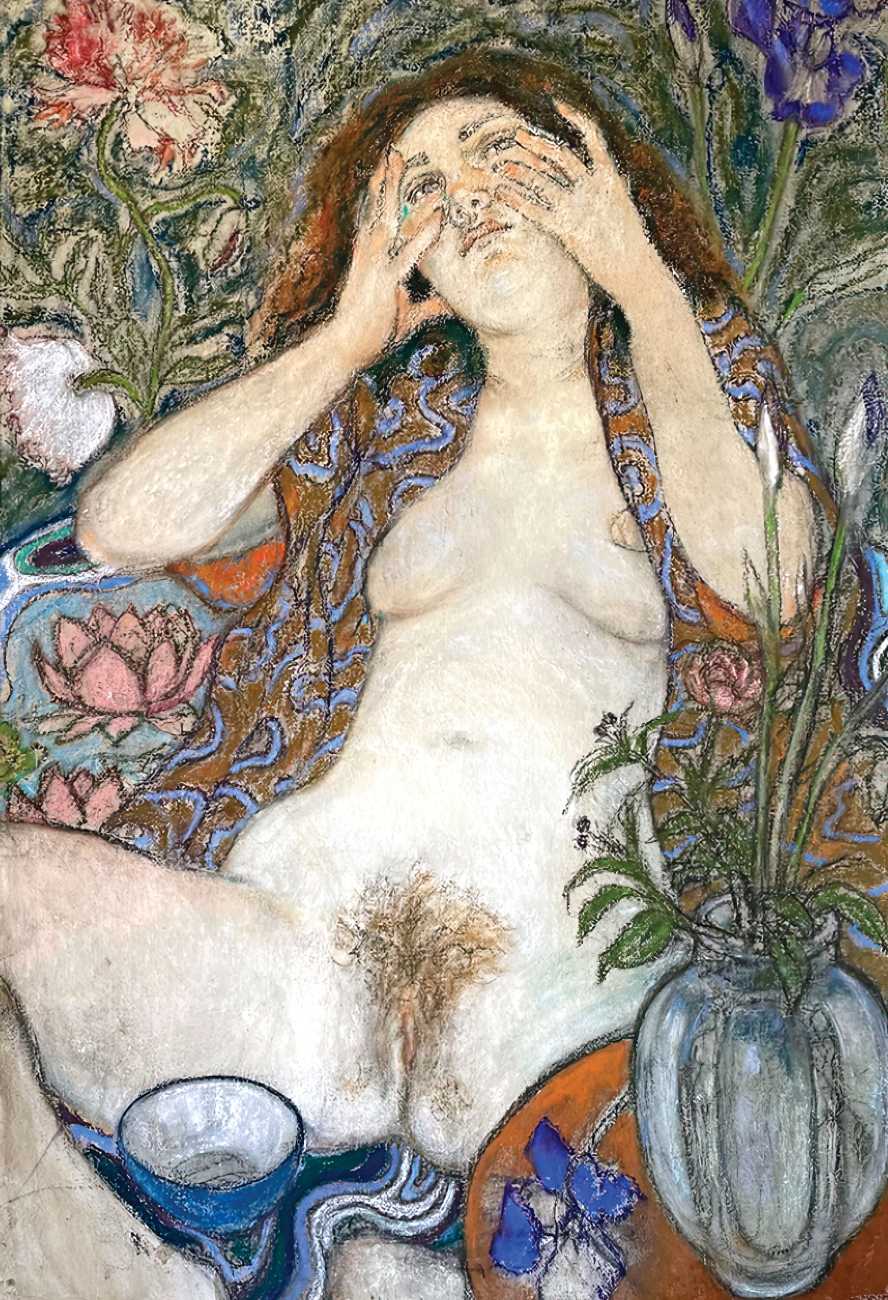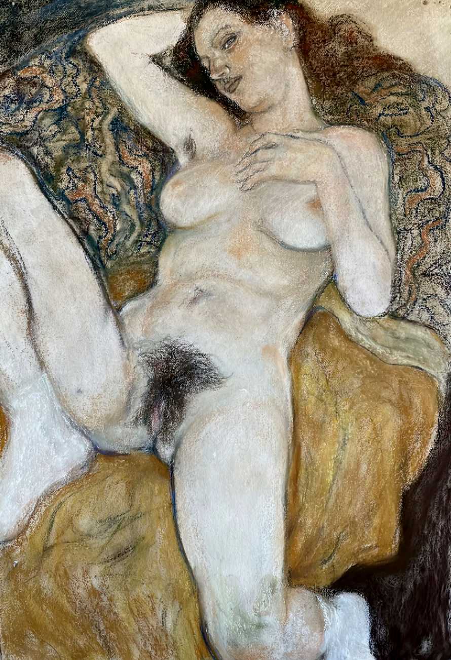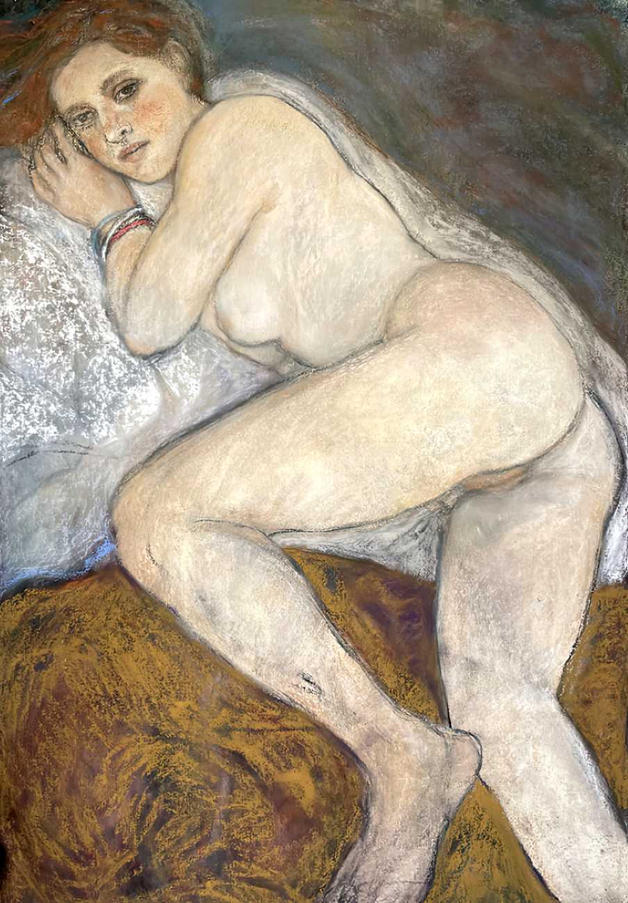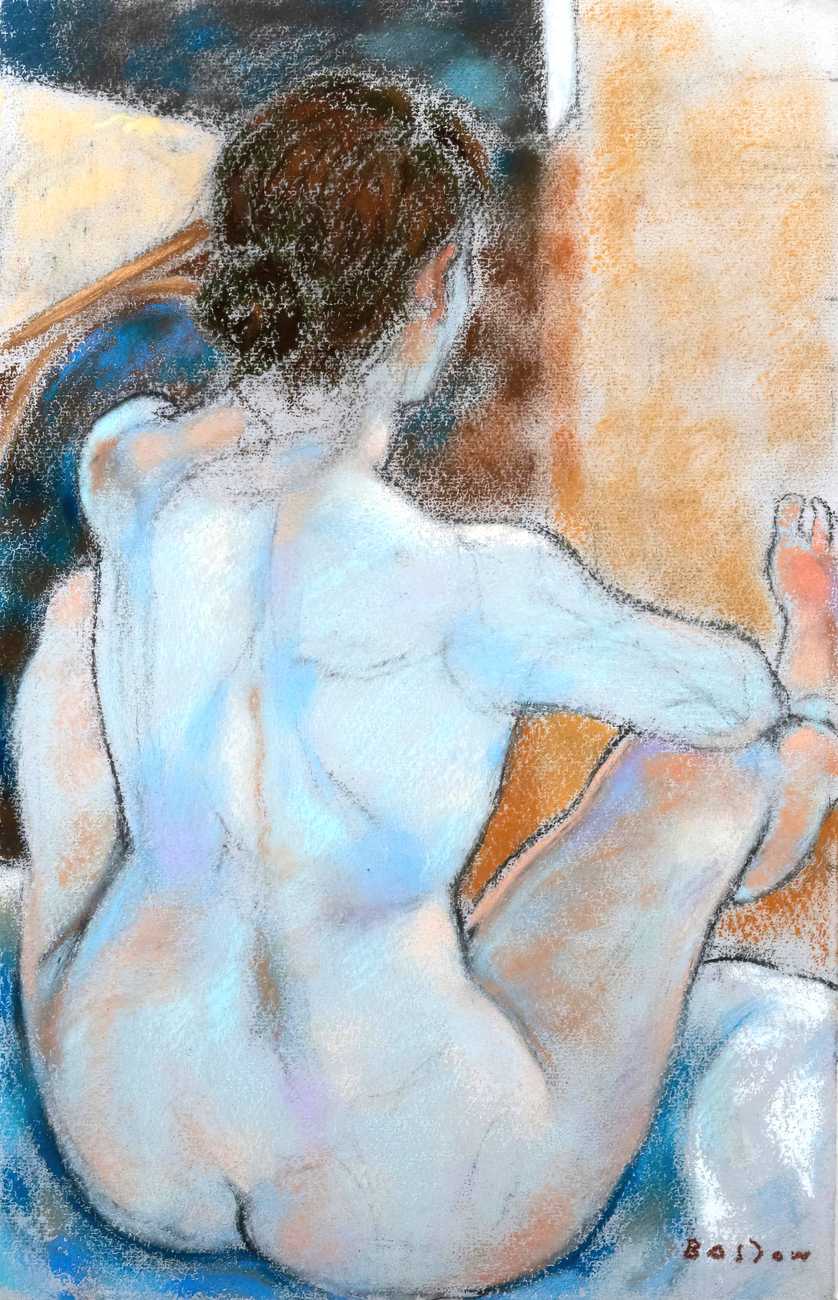 Michael Bastow’s pastel technique has been refined over the years, to the point of becoming prodigiously complex, but his mastery of execution never distracts him from the initial wonder of discovery of the naked female human body. And he has found his own way of engaging with it. What in the hands of many painters is a certain power over the model’s body, is rather different in Bastow’s work. He ceases to be a privileged voyeur, an impassive onlooker, a stubborn creator obsessed with creating a masterpiece. In many ways he is the eternal loser in the close combat he engages in with his subjects. The imaginary space where he believed he had imprisoned them also sucks him in. They have plenty of time to take revenge, to punish him for having looked at them.