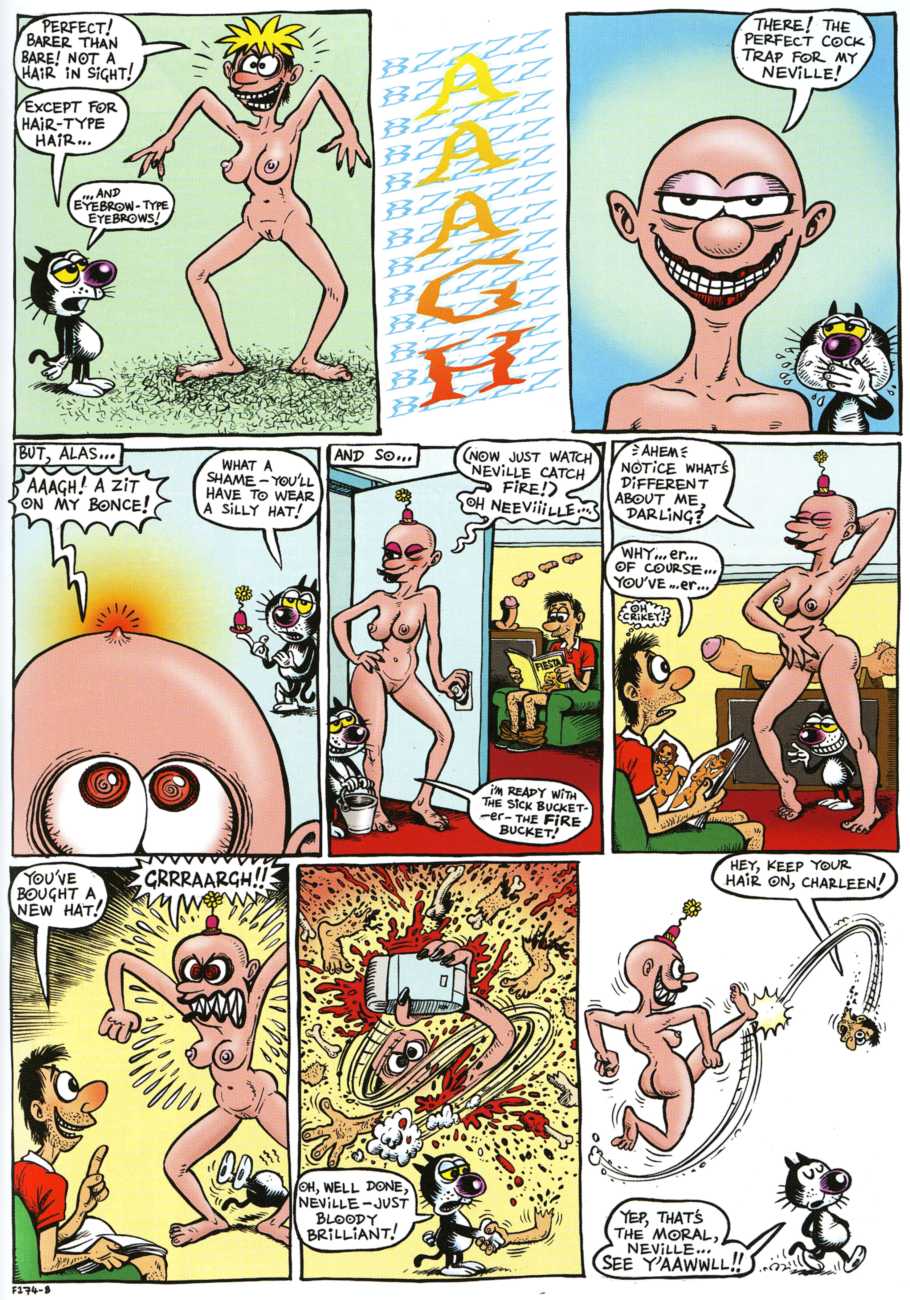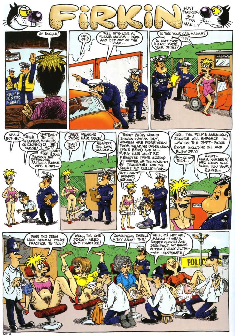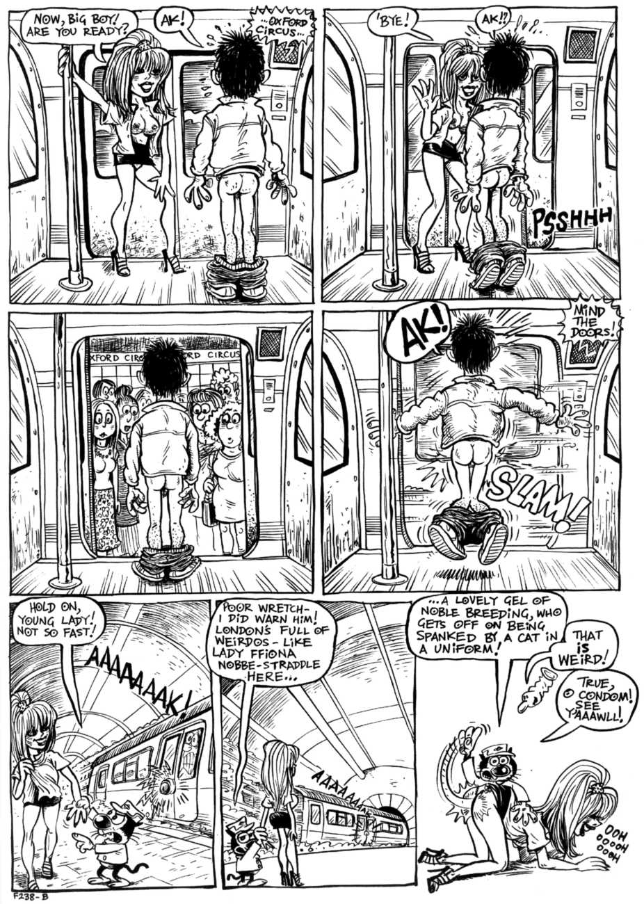 Hunt Emerson’s Firkin is a cat who, for nearly forty years in the pages of the UK-based Fiesta magazine, offered a humorous, anarchic, no-holds-barred commentary on the weirdness of human sexuality in all its tastelessness. Firkin’s adventures often involved absurd situations, satirical takes on sex and relationships, and playful jabs at societal norms. The strip blends traditional cartooning with adult content, risqué and irreverent. Firkin became one of Emerson's best-known characters, and the strip contributed to his reputation as one of the UK’s top underground cartoonists.