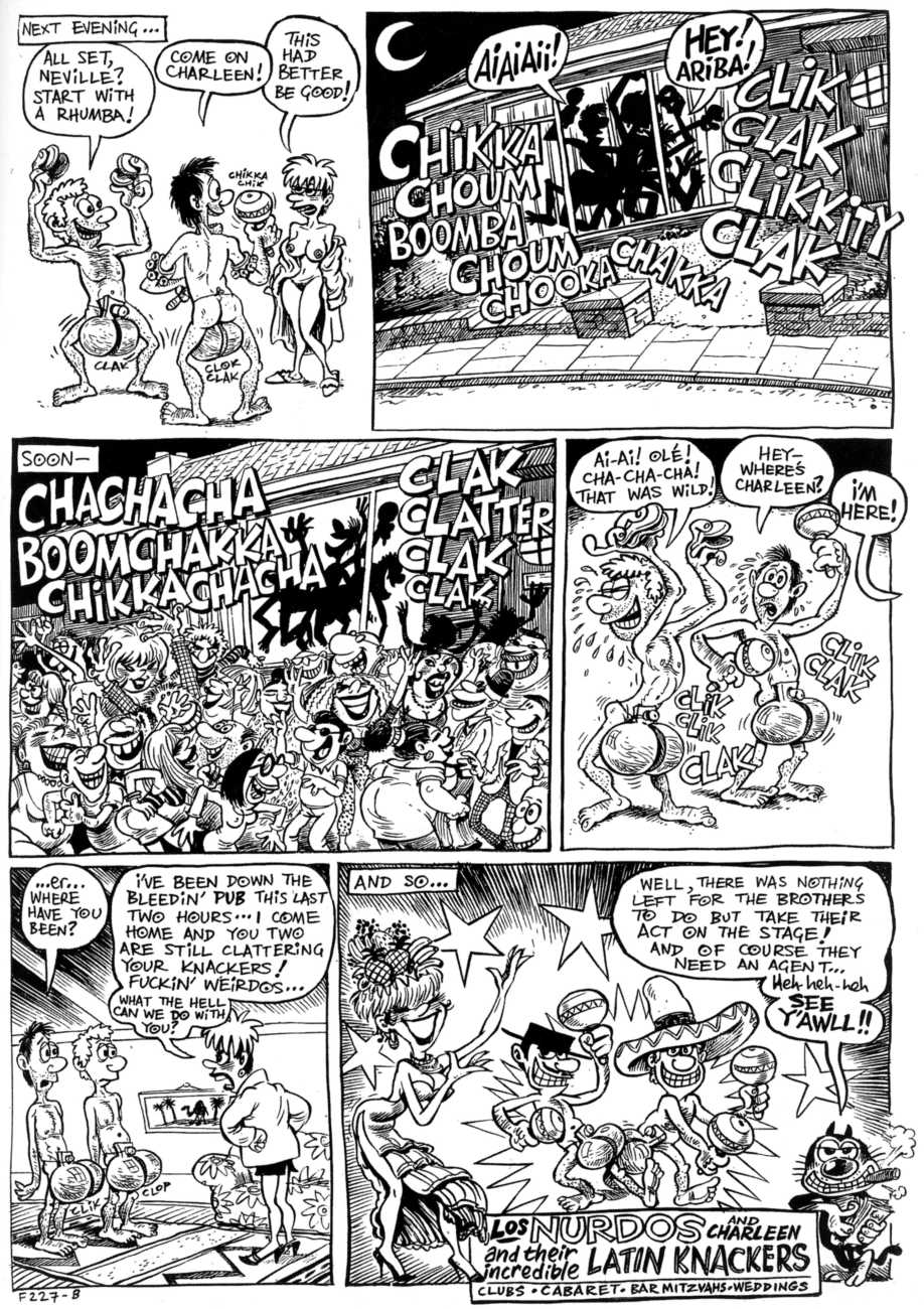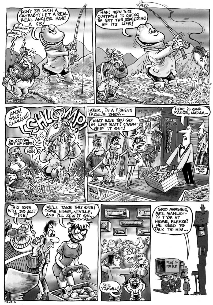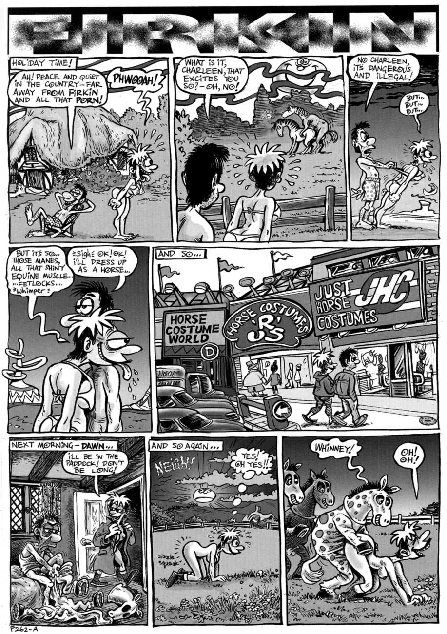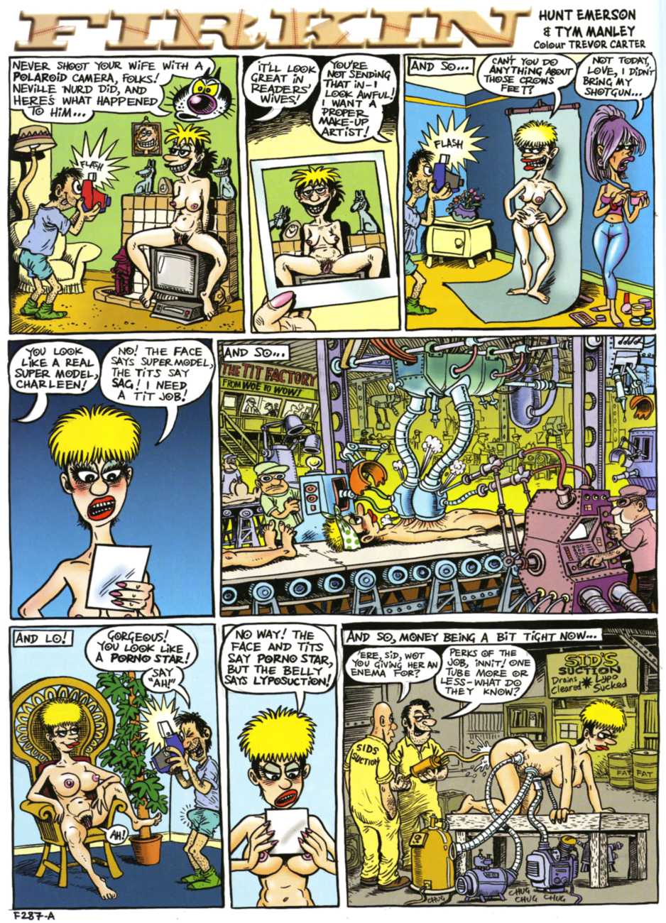 One of the great things about Firkin is that sex is generally so unglamorous in it. I go back and read them and I find myself roaring with laughter to be honest. I don’t know how Tym Manly managed to write them all, all those years. Tym was originally an editor of the magazine, but that was back in about 1968. He was a freelance writer for most of his life. He edited a mountain biking magazine and somehow or other he found himself writing Firkin. He doesn’t write any other comics. But just as I’ve done all those years, forty years of them, he was writing them. Incredible. I mean drawing them is basically sitting down and getting on with it. But writing them you have to come up with the ideas as well. God help us.