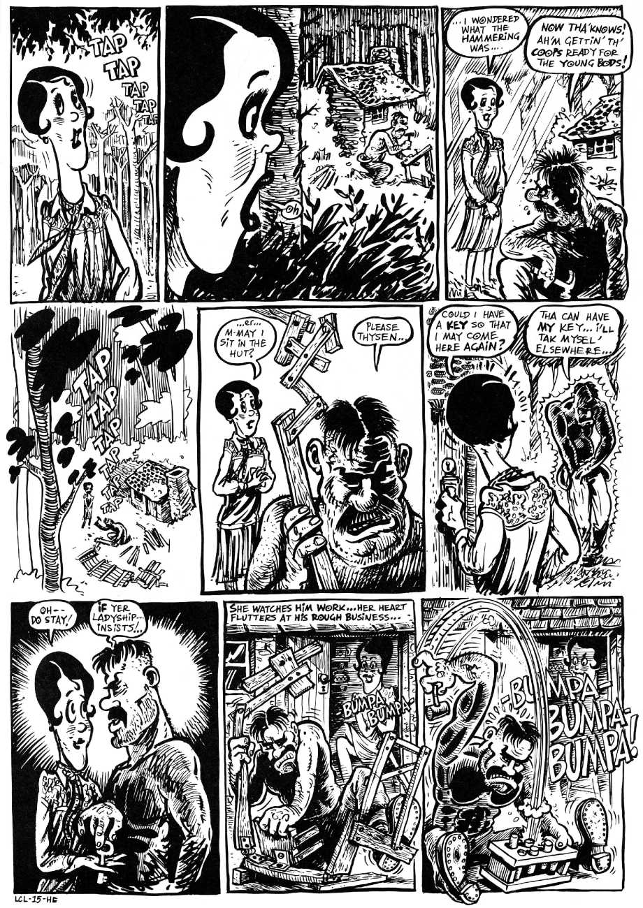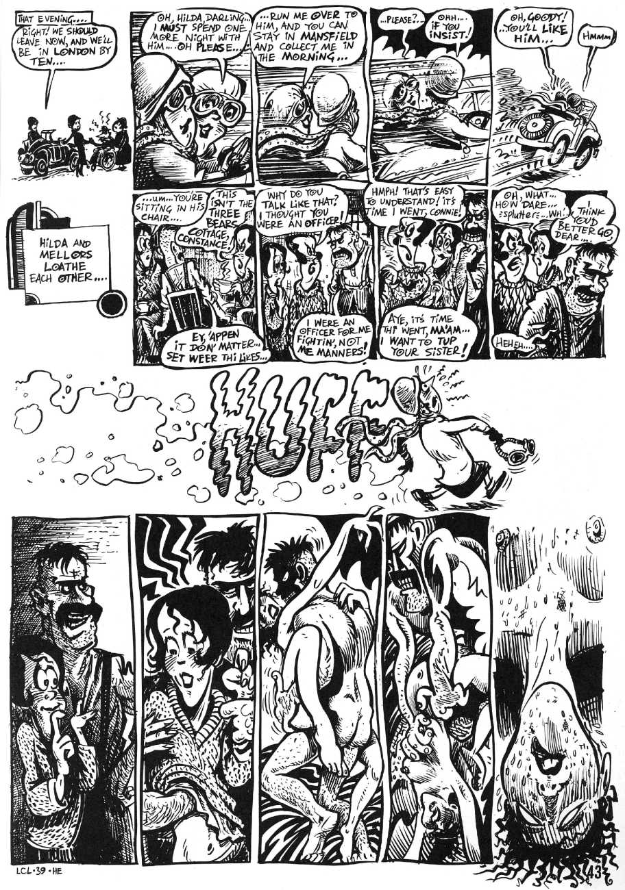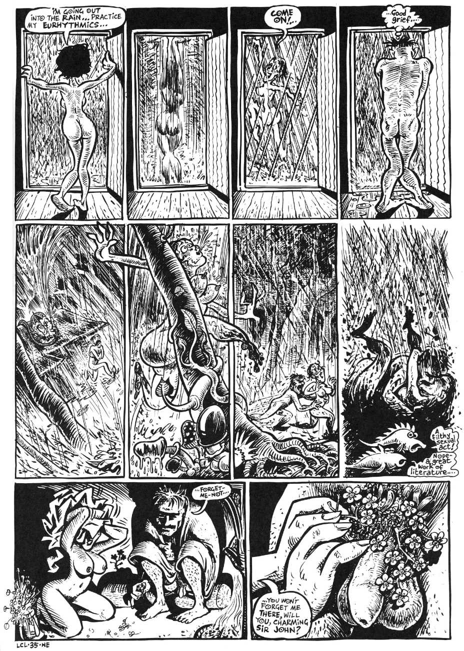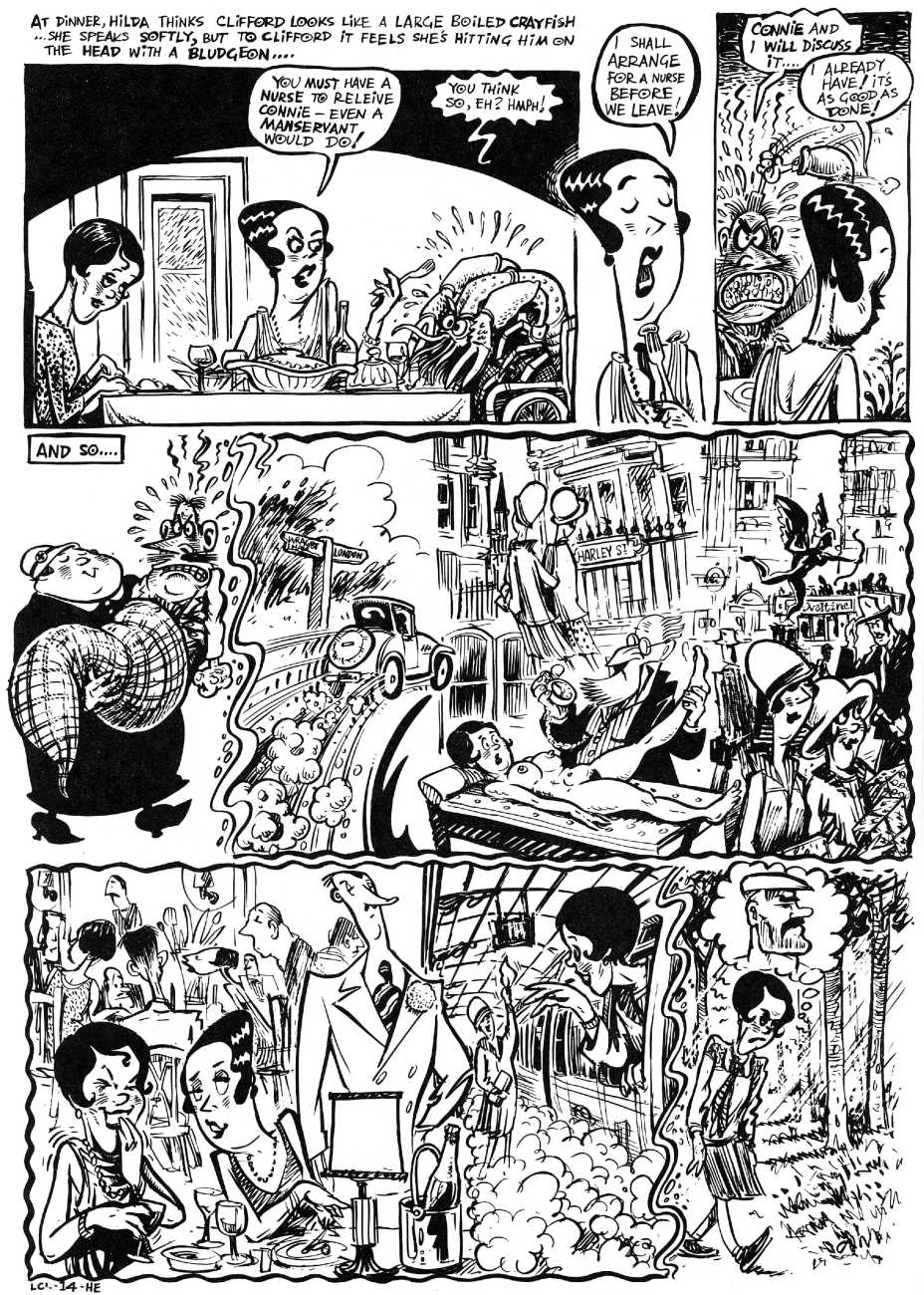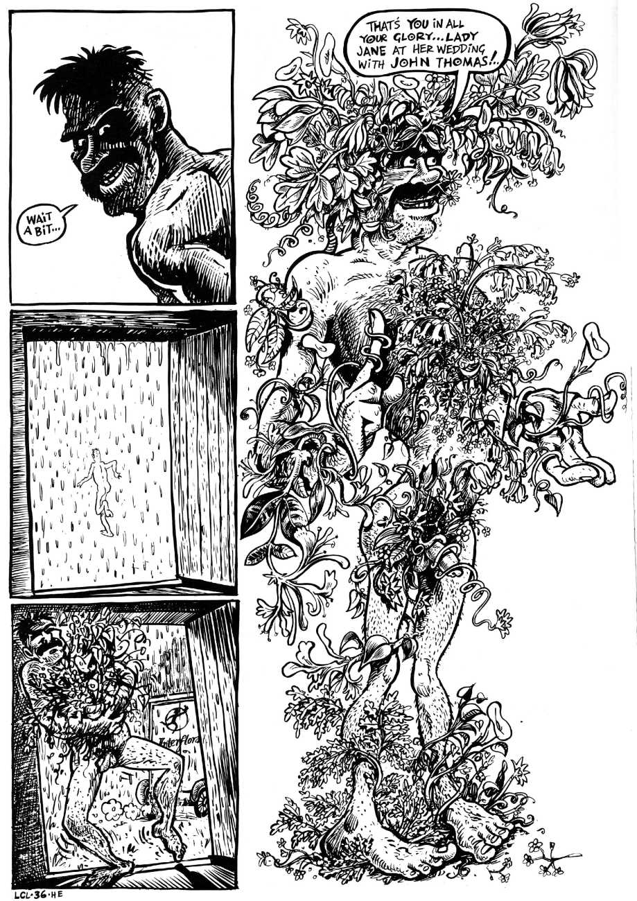 Emerson’s long association with Knockabout Comics resulted in some of the best adaptations of classic narratives in the history of comic books, producing such wonders as Dante’s Inferno and the three volume Bloke’s Progress, based on the works of John Ruskin. His witty and audacious adaptation of Lady Chatterley, however, stands out as the pinnacle of the collaboration, gaining widespread attention and positive feedback.