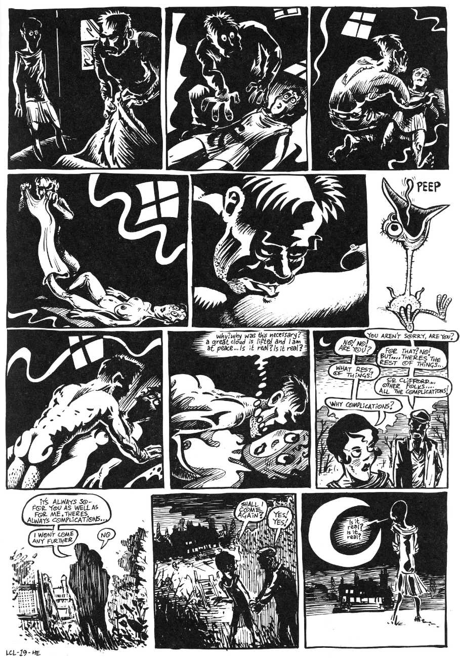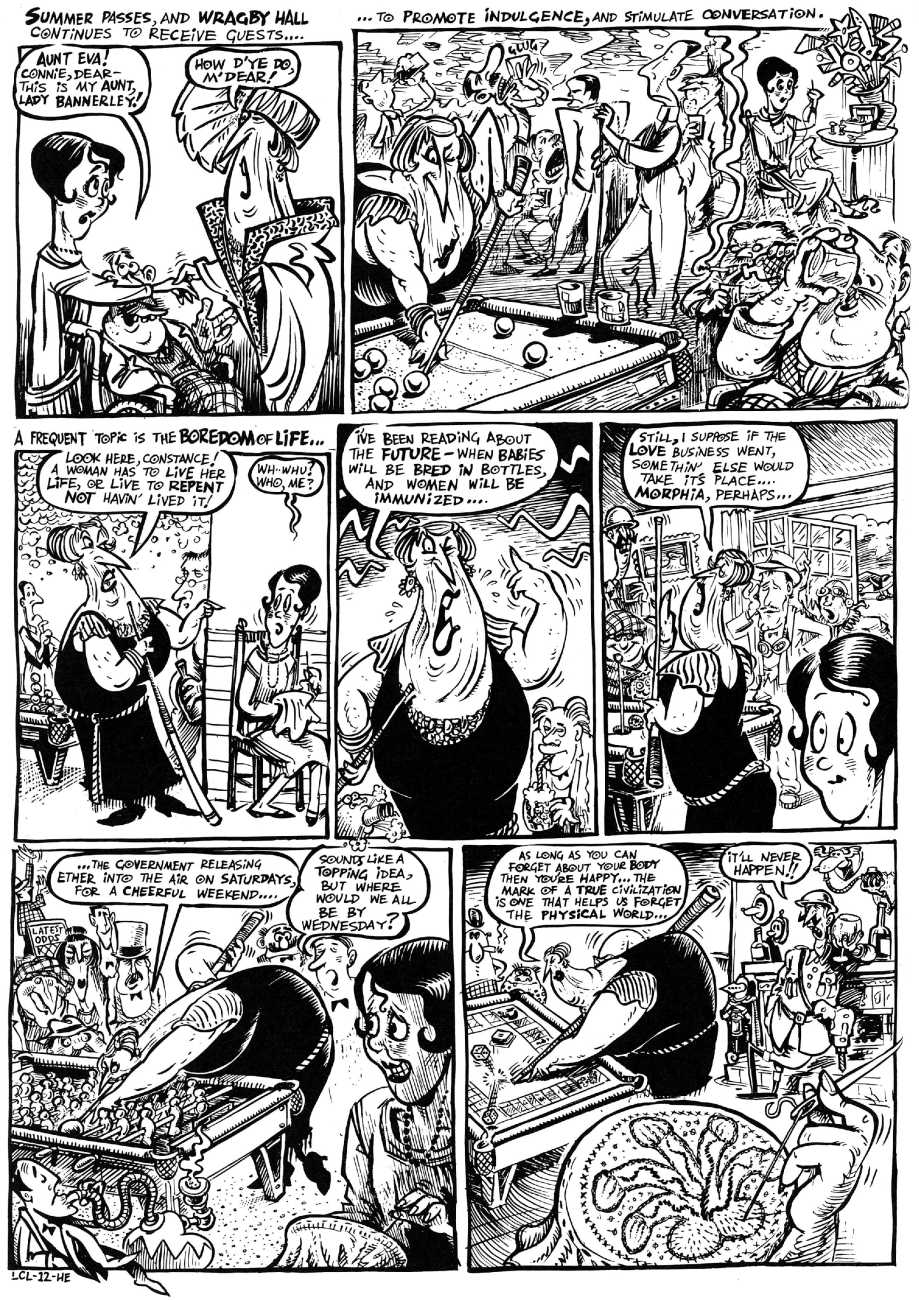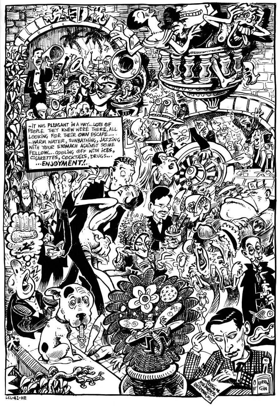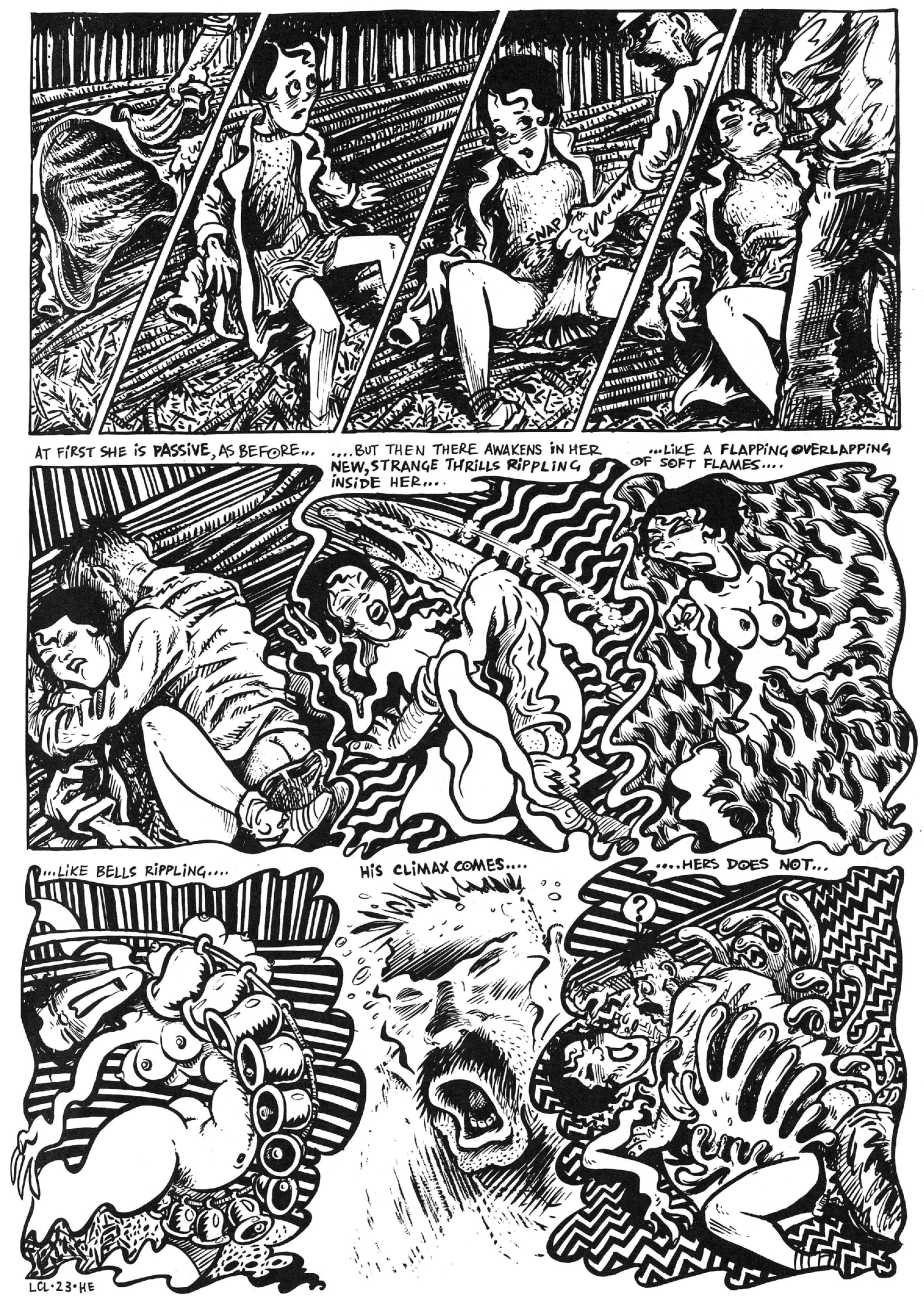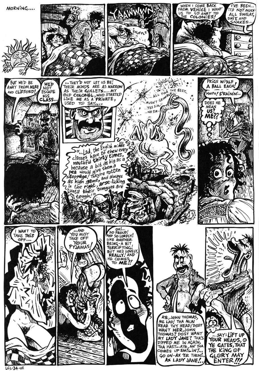 Emerson’s long association with Knockabout Comics resulted in some of the best adaptations of classic narratives in the history of comic books, producing such wonders as Dante’s Inferno and the three volume Bloke’s Progress, based on the works of John Ruskin. His witty and audacious adaptation of Lady Chatterley, however, stands out as the pinnacle of the collaboration, gaining widespread attention and positive feedback.