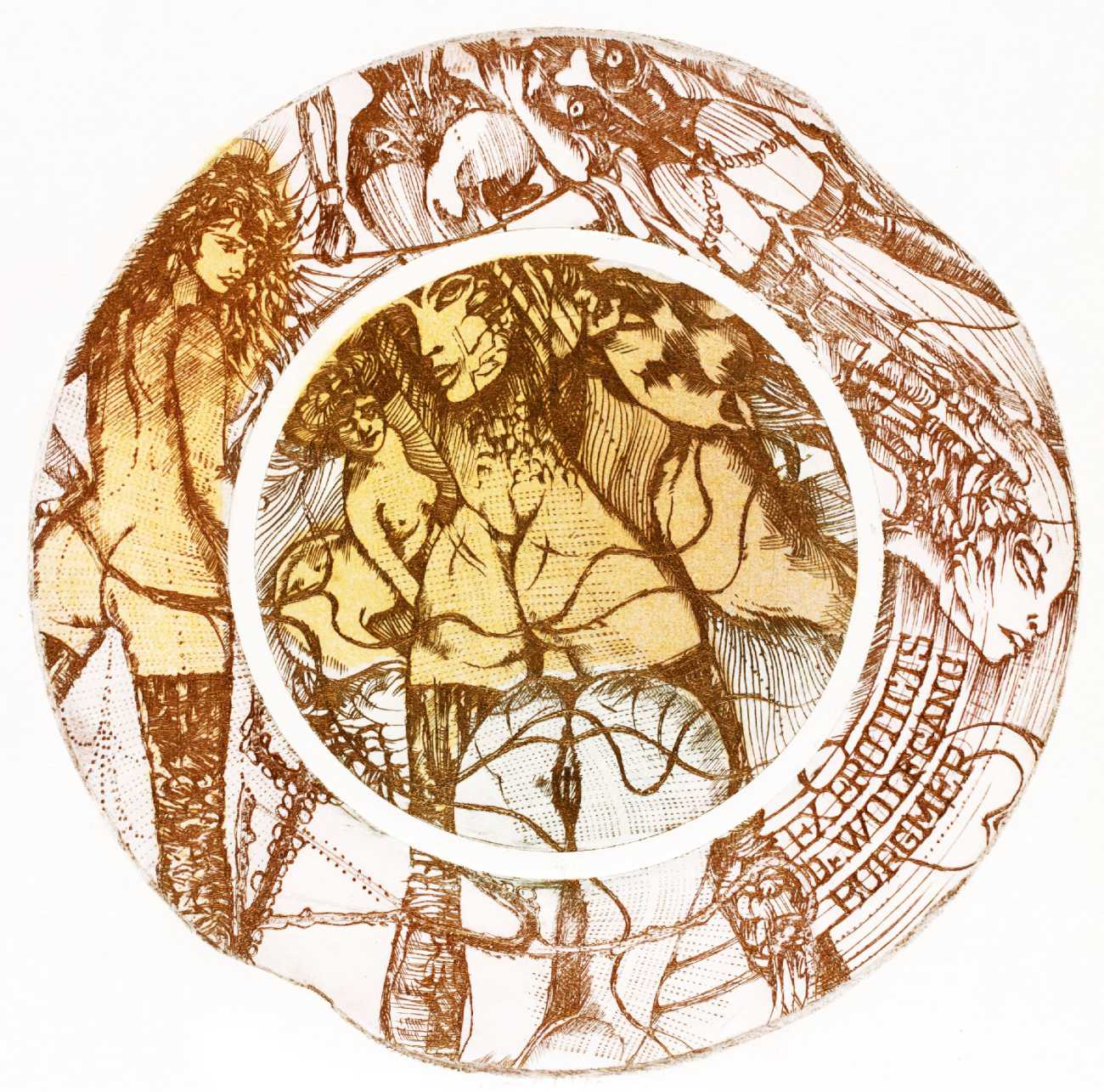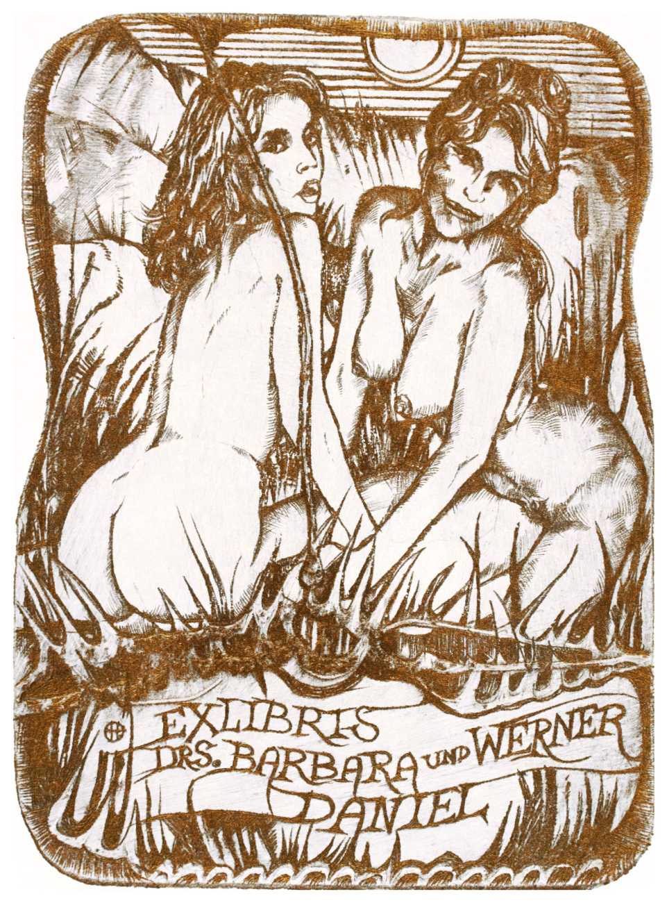 In recent years there has been a definite trend towards erotic subjects for bookplates, partly a throwback to the 1920s and 30s and partly to explore the potential of engraving techniques; it seems a pity that the high-quality results do not extend to more book illustration.