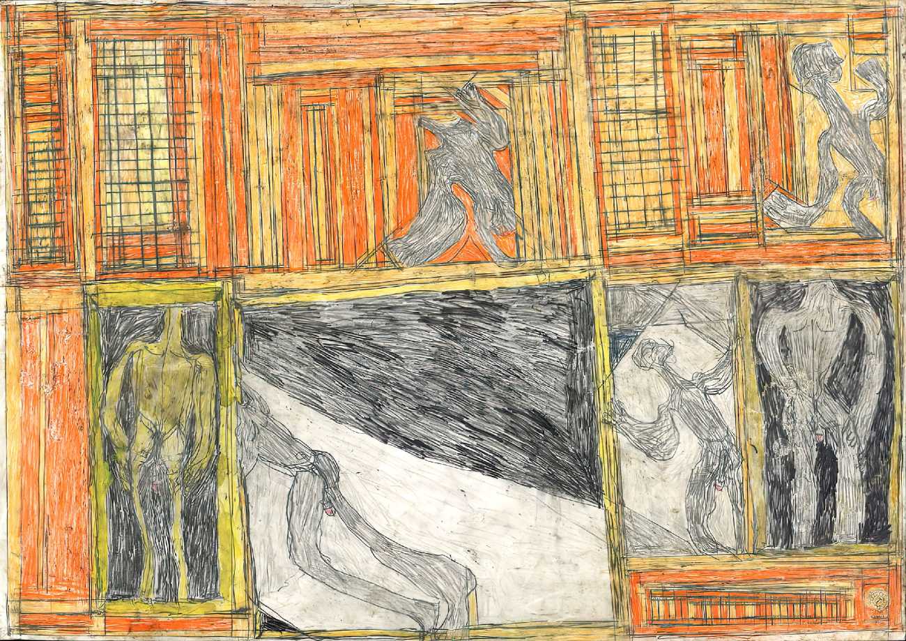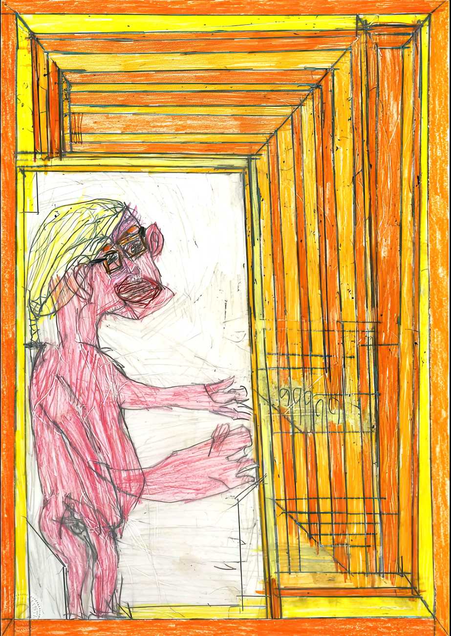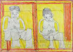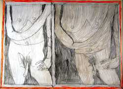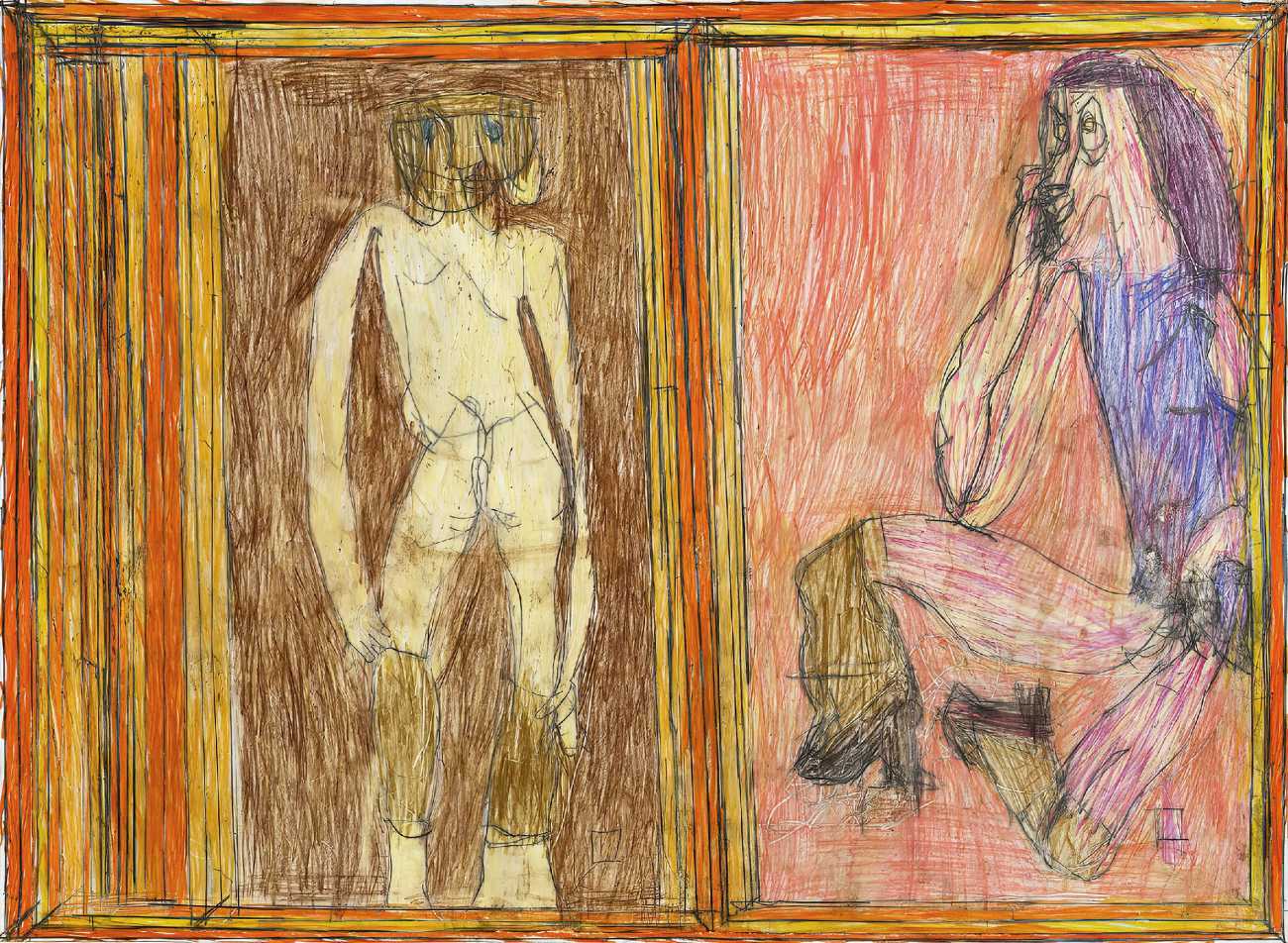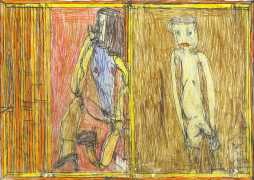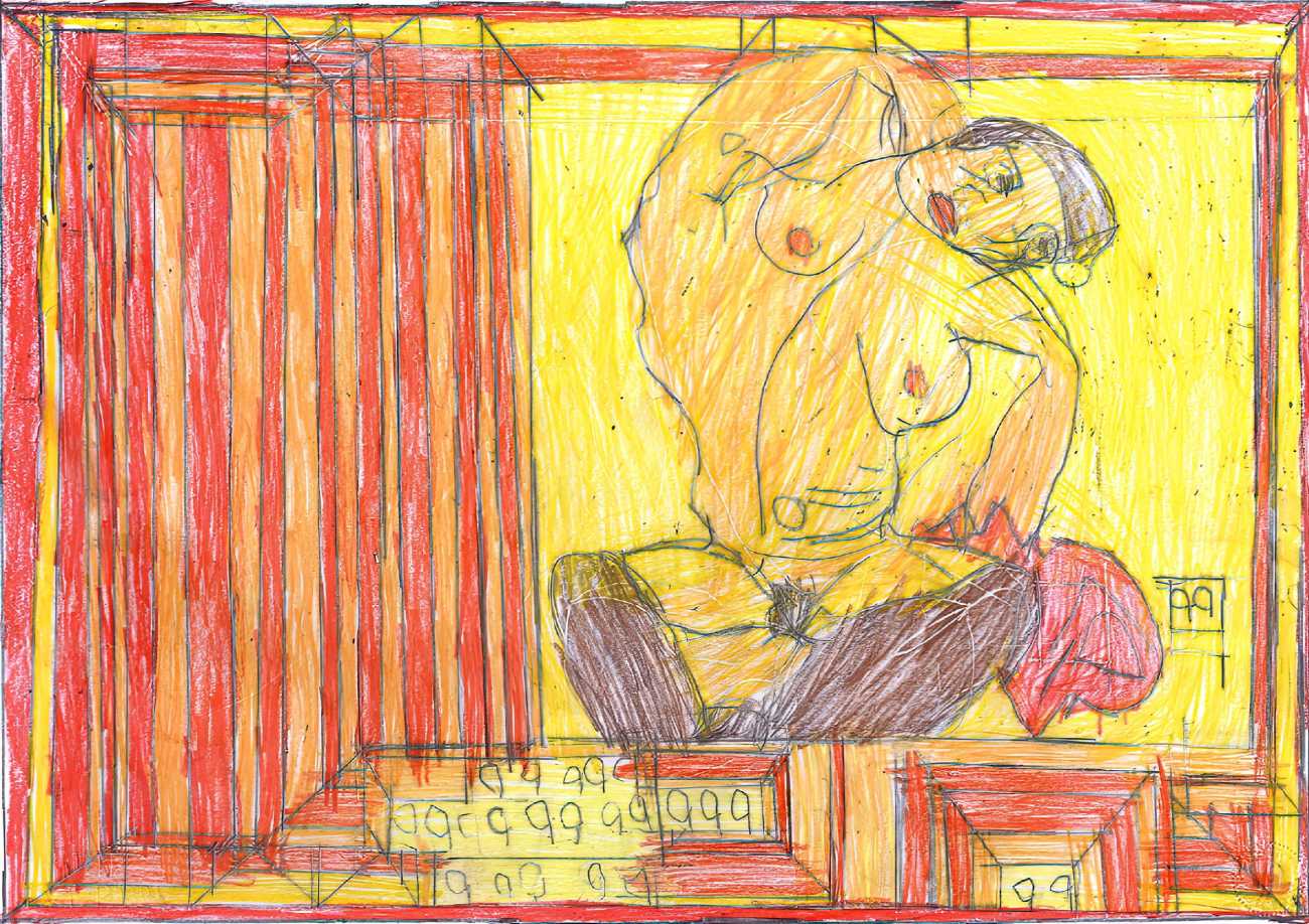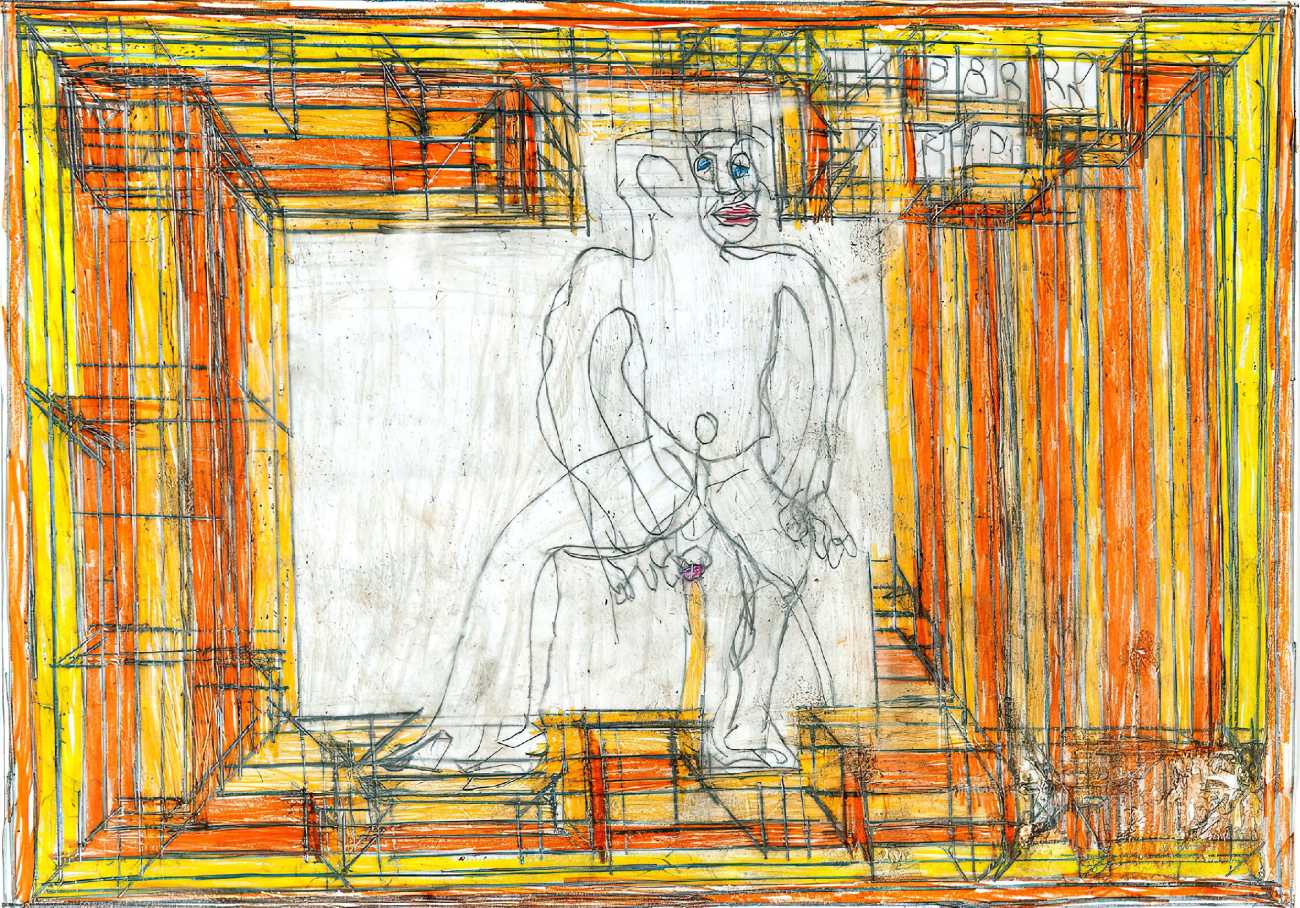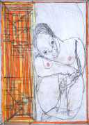Often signed Pepi, Hofer’s works are essentially observations and narrations of his own life. His drawings can be seen as a kind of mirror, reflecting both Hofer and the spectator while also expressing the hypnotic innocence of art. As Michel Thévoz writes, ‘Josef Hofer is in a state of grace – an erotic, untrammelled form of grace where the body strives to break free from the prison of the frame.’