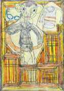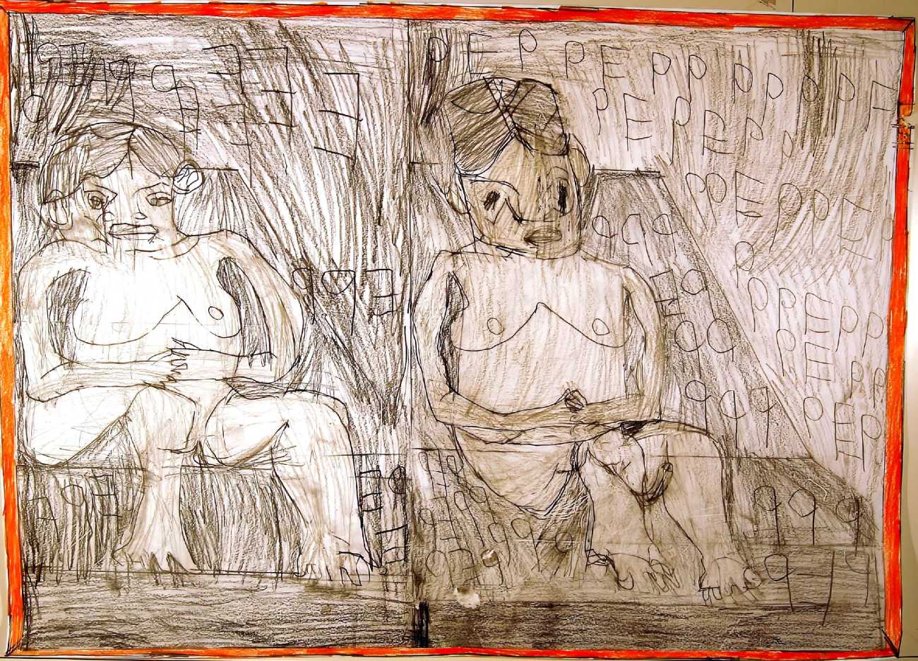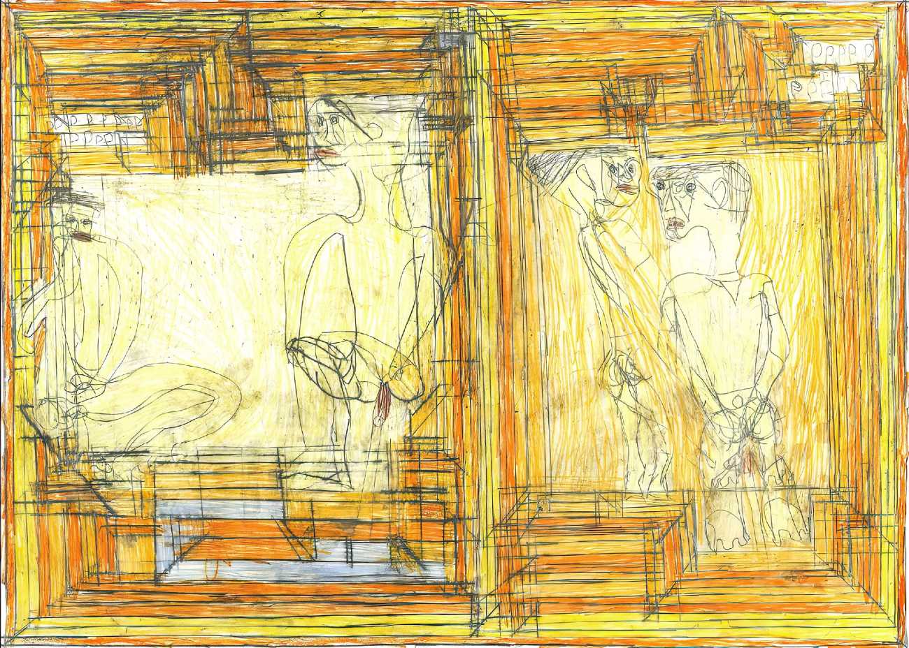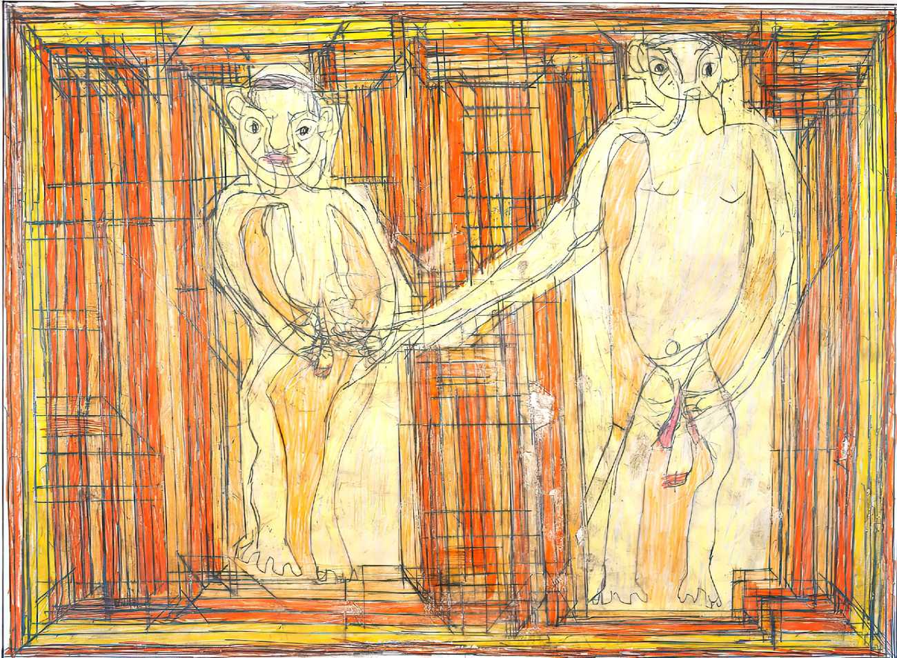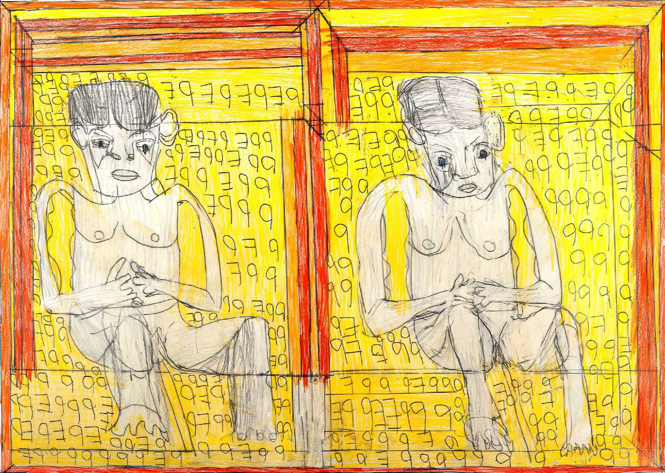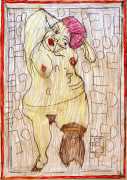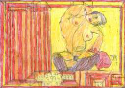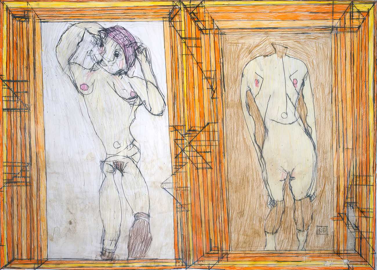 Often signed Pepi, Hofer’s works are essentially observations and narrations of his own life. His drawings can be seen as a kind of mirror, reflecting both Hofer and the spectator while also expressing the hypnotic innocence of art. As Michel Thévoz writes, ‘Josef Hofer is in a state of grace – an erotic, untrammelled form of grace where the body strives to break free from the prison of the frame.’