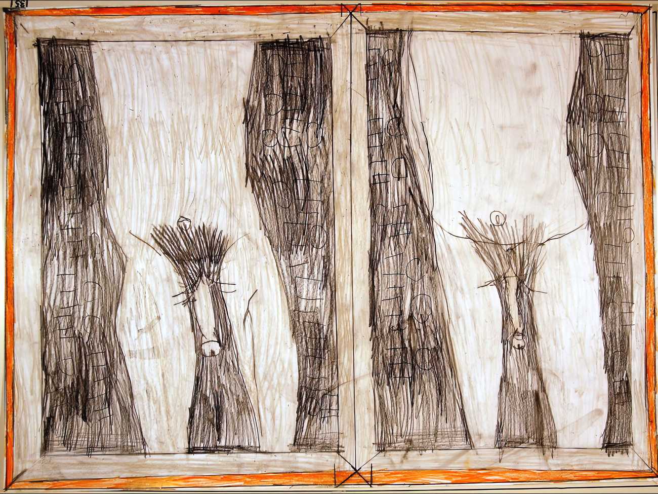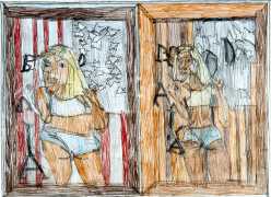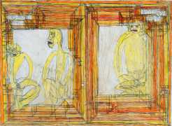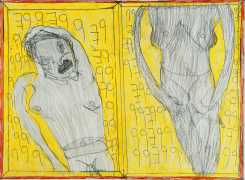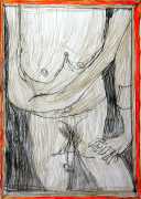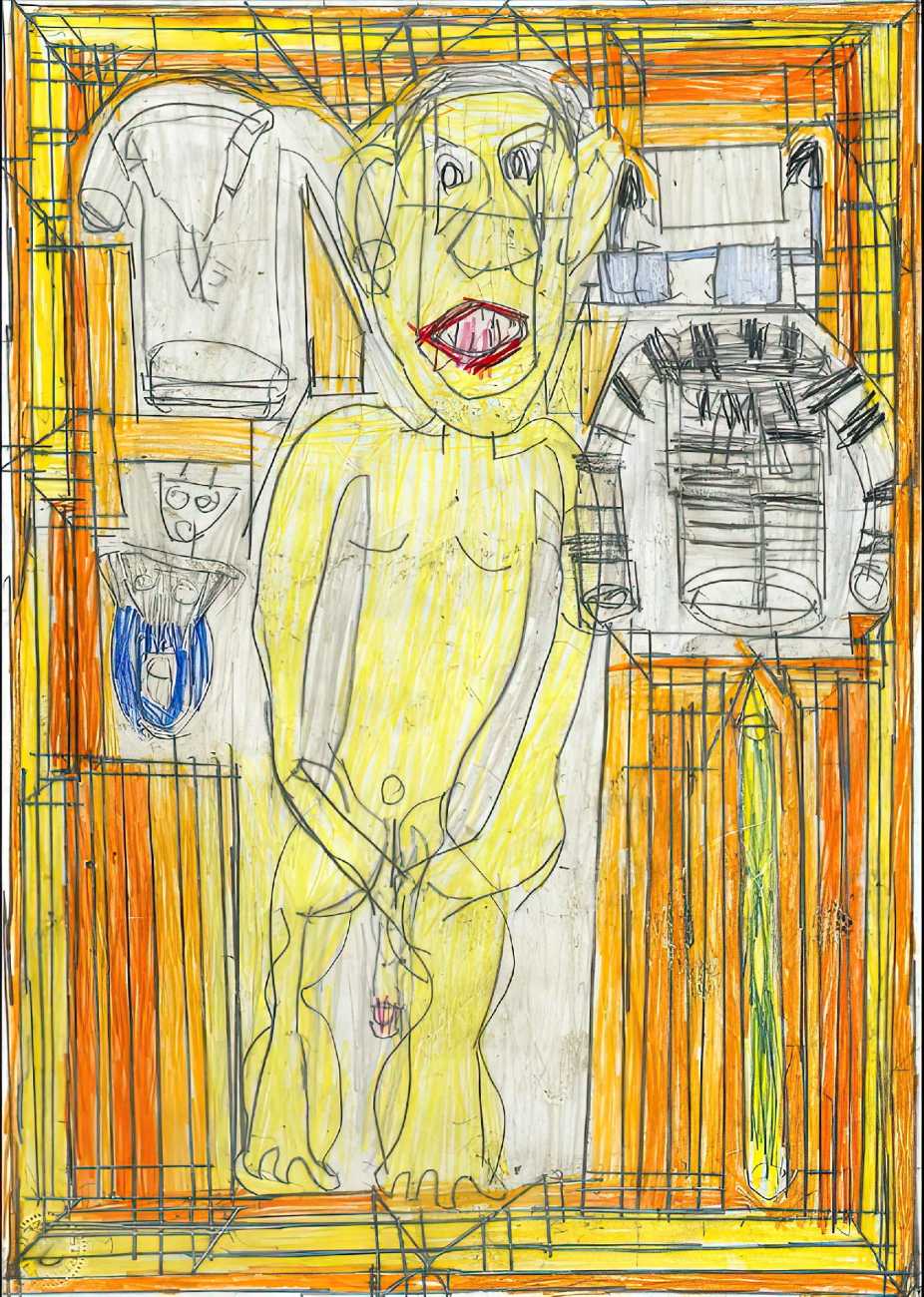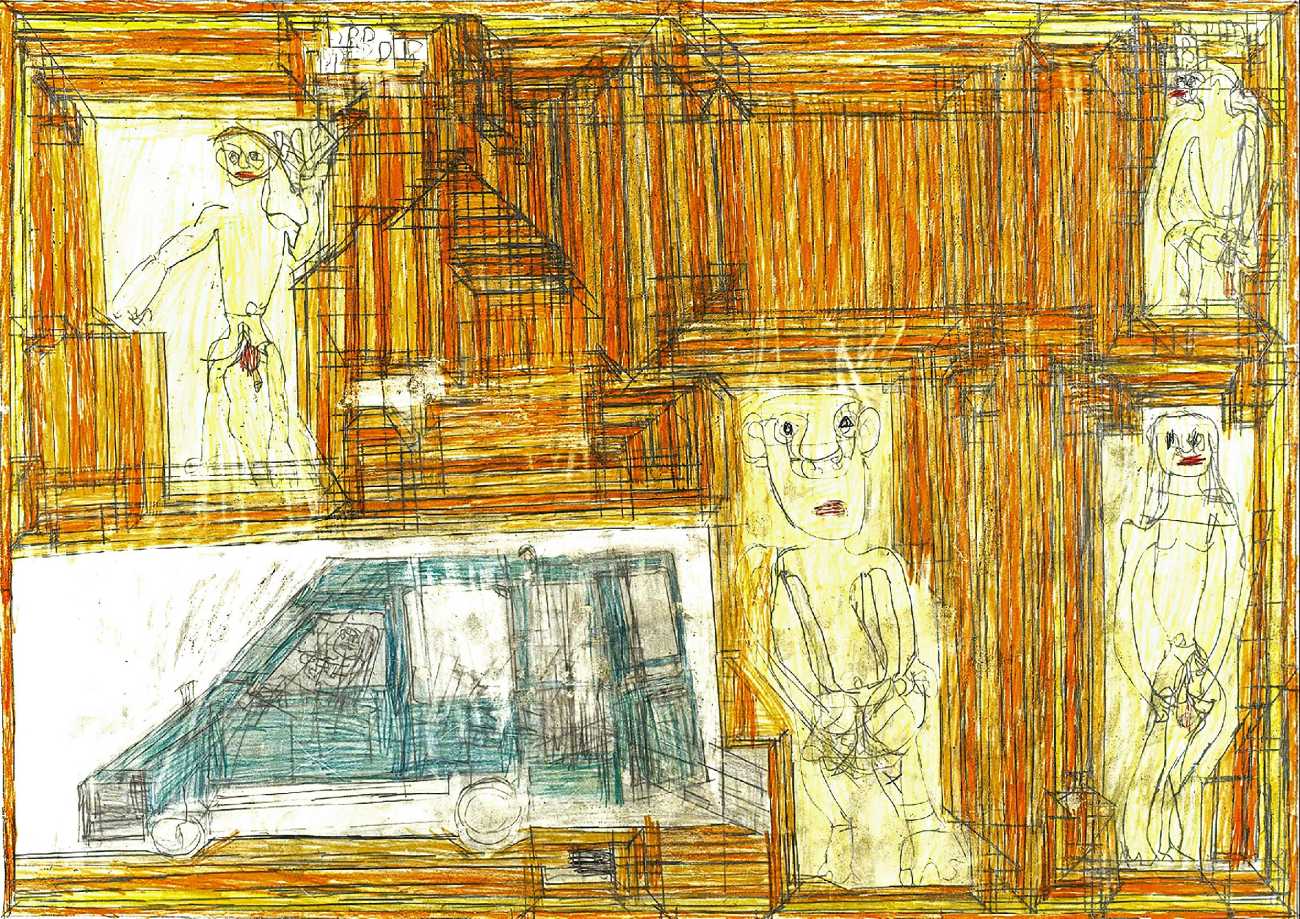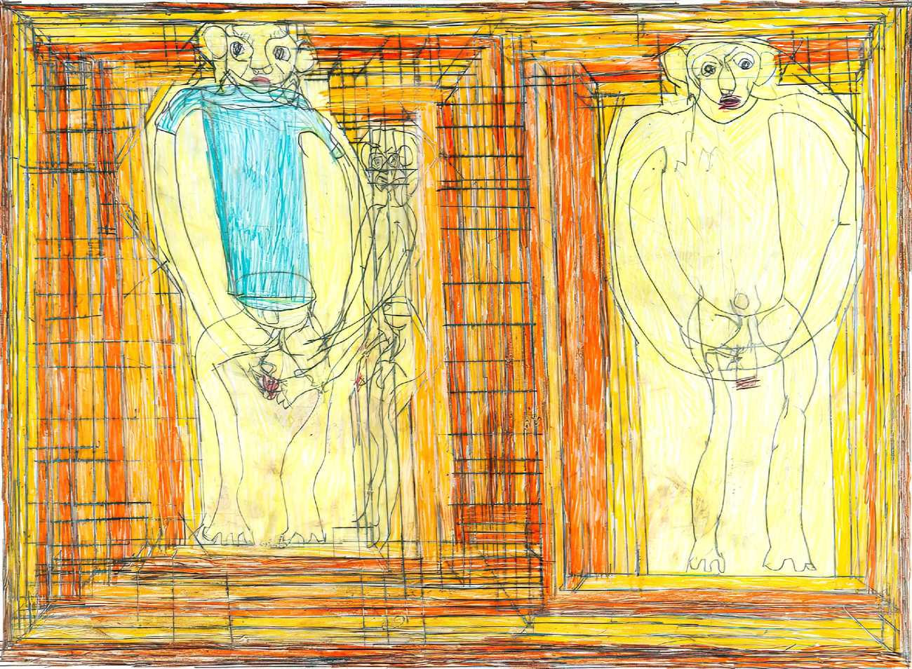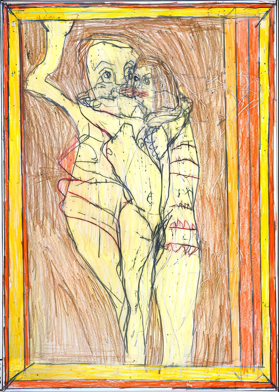 Often signed Pepi, Hofer’s works are essentially observations and narrations of his own life. His drawings can be seen as a kind of mirror, reflecting both Hofer and the spectator while also expressing the hypnotic innocence of art. As Michel Thévoz writes, ‘Josef Hofer is in a state of grace – an erotic, untrammelled form of grace where the body strives to break free from the prison of the frame.’
