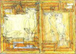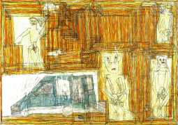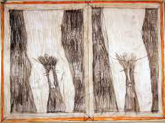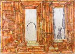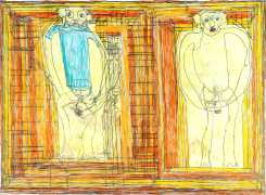 Josef Hofer has undoubtedly lived a challenging life, but to a large extent it is due to his impairments, rather than in spite of them, that he now occupies an important place in the art world. His art expresses a way of seeing unique to those removed from a more conventional lifestyle. In his works the figures are bordered, separated, isolated in a world of intricate delineations. What lies within is just as important as what lies without – Hofer’s ‘frames’ allow the margins of each work to pull the spectator’s focus outward from the centre, emphasising that in many ways we are as much an outsider in Hofer’s world as he is in ours.