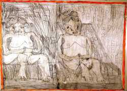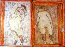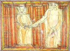 An important aspect of Hofer’s art is that nearly all his figures are naked and facing directly towards the viewer. To what extent this is acknowledging or emphasising the raw sexuality of the naked human being is as much up to the viewer as to the interpretation of the artist’s internal creative process. Whether or not it makes Hofer’s art intrinsically erotic is yet another fascinating question, to which there is almost certainly no simple answer.