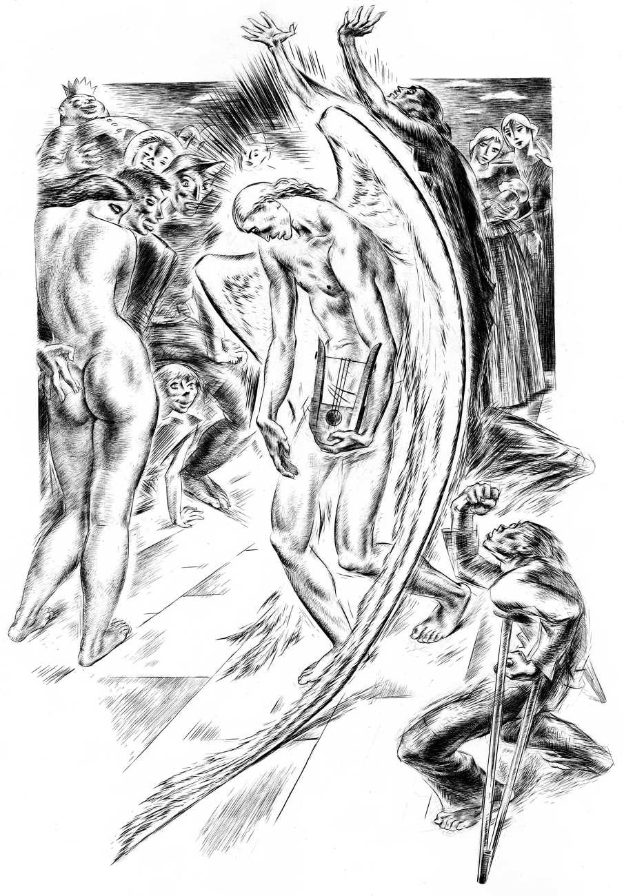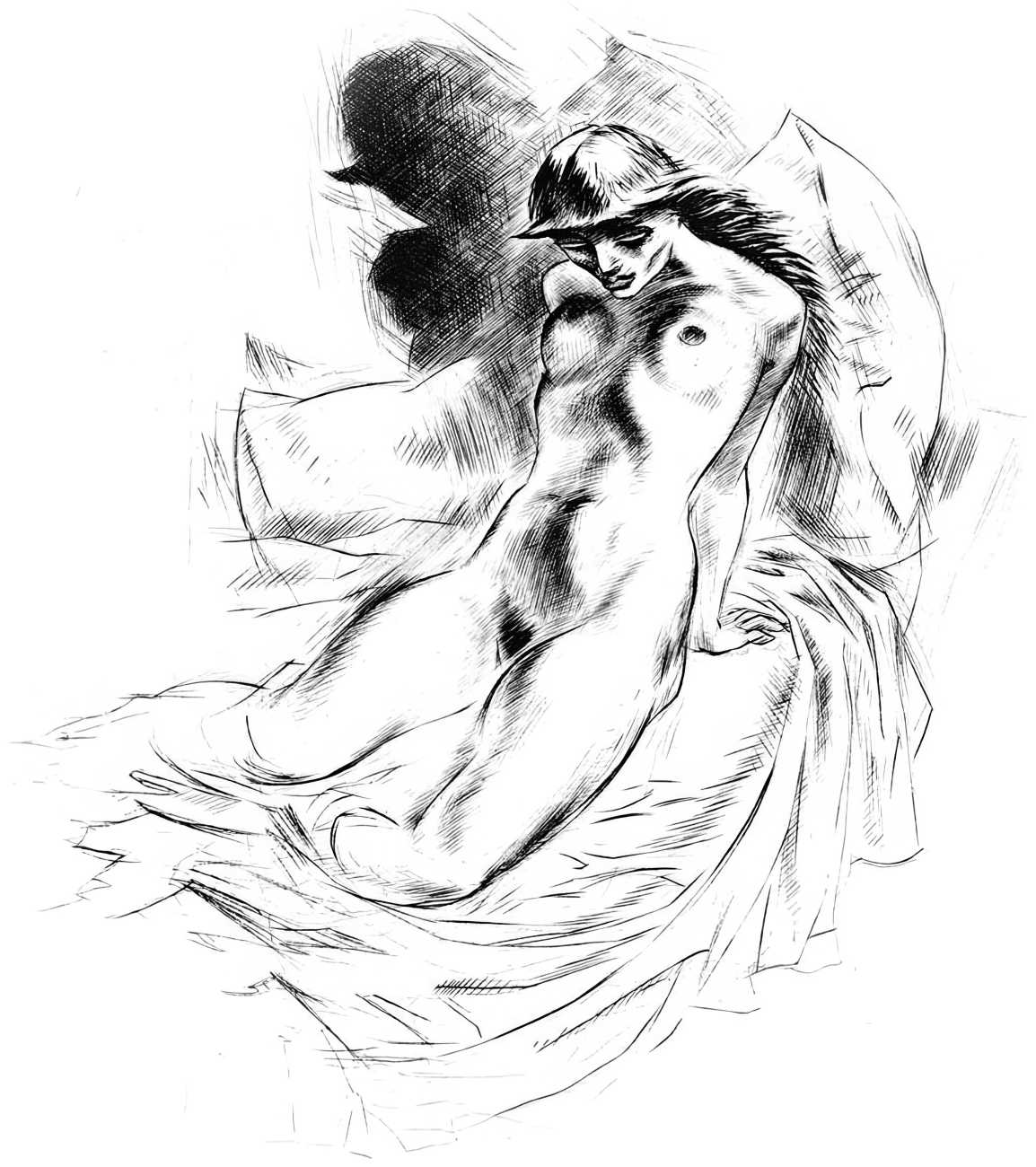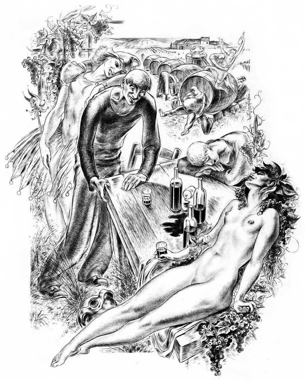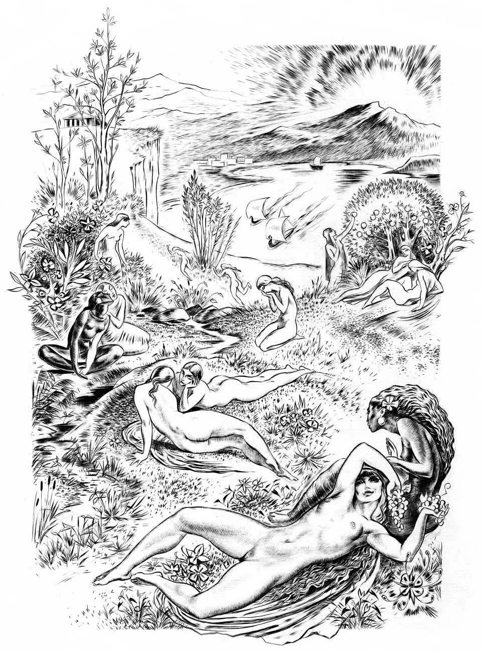 After protracted legal proceedings, the six poems – Lesbos, Femmes damnées (À la pâle clarté), Le léthé, À celle qui est trop gaie, Les bijoux, and Les métamorphoses du vampire – were released from the 1857 injunction, and several publishers produced illustrated editions of the complete collection as originally conceived by Baudelaire. Les Bibliolatres de France commissioned Lemagny to produce more than 150 engravings to illustrate their offering, and the artist, clearly inspired by the bold symbolism of the poetry, produced some of his best work. We show here some fifty of the larger illustrations.