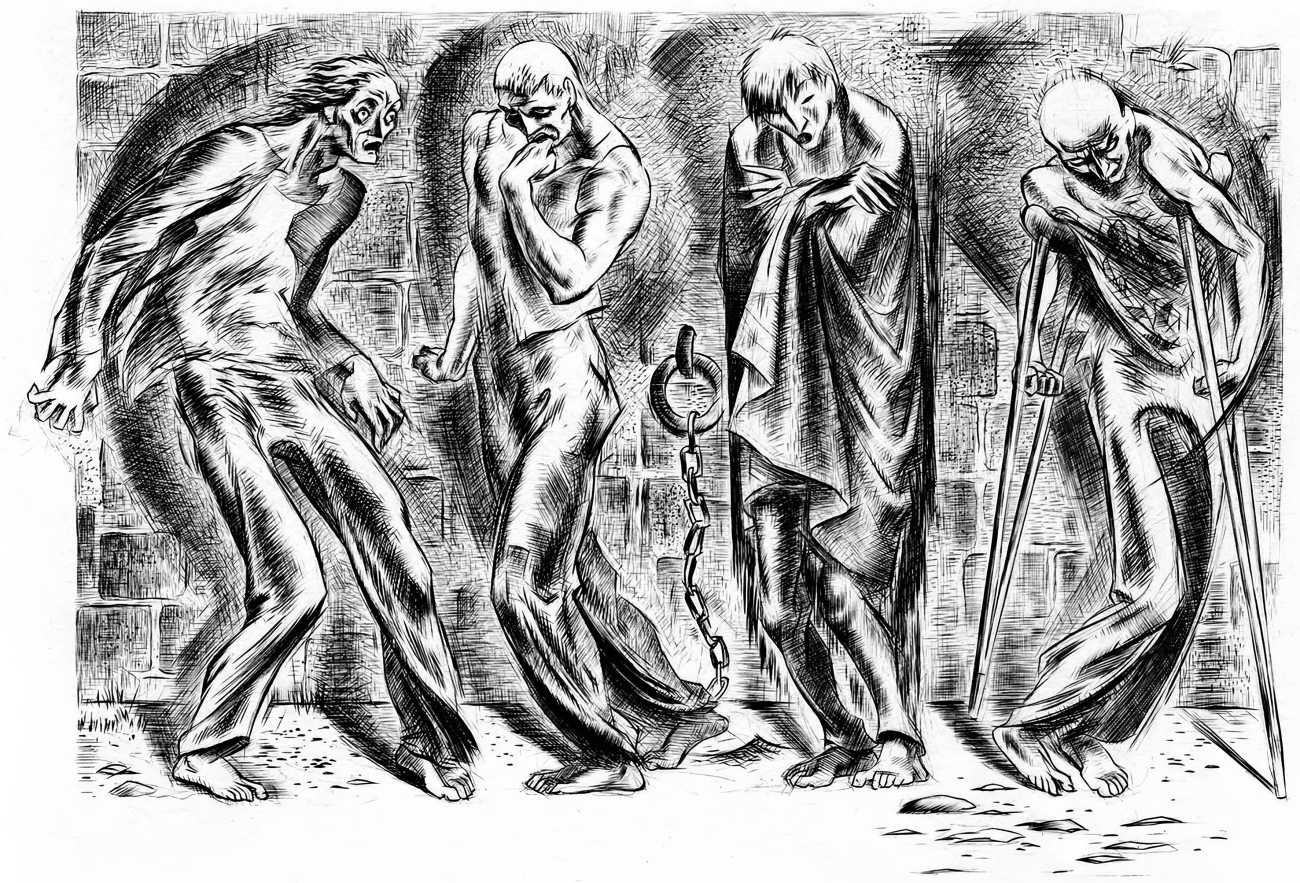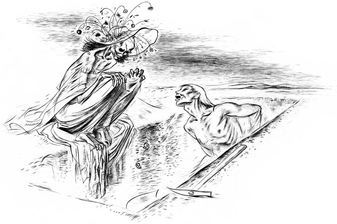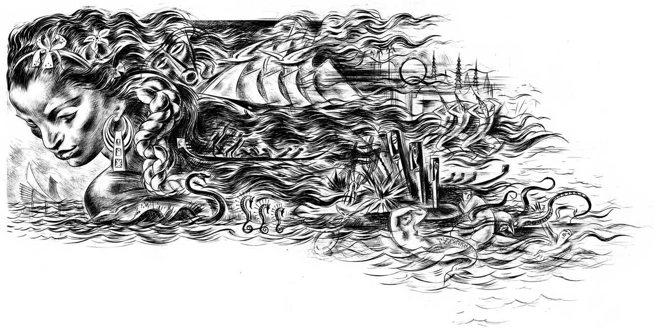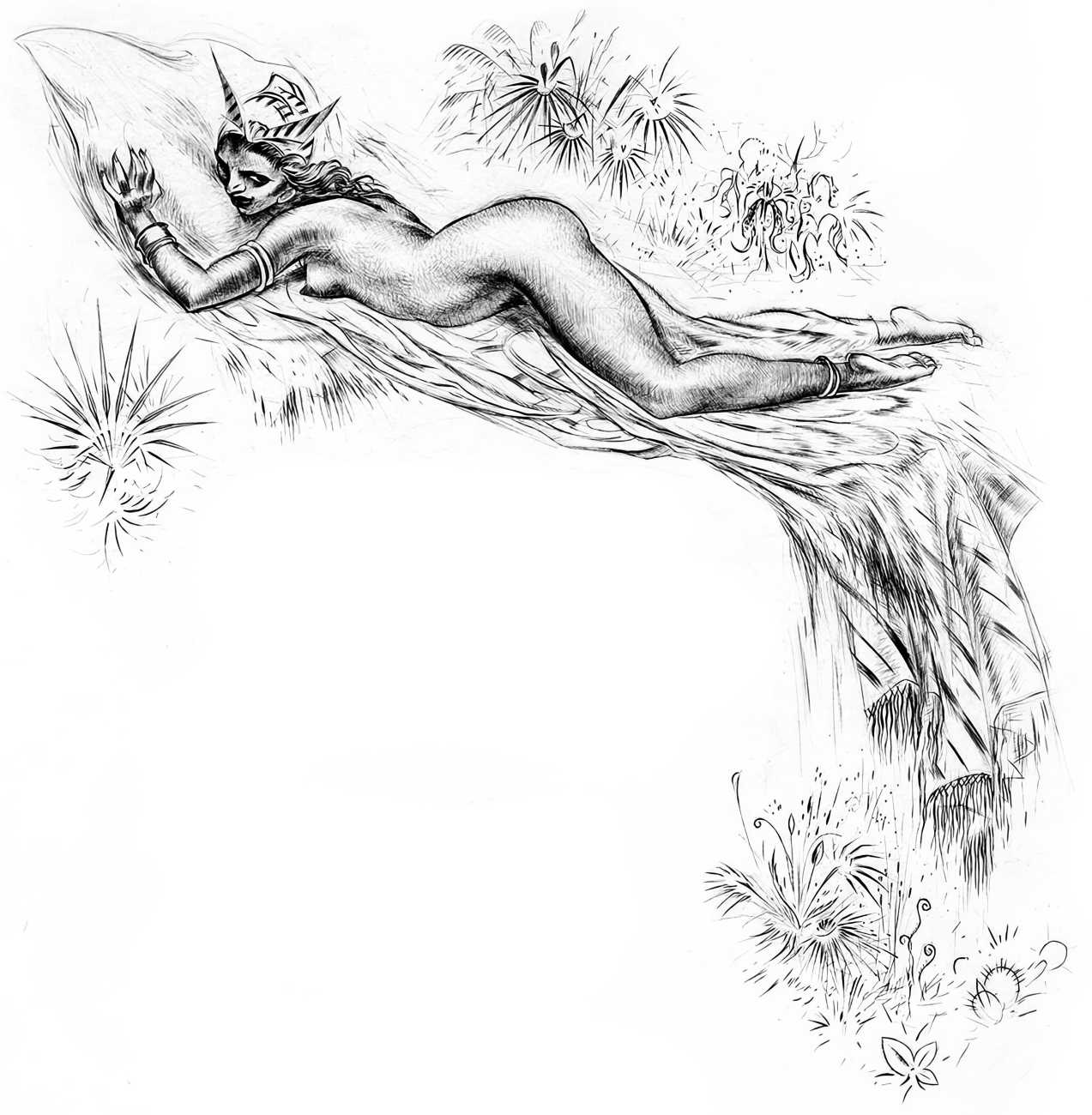 After protracted legal proceedings, the six poems – Lesbos, Femmes damnées (À la pâle clarté), Le léthé, À celle qui est trop gaie, Les bijoux, and Les métamorphoses du vampire – were released from the 1857 injunction, and several publishers produced illustrated editions of the complete collection as originally conceived by Baudelaire. Les Bibliolatres de France commissioned Lemagny to produce more than 150 engravings to illustrate their offering, and the artist, clearly inspired by the bold symbolism of the poetry, produced some of his best work. We show here some fifty of the larger illustrations.